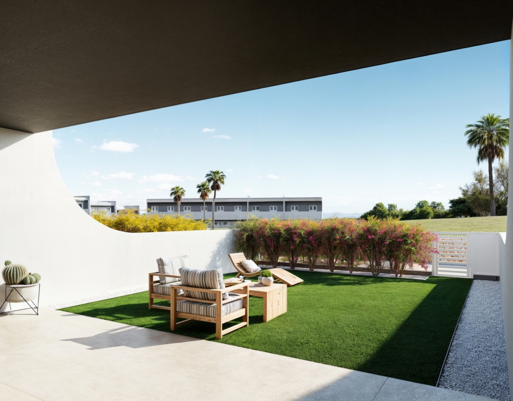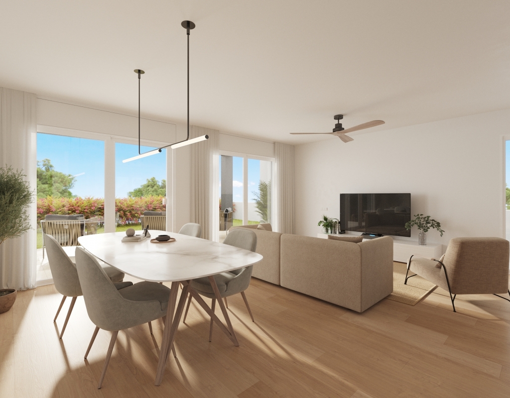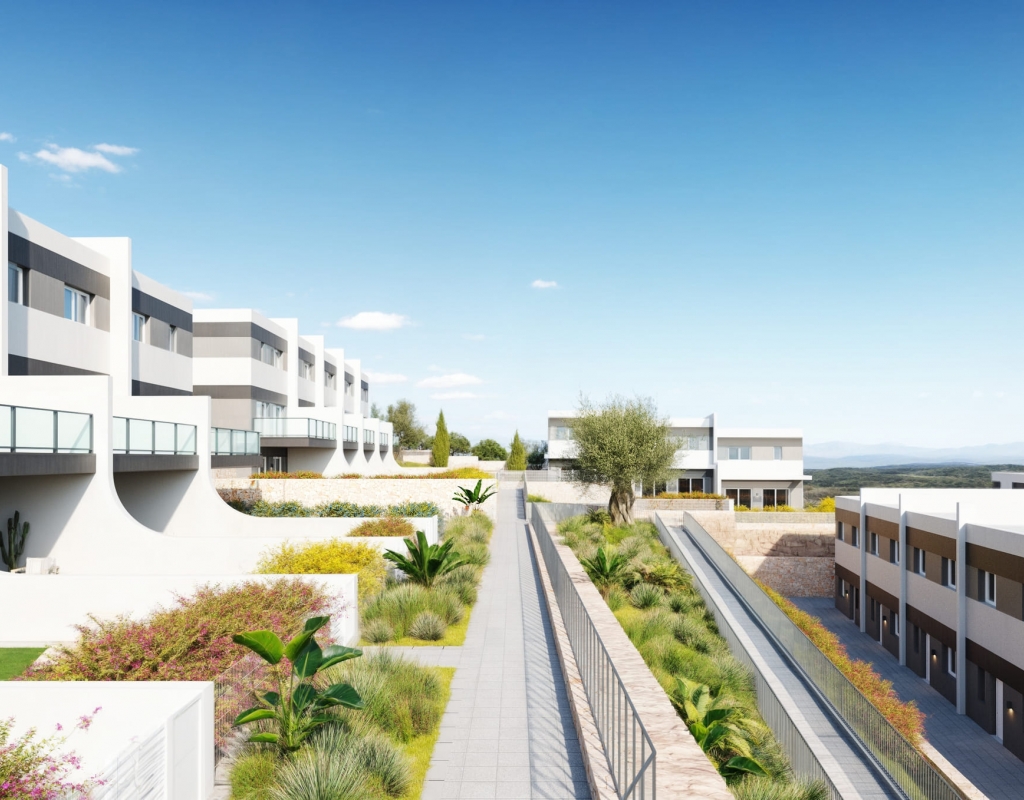 Rekkehuset har en privat hage, perfekt for å nyte utendørs og middelhavsklimaet. Det har også en terrasse, ideell for å slappe av eller dele øyeblikk med familie og venner mens man nyter havutsikten. De felles hageområdene kompletterer omgivelsene, og tilbyr grønne områder for alle beboernes glede.