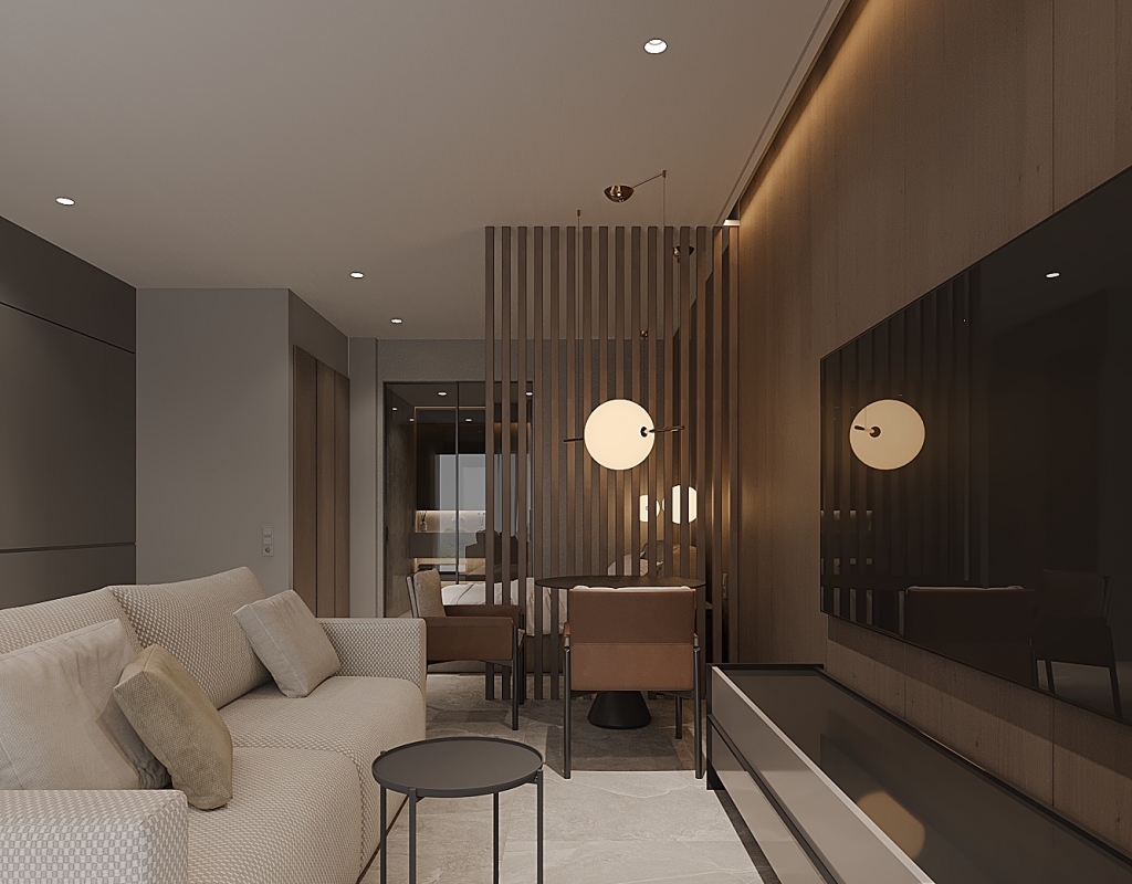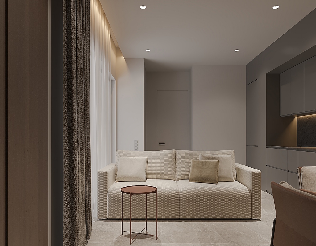 Interiøret i leilighetene er designet for å tilby maksimal komfort og funksjonalitet. Hver enhet har ett soverom og ett bad, ideelt for par eller personer som søker et koselig rom. Gulv i porselensfliser gir et snev av eleganse og er lett å vedlikeholde. Elektriske persienner og klimaanlegg sikrer et behagelig miljø hele året. I tillegg gir innebygde garderober effektiv lagringsplass, og holder hjemmet ryddig og organisert. Planløsningen er utformet for å utnytte tilgjengelig plass maksimalt, og skaper et koselig og funksjonelt miljø.