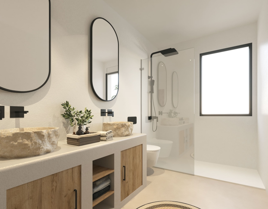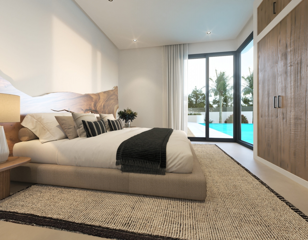 Disse villaene tilbyr romslige boarealer med tre soverom og to bad, som sikrer rikelig plass for familie og gjester. Hvert hjem er designet med eleganse i tankene, med innebygde garderober og gulvvarme for komfort året rundt. Det private svømmebassenget er et fremtredende trekk, og gir et perfekt sted for avslapning og underholdning i din egen hageoase.