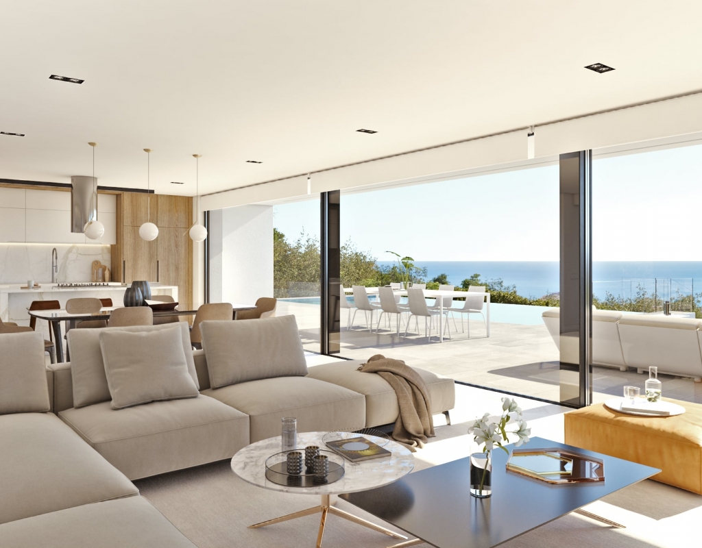 Ligger i det eksklusive området Cumbre del Sol, tilbyr denne villaen et privilegert miljø med havutsikt. Eiendommen ligger bare 0,5 km fra kysten, noe som gjør det mulig å nyte sjøbrisen og et spektakulært landskap. Designet for de som søker et hjem som kombinerer komfort og eleganse, er denne villaen ideell for familier som verdsetter privatliv og nærhet til havet. Med en planløsning som inkluderer fire soverom og seks bad, er hvert rom tenkt for å tilby maksimal velvære. Villaen har moderne funksjoner som smarthus, klimaanlegg og gulvvarme, som sikrer et komfortabelt miljø året rundt. Høy kvalitet på finish, som tregulv, gir et preg av distinksjon og varme til hvert rom.