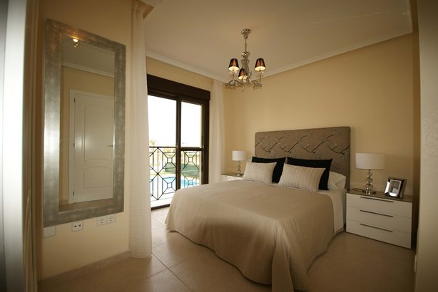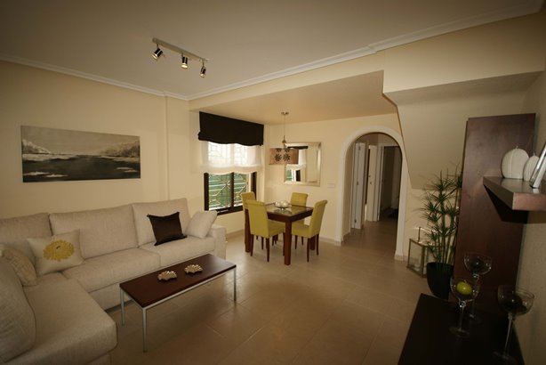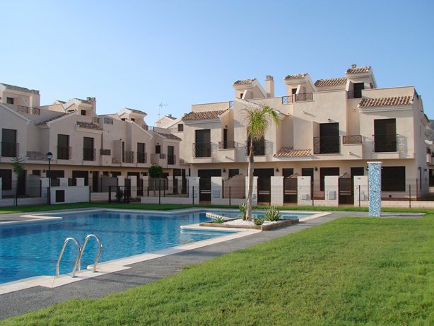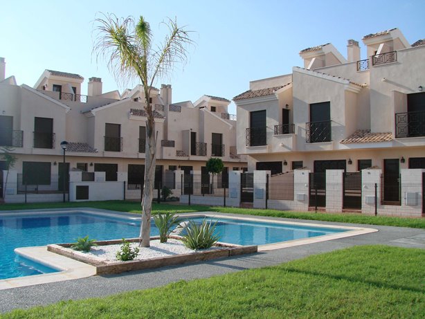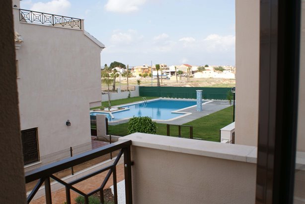 This Brand New, Three Bedroom Townhouse in San Cayetano is located inland from the N-332, situated in a lovely communal area, where there are beautiful gardens, children’s play parks and access to several amenities within a short drive. The nearest beaches are either Santiago de la Ribera or Los Alcazares, both reachable in less than a 20 minute drive, including the San Javier airport. This superb property comprises of a separate kitchen, with high quality appliances available; very spacious lounge/dining room with access out to the terrace, either looking over the communal pool, the communal garden or the mountain of ‘Cabezo Gordo’; three double bedrooms, one of which has a private terrace and the master with a balcony, with great views; en suite shower room; and a family bathroom. The communal pool is just a 100 metres walk away from your door step. There are several extras included with this property such as a roof top solarium, which is where you can really appreciate the surroundings!!!