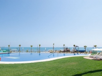 These New, Front line beach Luxury Two Bedroom Apartments in Punta Prima are situated in one of the most sought after areas, close to many amenities including the recently opened ‘La Zenia Boulevard’. There is a choice of property on offer, either a two bed, two bath apartment; or a two bed, two bath penthouse with a 79m2 solarium. All properties will be finished to an extremely high standard, consisting of an open plan kitchen with quality appliances available; lounge/dining room with access out to the terrace and internal access to private solariums; spacious bedrooms, the master with doors out to the terrace. The solarium will have a 2nd kitchen/BBQ area & Jacuzzi, all with the most spectacular sea views!!! There are many extras available such as a garage space, furniture packs & more... But the 3.500m2 communal area with swimming pool, park, gym and more, truly makes these properties special! Estimated completion September 2014.