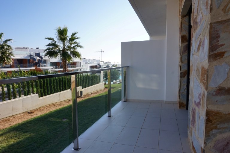 These Brand New, Three Bedroom Apartments in Punta Prima are in a prime location on the popular Orihuela Costa. Less than 10 minutes by foot to the beach with the famous “Nautilus” restaurant. The “Punta Marina” commercial centre is 2 minutes away with supermarket, shops, restaurants, petrol station, pharmacy and lots more. Like shopping?.. 10 minutes by car and you have the Zenia Boulevard shopping centre. There are ground floor & top floor apartments on offer, all with 3 double bedrooms with fitted wardrobes-master with en suite and private covered terrace (as well as the 2nd bedroom); family shower room with walk-in shower, light lounge with access to a terrace or garden; of course the top floor has large 89m2 solarium; open plan modern kitchen, lovely communal pool and garden. Extras include pre-installation of air con with underground parking as an optional extra.