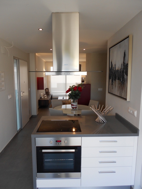 These West Facing, Two Bedroom, Brand New Apartments in Villamartin, being built by one of the most well known prestigious builders in the area, popular for their modern top quality designs for all tastes. An attractive complex with communal pool area and the possibility of underground parking and storage room at an extra cost. These beautiful apartments from 69m2 are available on the ground floor, first floor or the penthouse offering a 96m2 prívate solarium; all come with pre-installation air con, 2 double bedrooms with built-in wardrobes, master with terrace off, 2 bathrooms (1 en suite). Light and airy lounge/dining room with sliding doors to a terrace; contemporary open plan kitchen. There is a choice of 3 golf courses 5 minutes by car and a short walk to “La Fuente” comercial centre with pharmacy, bank, bars and restaurants with great entertainment. The Zenia Boulevard shopping centre is less than 10 minutes by car along with a choice of beaches. Perfect location for a holiday home with very little maintenance and high rental potential. Murcia and Alicante airports are easily reached via the major road network.
