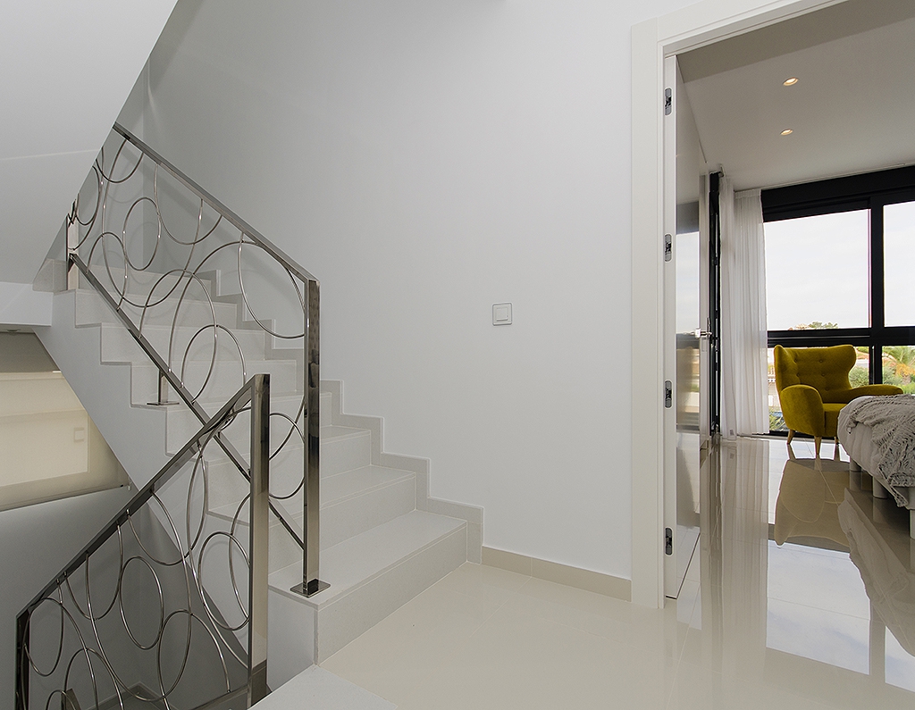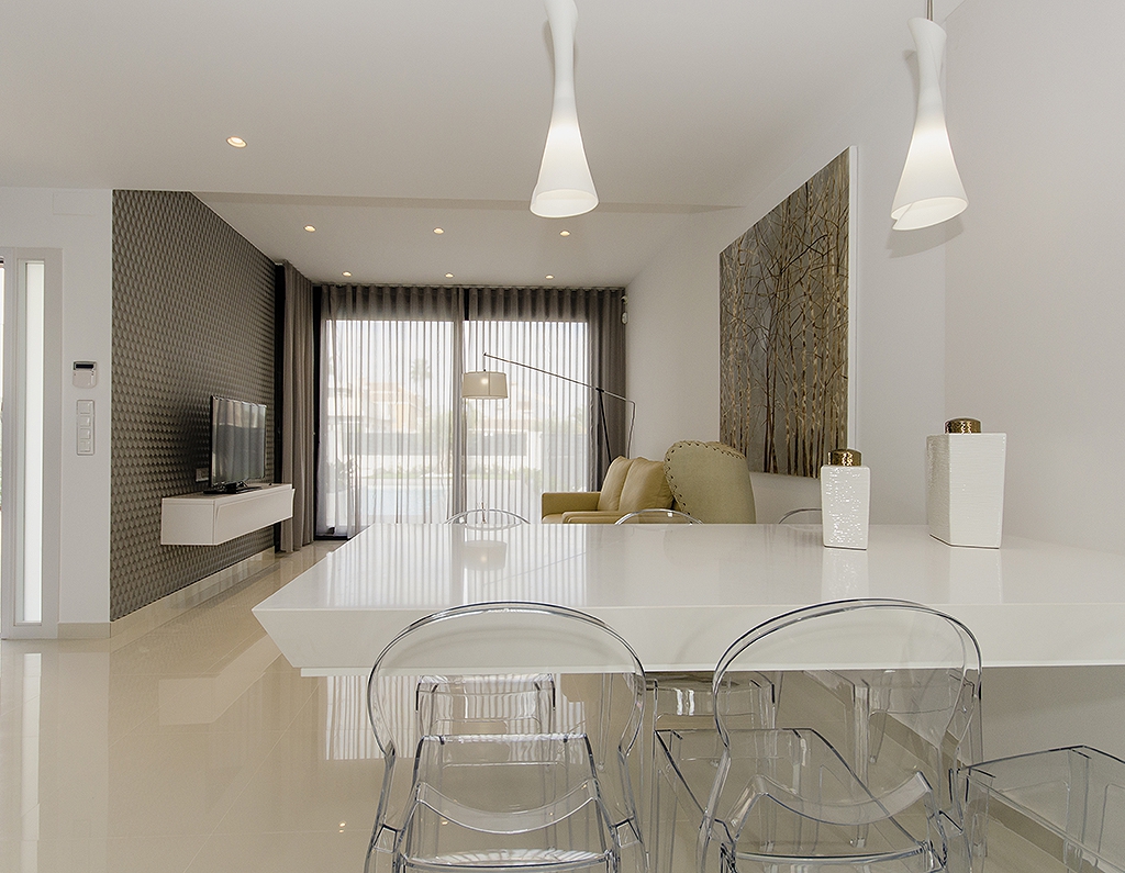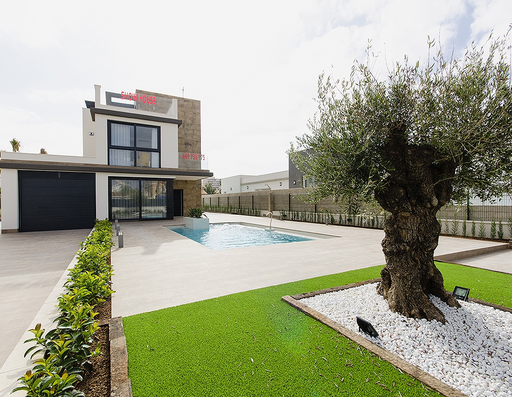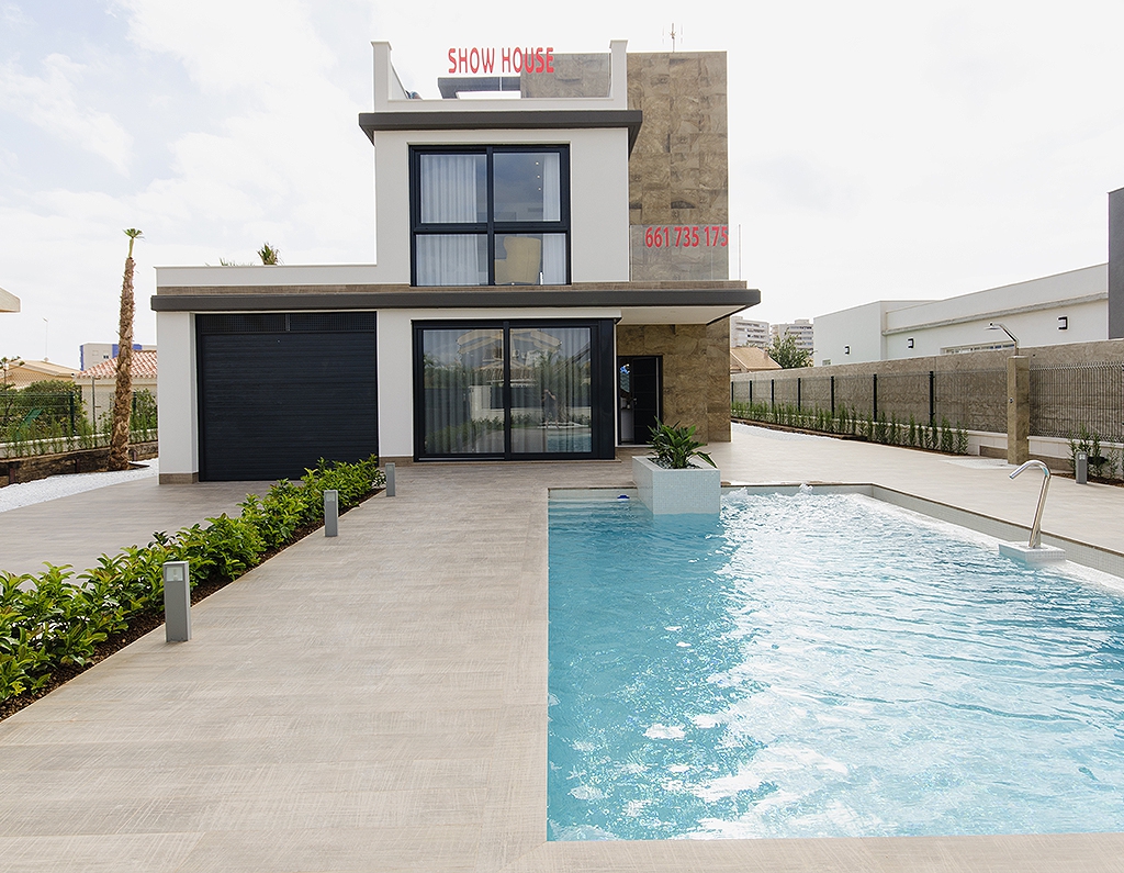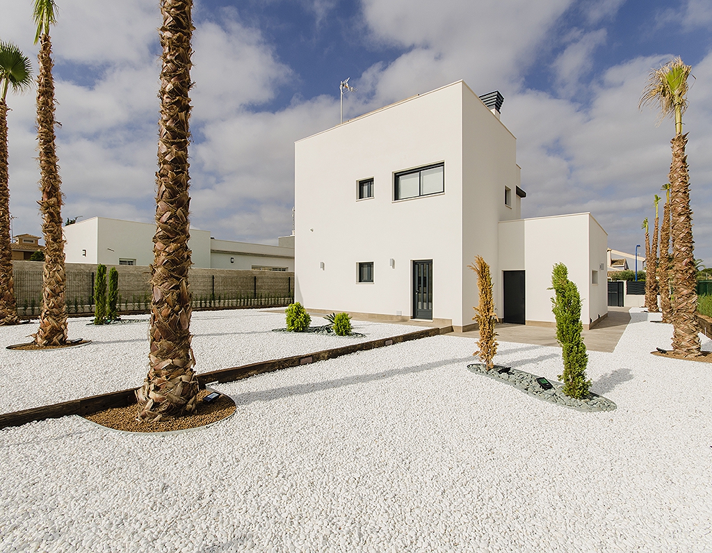Brand New, Three & Four Bedroom, Modern Detached Villas in Campoamor, situated 5 minutes walk to the beach and amenities: pharmacy, array of bars and restaurants, supermarket, medical centre and the famous Cabo Roig strip. La Zenia is just down the road with the famous Zenia Boulevard shopping centre. These villas are being built to an attractive modern design by a reputable constructor and benefit from sea and country views, private pool, pre-installed air con, bright lounge with triple sliding doors to the pool area, cloakroom, open plan modern kitchen with door leading out, 3 or 4 double bedrooms with fitted wardrobes, master with terrace, 3 bathrooms (2 en suite); private solarium. The large plot is landscaped with off road parking. Unbeatable location, 10 minutes to various golf courses and commuting made easy by the National road network providing good access to Murcia and Alicante airports.
