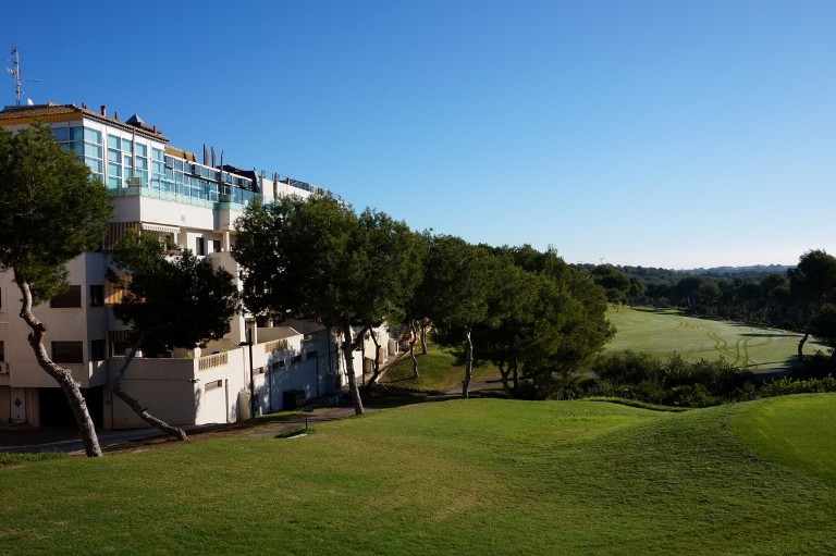 A South Facing, Two Bedroom, Apartment on Las Ramblas Golf, Villamartin. Being third floor there are spectacular golf views across the pine forests, right next to the Campoamor golf course. The complex benefits from a beautiful communal pool area and is just 5 minutes by car to an array of bars, restaurants, supermarket, bank, pharmacy etc. Villamartin is on the doorstep, so too is the Zenia Boulevard shopping centre, with the coast just 10 minutes away. Enjoy the great views on offer from the terrace leading from the lounge/dining room, also a nicely fitted kitchen with utility off; 2 double bedrooms with fitted wardrobes; 2 bathrooms (1 en suite). A great peaceful location for holidays but with everything you need right on the doorstep, also a perfect rental opportunity, central to both Murcia and Alicante airports.