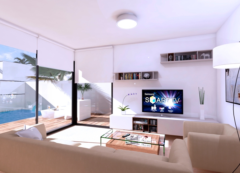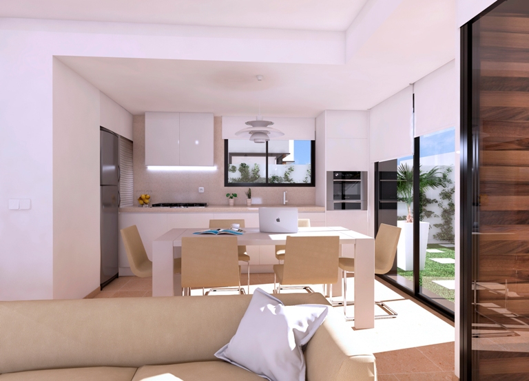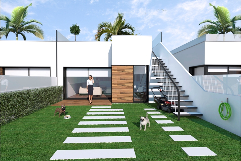 These Brand New, Stylish, Two Bedroom Detached Villas in Roda are located in a popular golf area, situated on the door step of the fantastic Roda Golf Resort and near to a wide range of amenities and facilities, with the coast under 4km’s away! These stunning looking properties comprise of an open plan fully fitted kitchen; spacious lounge/dining room with double doors out to the front covered terrace, either facing east or west depending on exact location, great for dining outdoors overlooking the private garden and potential private swimming pool at an additional cost, depending on the size of the plot; two double bedrooms, the master with en suite and having access out to a private rear terrace; and a family shower room... External stairs from the landscaped garden lead to the superb sized roof top solarium, with great open views! These properties are finished to a very high standard with many extras included, such as fitted wardrobes, pre-installed air conditioning throughout, white goods, an off road parking space, etc...