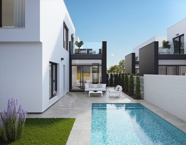 These Luxurious, East & West Facing, Three Bedroom Detached Villas in Punta Prima are located in a highly sought after area on the Orihuela Costa, close to Playa Flamenca & La Florida. Situated within a few minutes walk of an abundance of amenities and facilities, including several bars, restaurants, main brand supermarkets, shops, banks and much more, with the beach of Punta Prima itself on your door step in just a 10 to 15 minute walk. These pretty properties comprise of an open plan fitted kitchen; spacious lounge/dining room with access out to the front terrace, perfect space overlooking the private pool and great for eating al fresco; three double bedrooms, one of which is on the ground floor, whilst the other two are on the first floor, one having a private terrace with views over the private garden, swimming pool and possible sea views; a downstairs shower room; and an upstairs family shower room... Outside is a lovely garden with a private swimming pool, plenty of space to sit, dine, relax and sunbathe! These properties are available from €240.000, ranging to €245.000, including extras such as electric shutters, storeroom under the stairs, under floor heating in the shower rooms and shower screen, a private off road parking space, fitted wardrobes, pre-installed air conditioning, aerothermic boiler, oven, hob & extractor too!!!