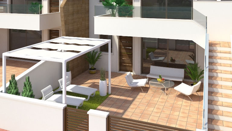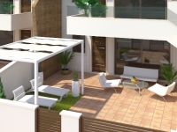 These Spectacular, Two Bedroom Apartments in San Pedro del Pinatar are located in a true Spanish area, situated within 700 metres from the beautiful coast and beaches of the Mar Menor, within a 10-15 minute walk of all the amenities and facilities you could need, such as many bars, restaurants, shops, supermarkets, banks, pharmacy, etc… These deceivingly spacious properties have been designed for the client, with plenty of room and long living in mind, ground floor and top floors available, comprising of a desirable open plan, bright and light fully fitted kitchen; family lounge/dining room with feature glass doors out to either the huge ground floor, tiled low maintenance garden of some 50m2 (with a private parking space, plenty of space to relax, sunbathe, BBQ and more…), or a first floor terrace of some 11m2 (a superb area to eat al fresco, having open area and municipal garden views); two great sized double bedrooms with feature wardrobes (having a unique design), the master with en suite shower room and double doors out to the inner courtyard, where there is also a utility space; plus a family shower room. The top floors will have external stairs from the front terrace leading to the private roof top solarium of an unbelievable 80m2, perfect for entertaining, ideal for a permanent gazebo, fitted BBQ area, maybe an outdoor kitchen, sun loungers, dining table and even a Jacuzzi, all whilst having great surrounding area + sea views!!! Extras include fitted wardrobes, fully fitted bathrooms (mirror, unit, shower screen), all the white goods (TEKA), LED lights throughout, aerothermic boiler and the added bonus of pre-installed air conditioning… All this space, all these extras and so close to the sea starting from only €142.900 for a ground floor and from €161.900 for a top floor!