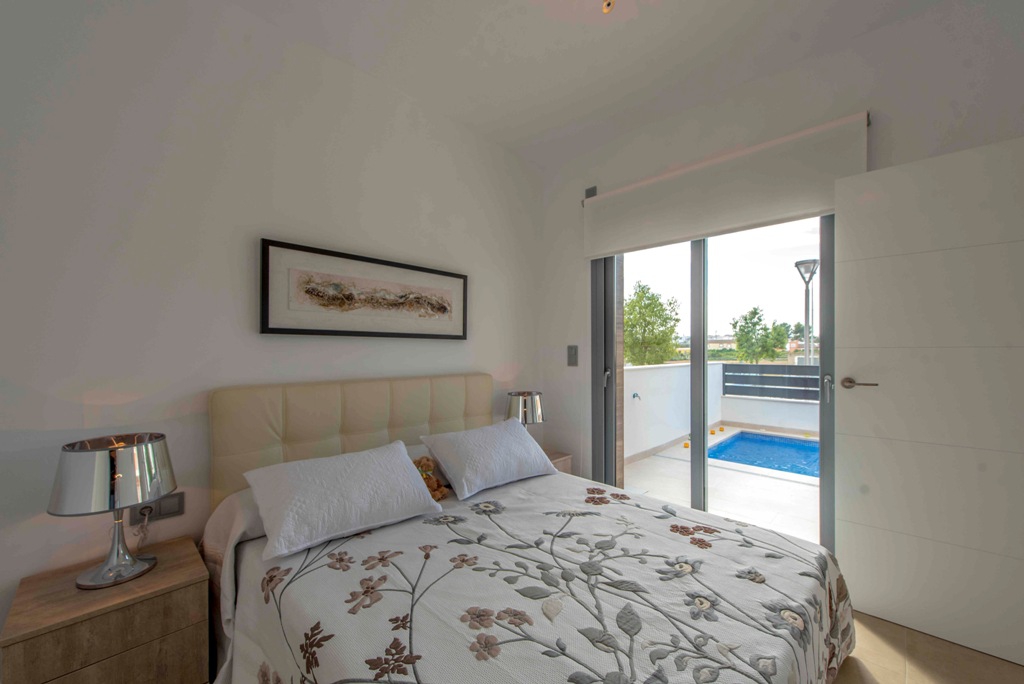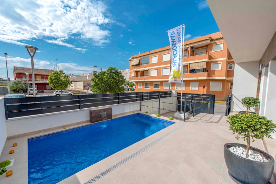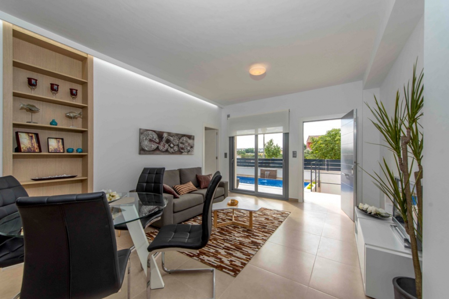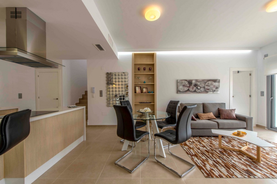 These Fantastic, South Facing Three Bedroom Townhouses in Formentera del Segura are located in one of the most prominent positions in the area, situated at the beginning of this beautiful and traditional Spanish town, where you can find an abundance of amenities on your door step, including bars, restaurants and main brand supermarket. Guardamar beach can also be found less than a 10 minute drive away! These stylish properties comprise of an open plan fully fitted kitchen with an adjoining utility room and a breakfast bar; bright and airy lounge/dining room which will lead out to the terrace, tiled very easy maintenance garden and private 11m2 swimming pool; two double bedrooms on the ground floor, both with double doors out to the front terrace, one with a walk through wardrobe to its own en suite shower room; the third bedroom on the first floor; and a family shower room. Internal stairs then lead to the first floor bedroom and roof top solarium, an ideal space for BBQ’s and summer entertaining, with great views over the countryside across the road. There is the great potential for an extension on the third bedroom, making it a larger space, an ideal master suite with en suite shower room, all for an extra €20.000, this could and would be a great addition!!! The extras included with this special development in such a superb area, are fitted wardrobes, pre-installed air conditioning, solar panel for hot water, off road parking, private pool, white goods, electric blinds, ventilation system and a possible built in Tv unit & storage for an additional €1.800… A magnificent opportunity, starting from €187.500 and only 2 left..... (Description dated - 7/11/17)