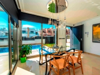 These Brand New, Three Bedroom Detached Villas in Villamartin are located in a new up and coming part of this location, near to La Zenia & Los Altos, on the Orihuela Costa. Situated aprox a 15 minute walk to many of the nearest amenities and facilities, also close to the bustling Villamartin Plaza, a local commercial centre known for its entertainment and wide range of cuisines. Within a 10km radius there are also a choice of fantastic golf courses and beaches! There are now only 2 of these stunning and high quality villas available which occupy a corner plot and include a basement, which when first released was an extra cost of 25.000€. The properties comprise of an open plan fully fitted kitchen, with hidden utility space; light, bright, open and spacious lounge/dining room with glass surrounding, overlooking the front garden and desirable pool area; three double bedrooms, one of which is on the ground floor and all of them with en suite shower rooms; plus a cloakroom. Internal stairs lead to the private roof top solarium where there are superb surrounding area views, a true great space to relax, sunbathe, BBQ and entertain under the beautiful Spanish sunshine!!! Outside is a pretty landscaped garden, low maintenance with tiles and artificial grass, a private swimming pool and off road parking, a tranquil space to dine outdoors! Including many extras such as pre-installed air conditioning, fitted wardrobes, fully landscaped garden and under floor heating in the bathrooms.
