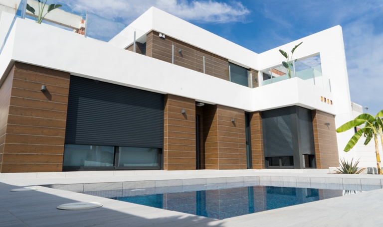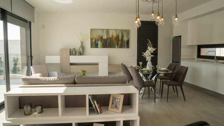 These Brand New, Three Bedroom Semi Detached Villas in Benijofar are located on the edge of this fantastic, bustling Spanish town, between Rojales and Ciudad Quesada. Situated within a 10 to 15 minutes walk of the many amenities and facilities this town has to offer, including a wide range of bars, restaurants, shops, supermarkets, banks, butchers, pharmacy and more... The coast is only a 15 minute drive, where you will find the beautiful beaches of Guardamar del Segura. These stunning properties comprise of an open plan fully fitted kitchen; lounge/dining room with large double glass sliding doors out to the front garden and private swimming pool; two double bedrooms on the ground floor, one of which has a en suite shower room and direct access out to the garden, overlooking the pool; a family shower room; the master bedroom is situated on the first floor with sliding doors out to the solarium, a spacious area, surrounding the property with lovely open surrounding area views; and the solarium can also be accessed via the first floor landing. Outside is a totaly landscaped garden, tiled and gravelled with an off road parking space, private pool, shower and of course ample room to eat and BBQ al fresco! Extras included with these properties are pre-installed air conditioning, white goods, fitted wardrobes, under floor heating in the shower rooms, electrical blinds, shower screens, inside and outside lighting, motorized car gate and more... Starting from only €260.000!