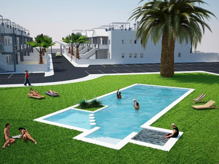 These South-East Facing, Three Bedroom Townhouses in La Florida are located in a sought after area on the Orihuela Costa, close to Los Dolses, Punta Prima and Playa Flamenca. The nearest amenities are within less than a 10 minute walk, with the La Zenia Boulevard commercial centre just a 5 minute drive away, including a wide range of beaches or golf courses nearby too!!! These stunning properties comprise of an open plan fully fitted kitchen, with a utility/courtyard just off; lounge/dining room with access out to the front porch and nicely landscaped garden, with private parking for two cars; one double bedroom on the ground floor; a family shower room; two double bedrooms, the master with en suite shower room and a private terrace; a guest shower room; and internal stairs to the private roof top solarium of some 36m2, where there are great views over the surrounding community, perfect for BBQ’s and entertaining!!! Extras included are fitted wardrobes, pre-installed air conditioning, white goods and under floor heating in the bathrooms... Starting from €235.000!