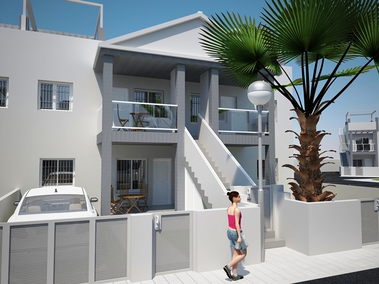 These Two Bedroom Apartments in La Florida are located in a sought after area on the Orihuela Costa, close to Los Dolses, Punta Prima and Playa Flamenca. The nearest amenities are within less than a 10 minute walk, with the La Zenia Boulevard commercial centre just a 5 minute drive away, including a wide range of beaches or golf courses nearby too!!! These stunning properties comprise of an open plan fully fitted kitchen, with a utility/courtyard just off; lounge/dining room with access out to the front porch; two double bedrooms, the master with en suite shower room and access out to the front porch; plus a family shower room. The ground floors have a nicely landscaped garden off the front terrace, with an off road parking space, whilst the top floors will have external stairs from said terrace to the private roof top solarium of some 60m2, where there are great views over the surrounding community, perfect for BBQ’s and entertaining!!! Extras included are fitted wardrobes, pre-installed air conditioning, white goods and under floor heating in the bathrooms... Starting from €160.000!