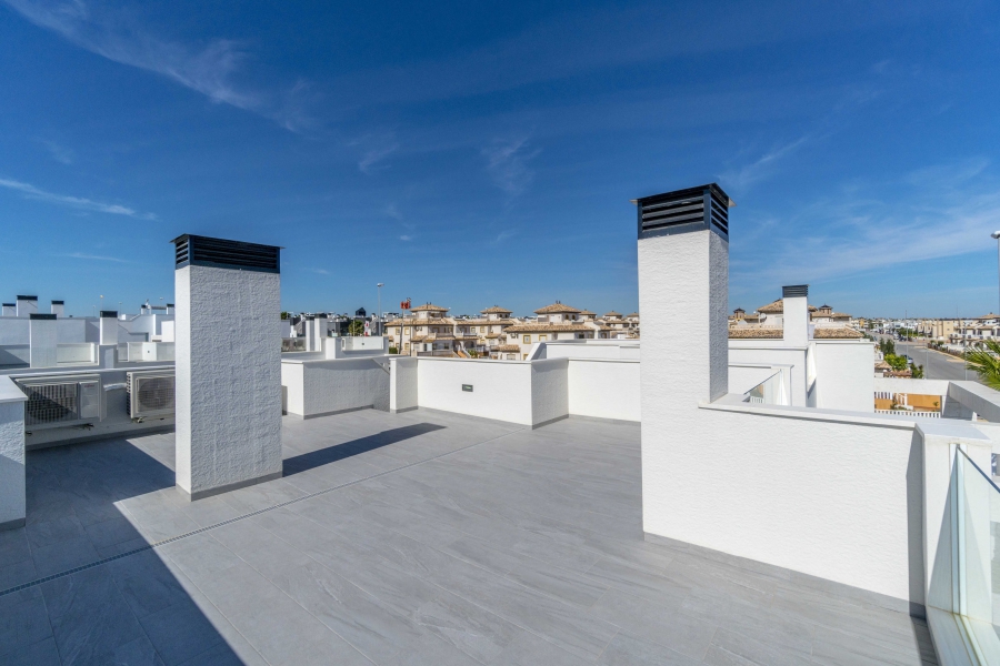 These Immaculate, Three Bedroom Detached Villas in Lomas de Cabo Roig are located on the ever so sought after Orihuela Costa, close to Campoamor Golf and Cabo Roig. Within a few minutes walk of the nearest amenities, with a wide choice of beaches just a 5 minute drive away, with also a selection of golf courses within the area too!!! These properties comprise of an open plan fully fitted kitchen, with direct access out to the terrace & garden; spacious lounge/dining room with feature, vaulted ceilings, and additional windows for some fabulous natural light; three double bedrooms, one of which is on the ground floor with walk through wardrobe and en suite shower room, whilst the other two are on the first floor, another with en suite and private terrace with views over the garden; a family shower room; and a cloakroom on the ground floor. Internal stairs lead to the roof top solarium of some 59m2, with magical open and surrounding area + sea views!!! Outside is a nicely and fully landscaped garden with a private parking space, pool included, and of course ample space to enjoy the Spanish lifestyle, by dining outdoors, sunbathing and relaxing...