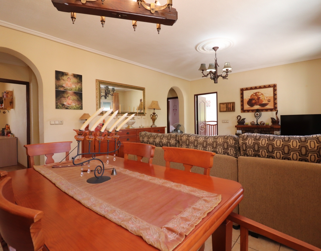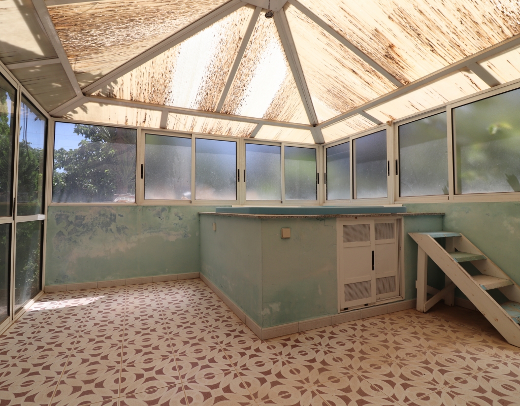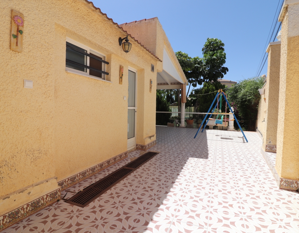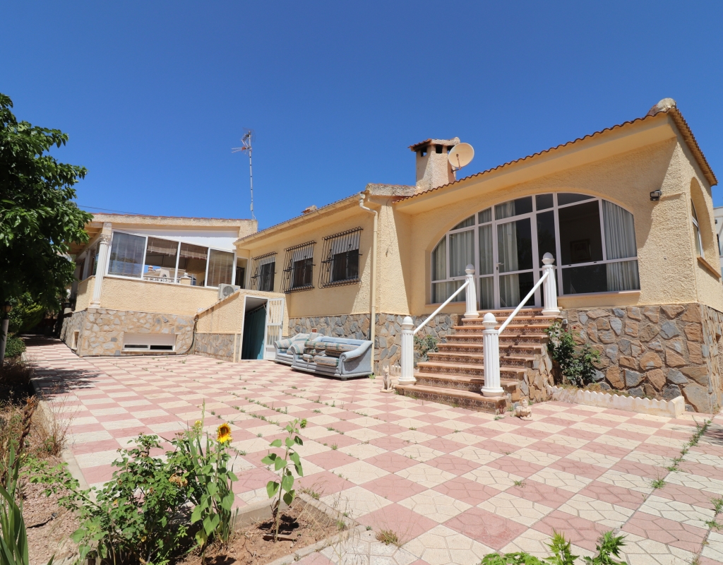 This South Facing, Four Bedroom, Corner Detached Villa in Ciudad Quesada is located within the Heart of this bustling area, between Quesada High Street and Altos de Quesada, just round the Corner from The Club, and Lakeside Restaurant (Old Country Club). Within less than a 15 minute walk from Quesada High Street or a couple of minutes drive, not forgetting La Marquesa golf course less than 5 minutes drive away. Guardamar del Segura beaches are also aprox a 10 minute drive away! This property on an outstanding 965m2 Plot, sits currently a property of 138m2 Build, comprising of a separate fully fitted kitchen, with access out to a spacious covered veranda, ideal for dining al fresco with wonderful breeze and views over the garden; family sized lounge/dining room with an open fireplace, leading to the glazed in and covered terrace, a perfect winter room, overlooking the gardens; four double bedrooms, the master with en suite shower room; and a family bathroom. Outside is a stunning sized plot, with lots of potential, and work needed, currently graveled and tiled, with ample off road parking under the car port, a private glazed Jacuzzi area, water well, plenty of space to dine, sit, relax, BBQ and entertain outdoors, but most importantly lots of potential! This is a very rare opportunity with such a huge plot, able to live in as is, with work needed or having the opportunity to refurbish and modernize, increase in m2 by double its current Build Size, making this a serious investment! Extras are to include fitted wardrobes, grills, ceiling fans, air conditioning in the living room, outside shower room, outside kitchen/utility room, an U/Build, which again needs work, but having potential for a fifth bedroom or games room, or office, plus a further two other storage areas under the property and more... Don’t miss out on this and make the right decision!