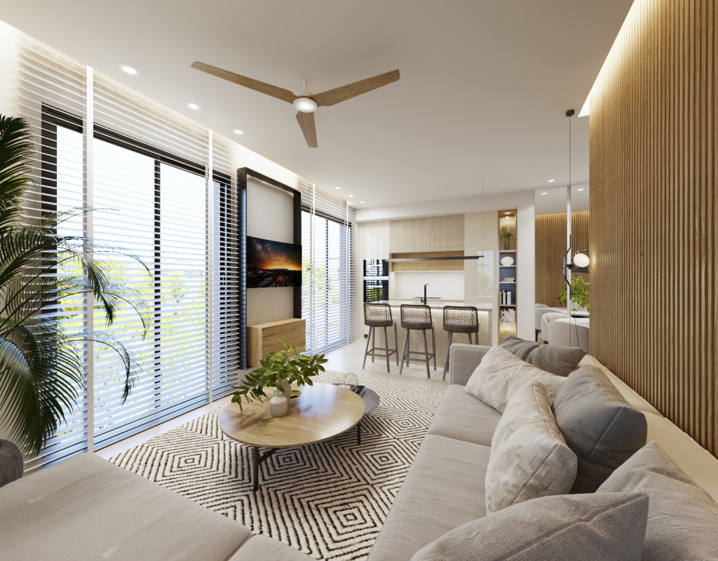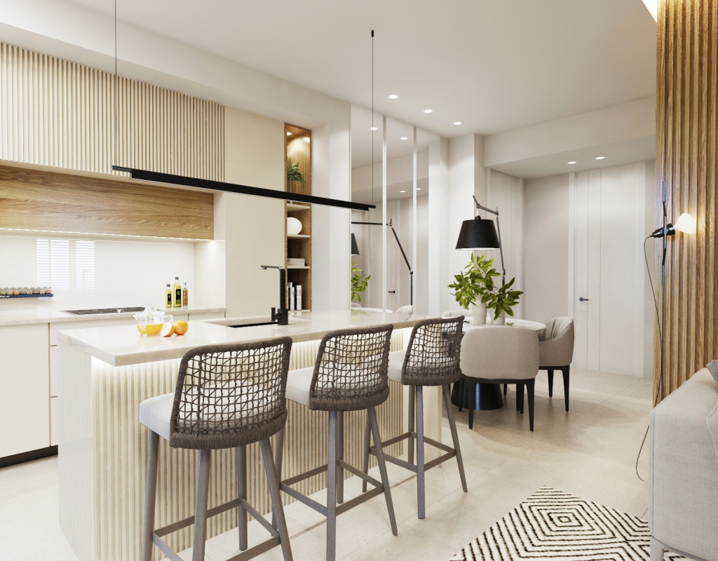These Stunning, Two and Three Bedroom, Apartments on the Santa Rosalia Lake & Life Resort are located on the Murcian Coast, close to Torre Pacheco. This mesmeric resort is known for its crystal lake of some 16.000m2, soon to be one of the largest in Europe. The resort is only a 5 minute drive from other bars and restaurants in the neighbouring towns, whilst the beaches are also a similar distance away! Corvera airport would be just over half an hour away too... On offer on this beautiful complex which has a lift and lovely planted communal areas are ground floors with a landscaped garden, first and second floors with terrace. All enjoy open plan living including fitted kitchen with feature peninsula island; two double bedrooms (option for a third) with fitted wardrobes, master with access to terrace; two shower rooms. Extras include alarm, intercom, pre-installed air conditioning, gated community parking, electric blinds, some led lighting.
