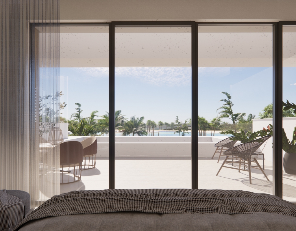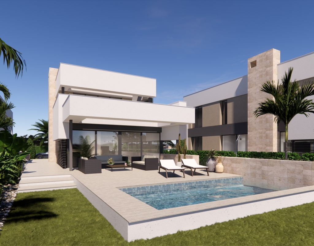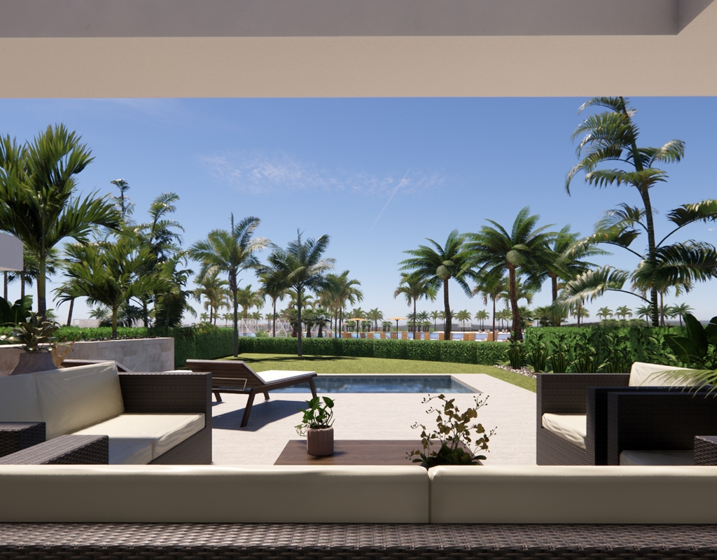These Luxury, Spectacular, Four Bedroom Detached Villas in Santa Rosalia Lake & Life Resort are located in the area of Murcia Coast, in the region of Torre Pacheco. Situated on this mesmeric resort will be a truly desirable crystal lake of some 16.000m2, soon to be one of the largest in Europe, benefiting from clear waters, feature palm islands, several sandy beaches, artificial grassed areas, water sports, beach club, chill out bar & restaurant, path surrounding ideal for walking, cycling, biking and running, gym, co-working space and other outdoor activities!!! The resort is only a 5 minute drive from other bars and restaurants in the neighboring towns, whilst the beaches are also a similar distance away! Corvera airport would be just over half an hour away too... These properties comprise of an open plan fitted kitchen with feature island and breakfast bar; beautiful open, bright and light lounge/dining room with large, wall to wall, sliding windows and doors out to the terrace, garden and private swimming pool, with views over the resort; one double bedroom on the ground floor with en suite; and a downstairs cloakroom. On the first floor there are a total of three double bedrooms, however the master with walk through wardrobe, en suite and direct access out to the terrace, with amazing views; and a family bathroom. The underbuild is an entertainers paradise space, with second kitchen + breakfast bar + island; dining area; games area or additional living space; then a fourth bathroom; utility room; 2 storerooms; and external access, all benefitting from the lowered side garden giving lots of natural light to the whole under build! Extras are to include fitted wardrobes, pre-installed air conditioning, aerothermic boiler, off road parking, landscaped garden, private pool, and more... From €1.210.000, ranging up to €1.400.000!!!
