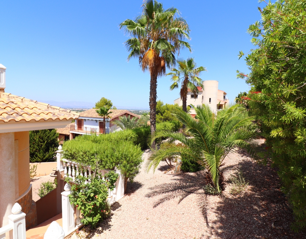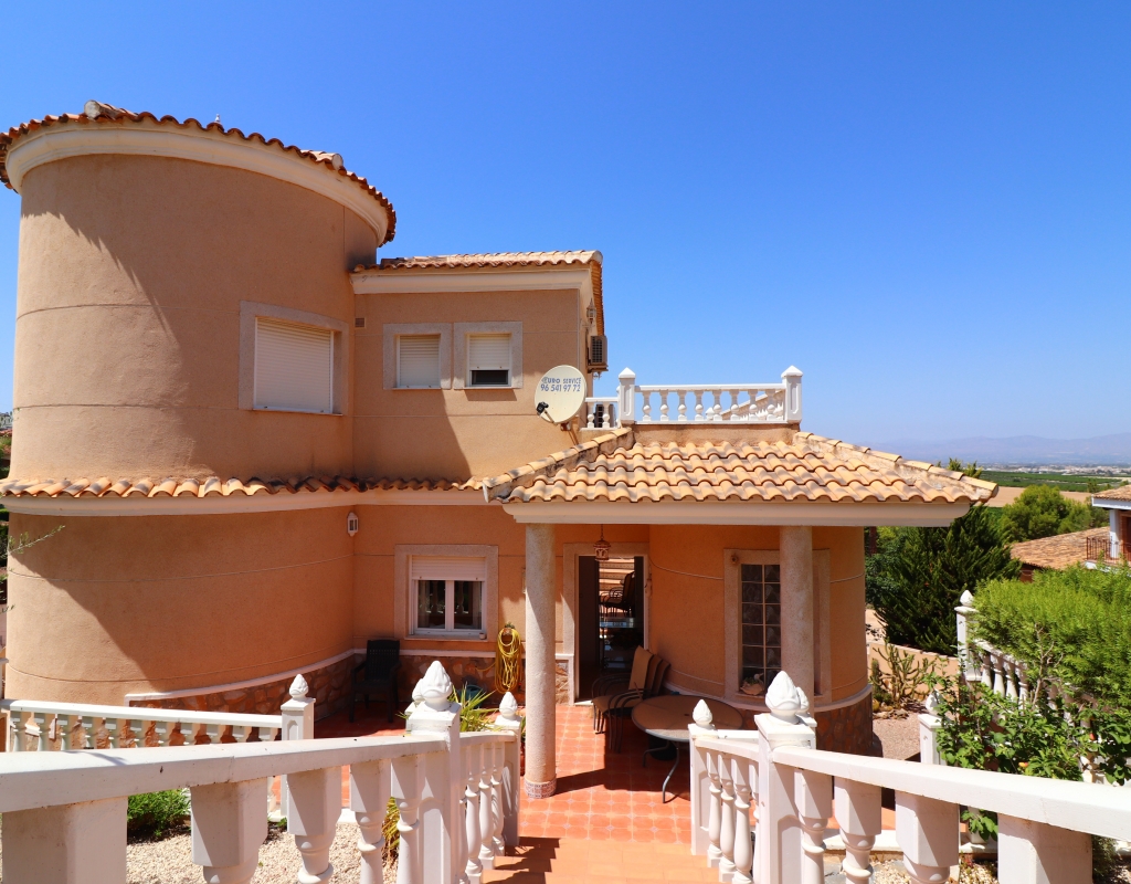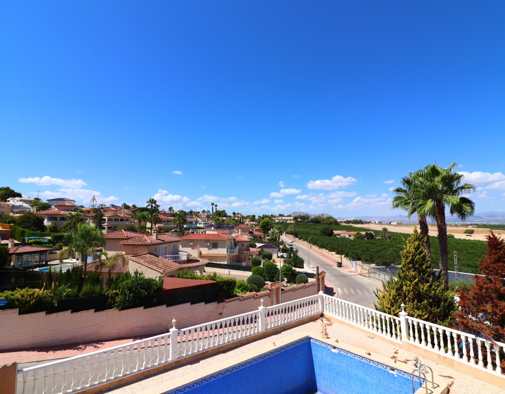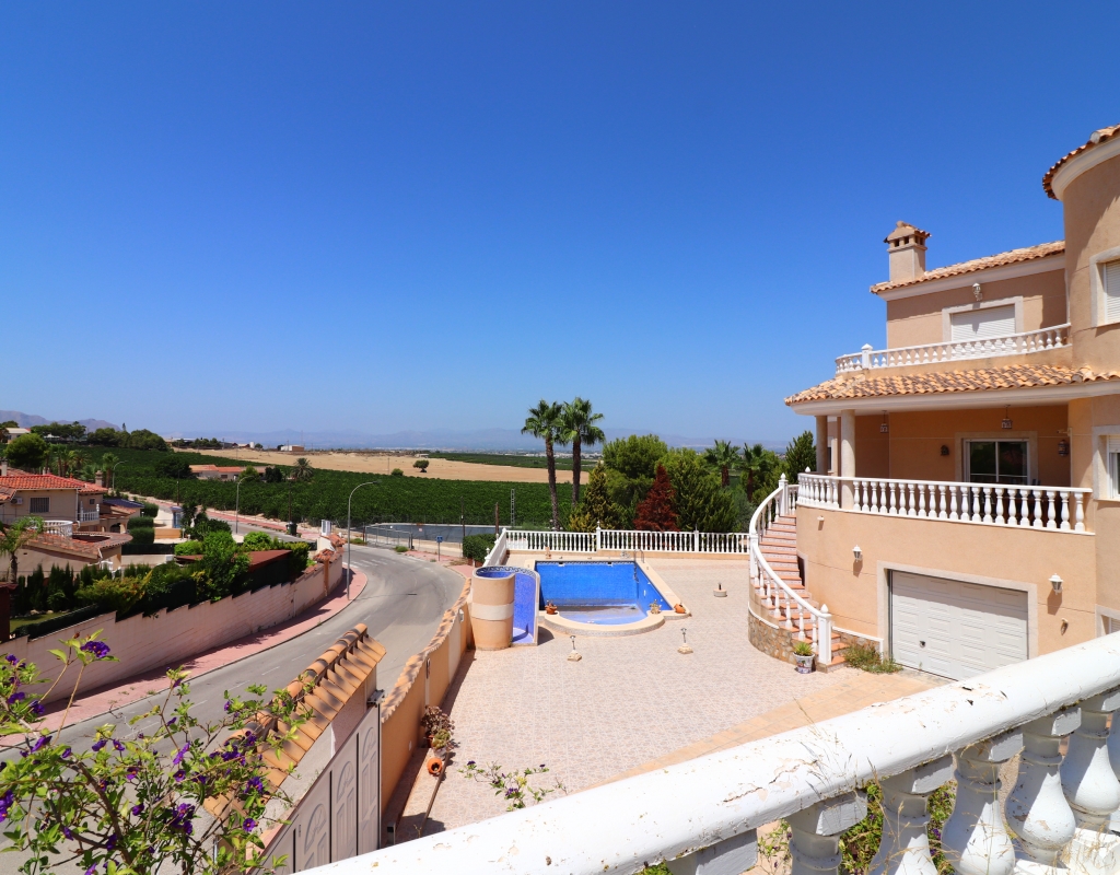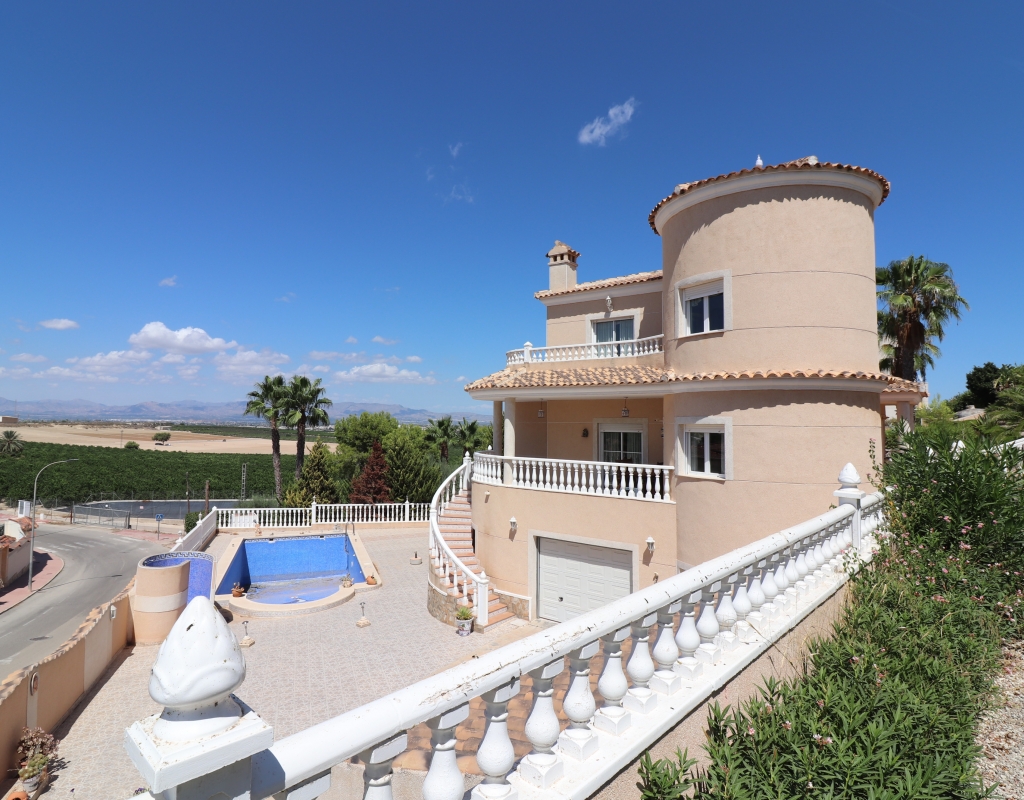 This Extremely Spacious, South-West Facing, Six Bedroom, Exclusive Detached Villa in Lomas de la Juliana is located between Algorfa village & the 5* La Finca, Golf, Hotel & Spa Resort. Situated on a prestigious Urbanization within a short drive to the local Amenities and Facilities, to include bars, restaurants, shops, banks, pharmacy, medical centre, golf course, hotel, spa and more... The nearest beaches are at Torrevieja or Guardamar del Segura, within a 15 minute drive! This Stunning property is positioned on a Desirable and Prominent Corner Position, set on a plot of some 1.200m2. Comprising on the main level of an open plan fully fitted kitchen; spacious family sized lounge/dining room with sliding doors out to the covered circular veranda/terrace, ideal for dining outdoors, with amazing uninterrupted countryside and citrus grove views; two double bedrooms, one of which is with en suite; and a family bathroom. On the first floor there a further two double bedrooms, one of which is a self contained apartment with kitchen, living area and access out to the top floor terrace, where there are even more amazing views, to include mountains and sunset! The under build then has a further two double bedrooms; a bathroom; a utility room; and a 2+ car garage! The garden is tiled and graveled, landscaped with mature plants and trees, a private swimming pool, ample parking up to the garage, built in brick BBQ area, plenty of room to dine, relax and entertain outdoors too! Simply wow! Just reduced to an amazing price, because of some slight TLC needed! What a property, with many extras include, such as air conditioning mostly throughout, grills, fitted wardrobes, gas fireplace, water softener and more!!! Wow!