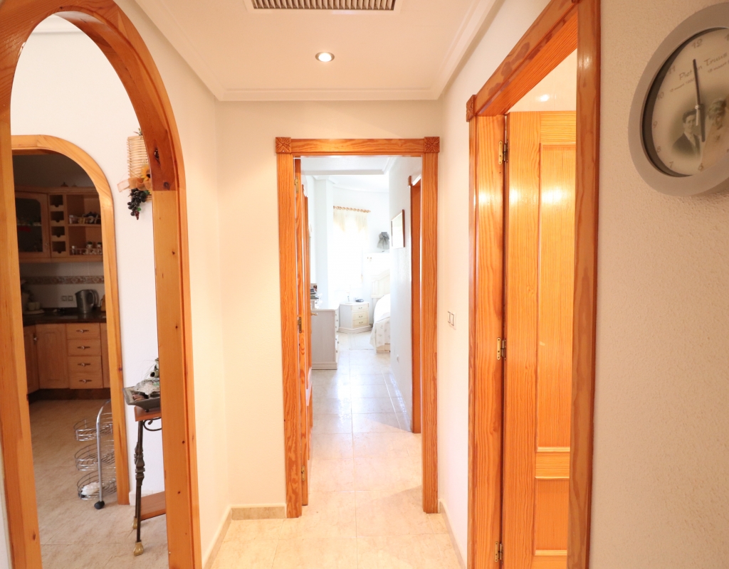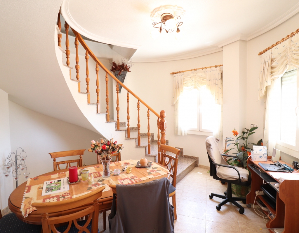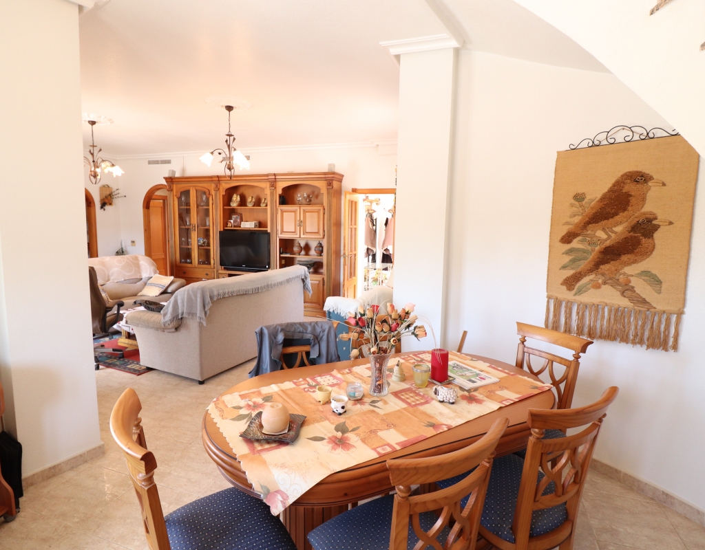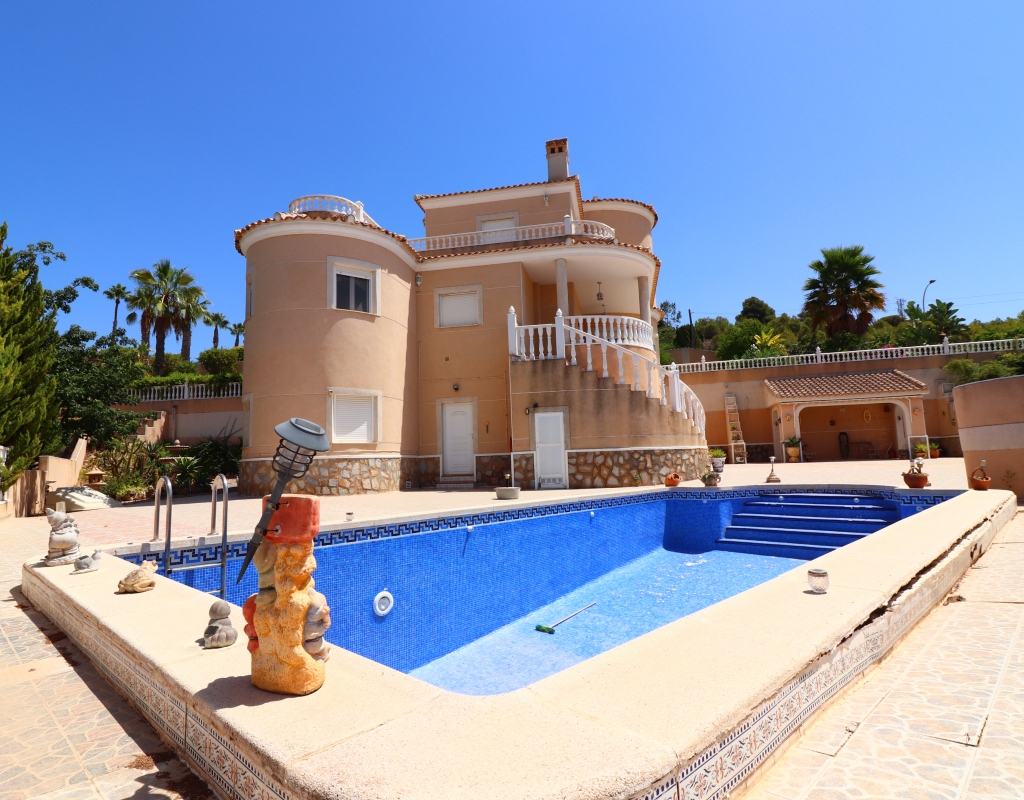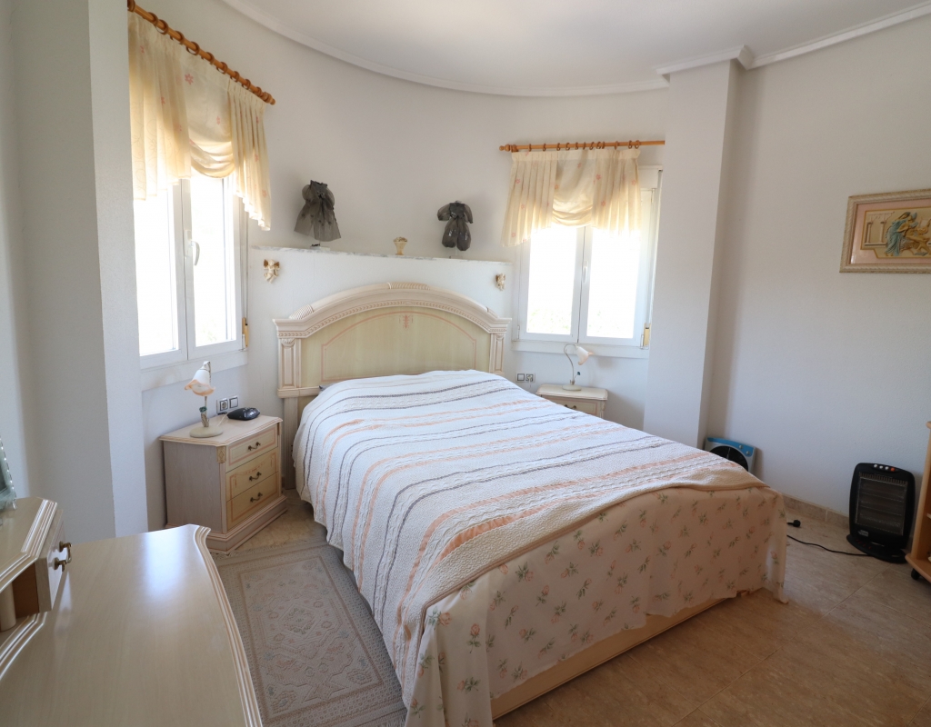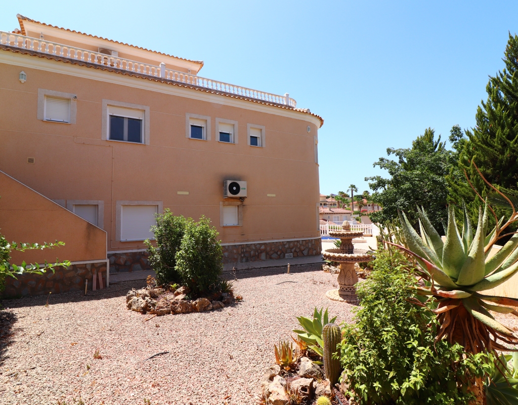 This Extremely Spacious, South-West Facing, Six Bedroom, Exclusive Detached Villa in Lomas de la Juliana is located between Algorfa village & the 5* La Finca, Golf, Hotel & Spa Resort. Situated on a prestigious Urbanization within a short drive to the local Amenities and Facilities, to include bars, restaurants, shops, banks, pharmacy, medical centre, golf course, hotel, spa and more... The nearest beaches are at Torrevieja or Guardamar del Segura, within a 15 minute drive! This Stunning property is positioned on a Desirable and Prominent Corner Position, set on a plot of some 1.200m2. Comprising on the main level of an open plan fully fitted kitchen; spacious family sized lounge/dining room with sliding doors out to the covered circular veranda/terrace, ideal for dining outdoors, with amazing uninterrupted countryside and citrus grove views; two double bedrooms, one of which is with en suite; and a family bathroom. On the first floor there a further two double bedrooms, one of which is a self contained apartment with kitchen, living area and access out to the top floor terrace, where there are even more amazing views, to include mountains and sunset! The under build then has a further two double bedrooms; a bathroom; a utility room; and a 2+ car garage! The garden is tiled and graveled, landscaped with mature plants and trees, a private swimming pool, ample parking up to the garage, built in brick BBQ area, plenty of room to dine, relax and entertain outdoors too! Simply wow! Just reduced to an amazing price, because of some slight TLC needed! What a property, with many extras include, such as air conditioning mostly throughout, grills, fitted wardrobes, gas fireplace, water softener and more!!! Wow!