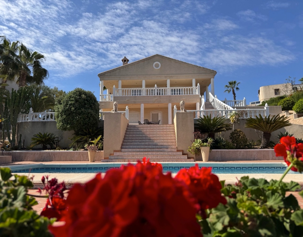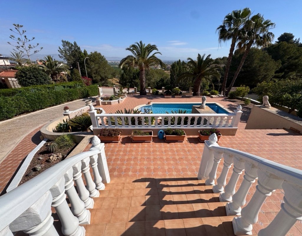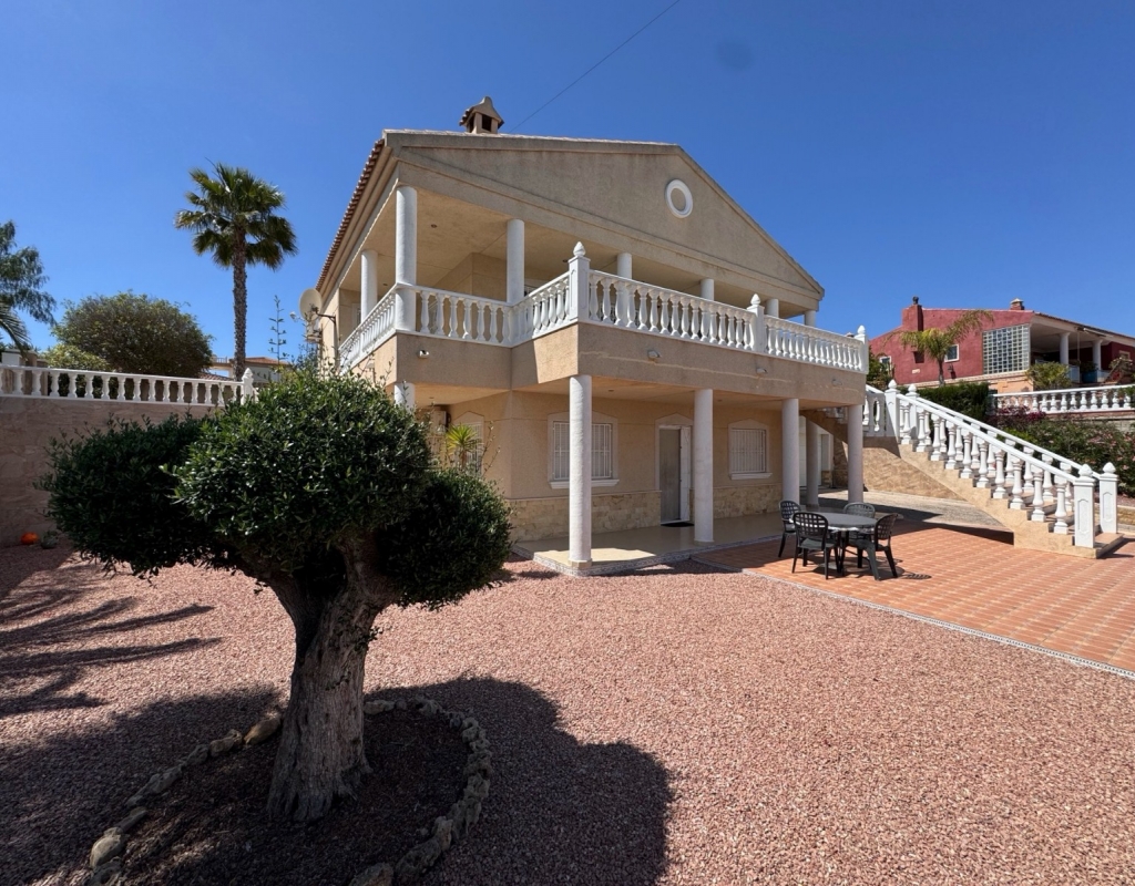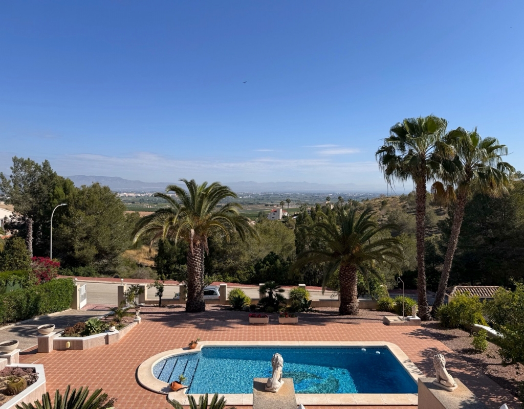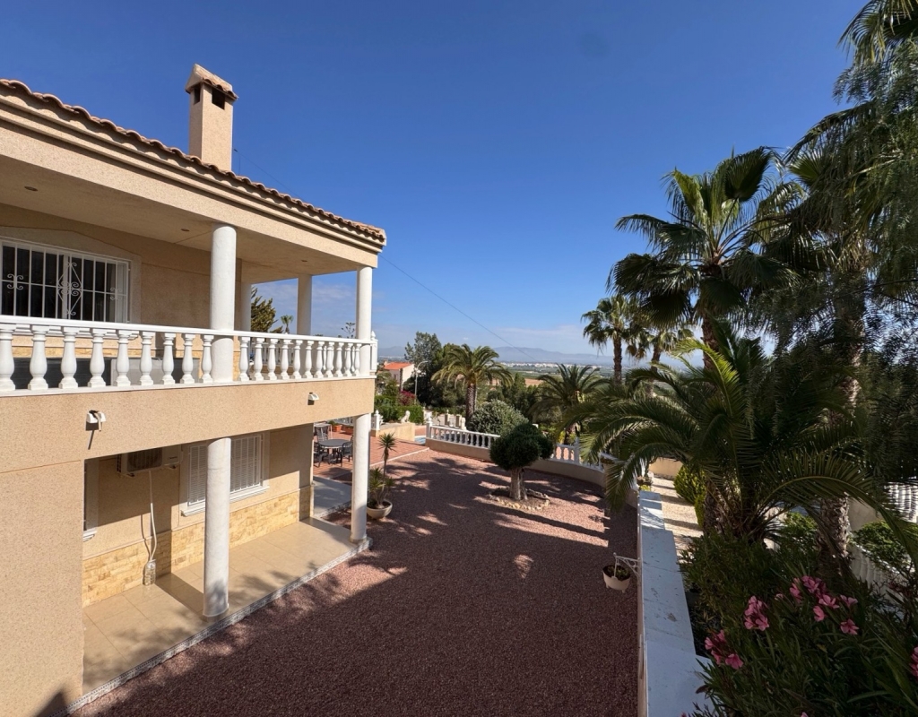 This Imposing 216m2, Three Bedroom, Detached Villa in Lomas de La Juliana is located in a very sought after residential area, with a tennis club at the entrance and La Finca 5* hotel, spa and golf course right on the doorstep, where you can also find a variety of eating places and shops. Main chain supermarkets can be found in Almoradi and Benijofar which are just 5 minutes by car. The beaches along the coast by car are approximately 20 minutes away. This outstanding home occupies a 1220m2 private landscaped plot with the most extensive views you will find in the area. The main living area of the villa is accessed via external staircase to an ´L´shaped covered terrace area, this then provides access into the lovely light living area, having a set of sliding doors and three sets of windows, feature open fireplace; incredible fitted kitchen/breakfast room; double bedroom and a family shower room. The ground floor of the property is accessed externally and comprises of lounge, archway into the fitted kitchen, bathroom and two double bedrooms. The garden is pebbled and tiled with a long driveway leading to a garage and a carport; the pool area has tiled surround and there are plenty of mature trees, bushes, palm trees surrounding. Extras include underfloor heating throughout the main floor, air conditioning, fitted wardrobes in all bedrooms, irrigation system.