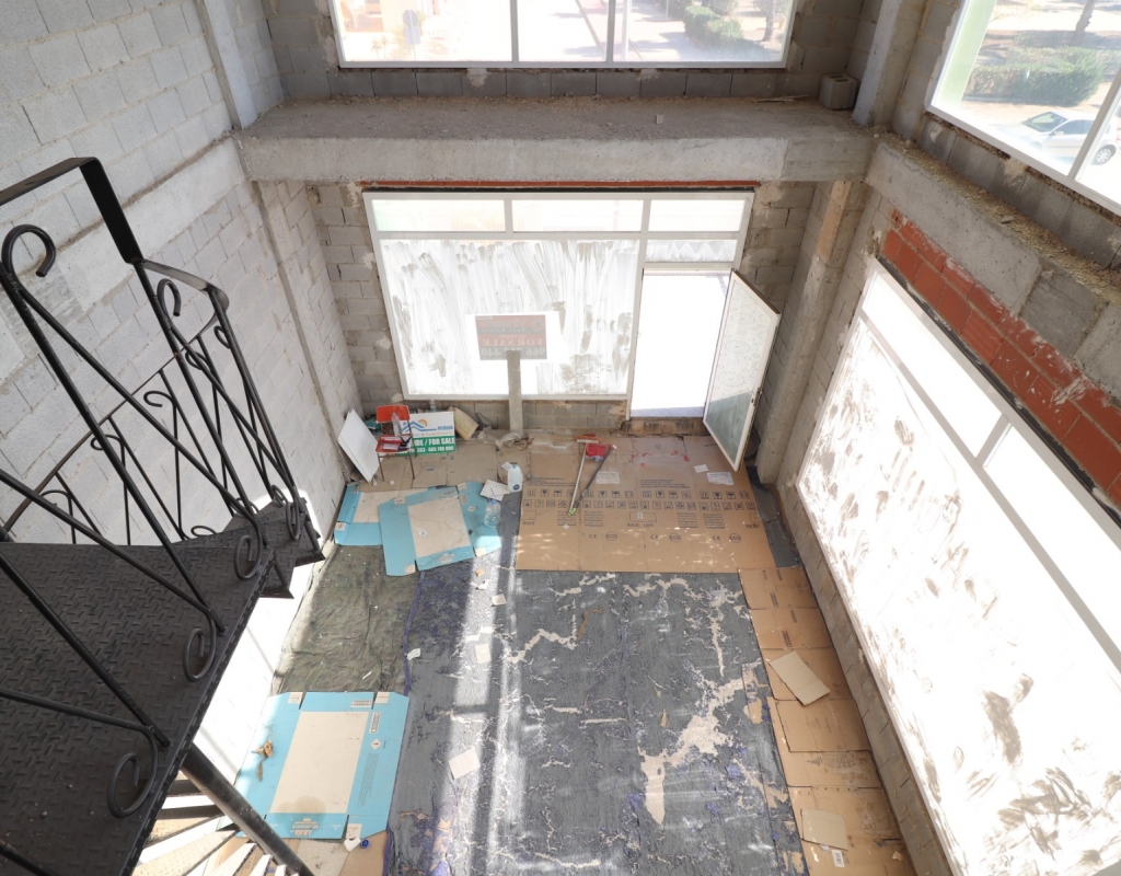 This Corner, South/West Facing Empty Unit in Benimar II is located in a popular, well established and residential urbanization, between Benijofar and Rojales, just up from the sought after Benimar I. Situated with an open outlook from the sunny terrace, comprising inside of a shell unit with mezzanine level too, with potential throughout to be converted in to a café, bar, restaurant, office, shop or something else. Great potential to own your own Freehold Unit of some 84m2, on a Corner position, at a bargain price!