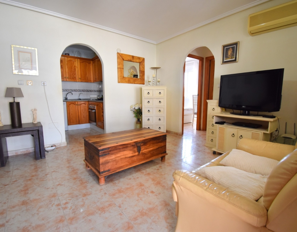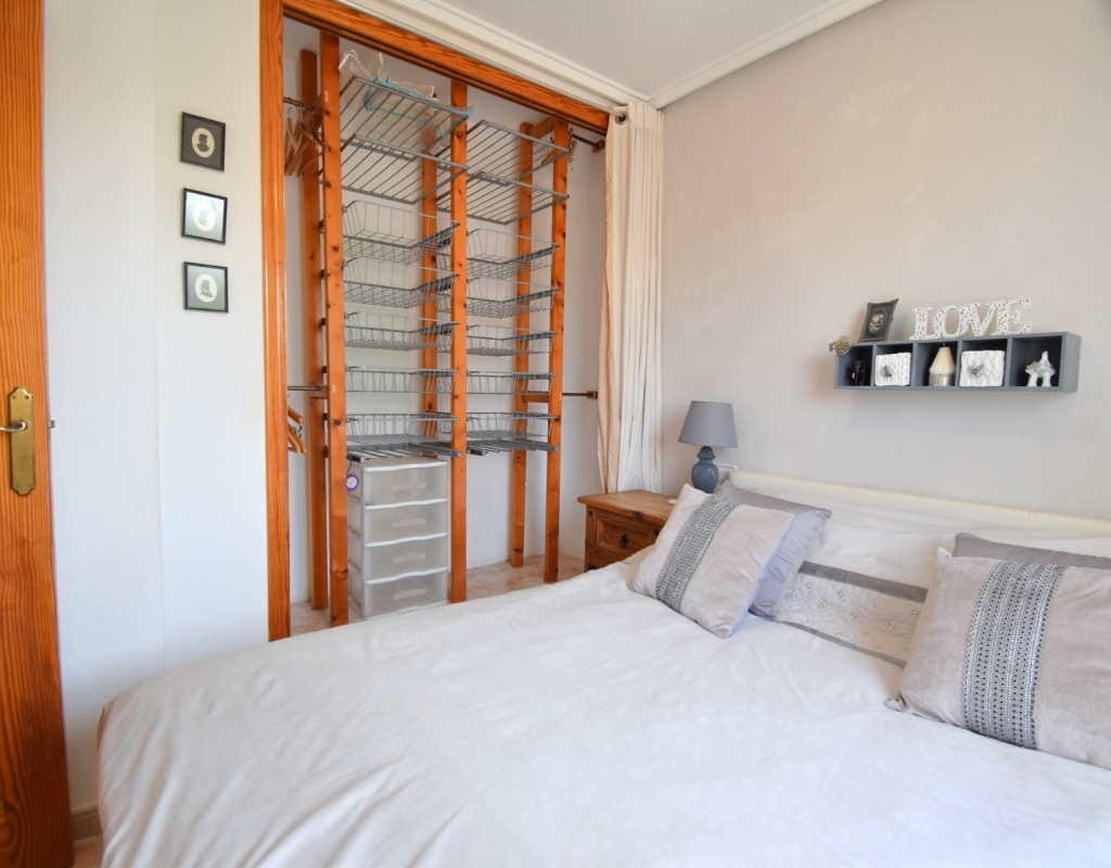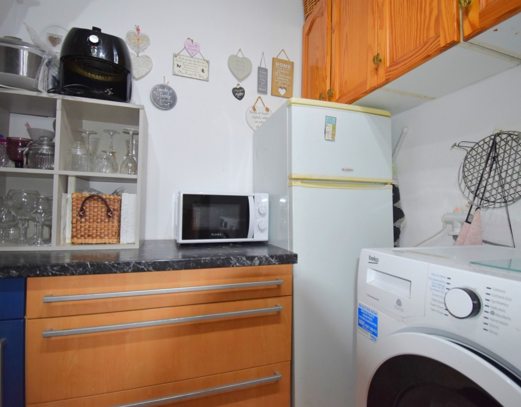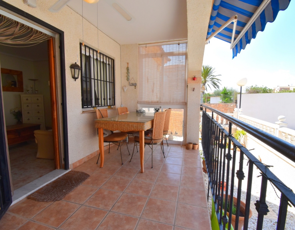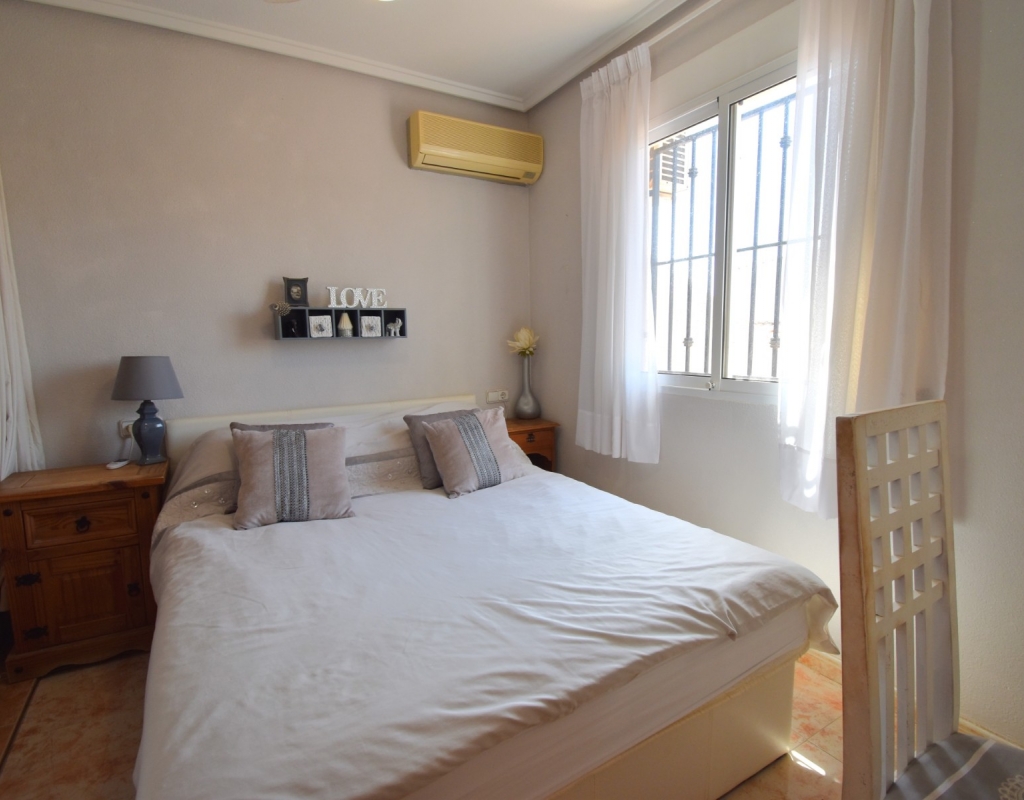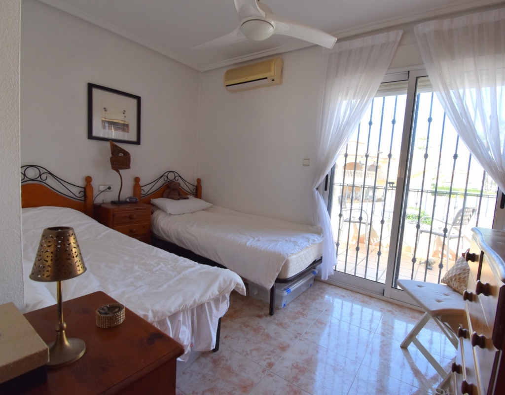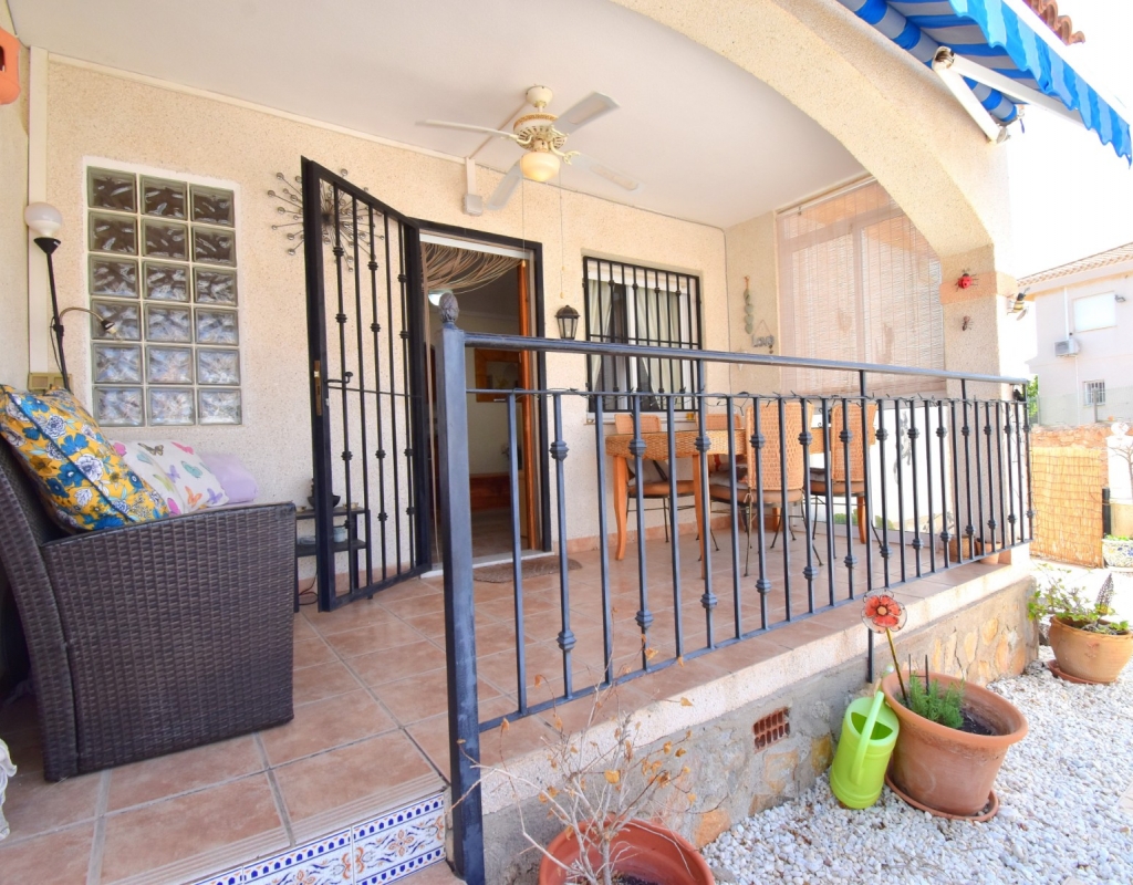 This West Facing, Two Bedroom, Corner Quad Villa in Playa Flamenca, is located in a popular and well-established area of the Costa Blanca South, just a 10-minute walk to a selection of restaurants and café bars. The vibrant La Zenia Boulevard shopping centre is around a 20-minute walk away, with the beautiful sandy beaches just a 5-minute drive. Several renowned golf courses can also be reached within 10 minutes, making this an ideal home for both permanent living and holiday enjoyment. The property is situated on a desirable corner plot and features a covered entrance terrace, perfect for morning coffee or evening relaxation. Inside, the bright lounge/dining room has stairs leading to the first floor, and an archway flows through to the fully fitted kitchen, which benefits from an adjoining utility room. The ground floor also offers a double bedroom and a shower room. Upstairs, you’ll find the second double bedroom with access to a lovely private terrace, along with a family bathroom. From this level, internal stairs lead to the private rooftop solarium—an ideal space for sunbathing. The garden is low maintenance with a combination of pebbled and tiled areas. Additional features include air conditioning, built-in wardrobes, access to a well-maintained communal pool, and gated community parking. This is a fantastic opportunity to own a charming and well-located home in the heart of Playa Flamenca!