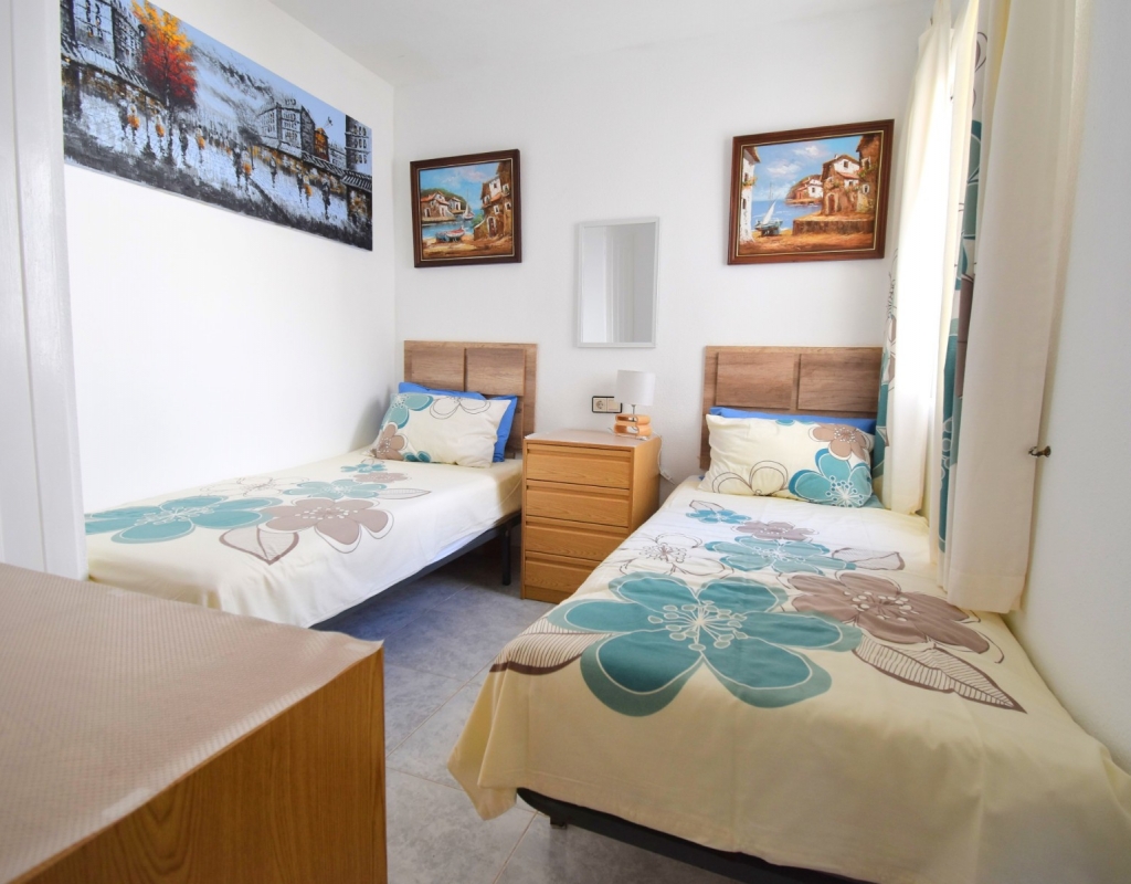 This South East Facing, Three Bedroom, Top Floor Apartment in La Florida, is located in the heart of the buzzing Orihuela Costa, just a 5 minute walk to a wide selection of cafe bars and restaurants. The ever-popular La Zenia Boulevard shopping centre and beautiful sandy beaches are only a 5 minute drive away, with a variety of renowned golf courses all within a 10 minute drive radius. Accessed via steps, this well-maintained and bright apartment comprises a spacious living room with double sliding glazed doors leading out to a lovely terrace, a separate fitted kitchen, three double bedrooms – two of which benefit from built-in wardrobes – and a modern family shower room. One of the standout features is the private solarium, offering views, including a glimpse of the sea – the perfect spot to relax or entertain. Additional benefits include off road community parking, a partly gated community environment, and access to a communal pool. Situated in a desirable area of the Costa Blanca South, this property makes an ideal holiday home, rental investment, or permanent residence.