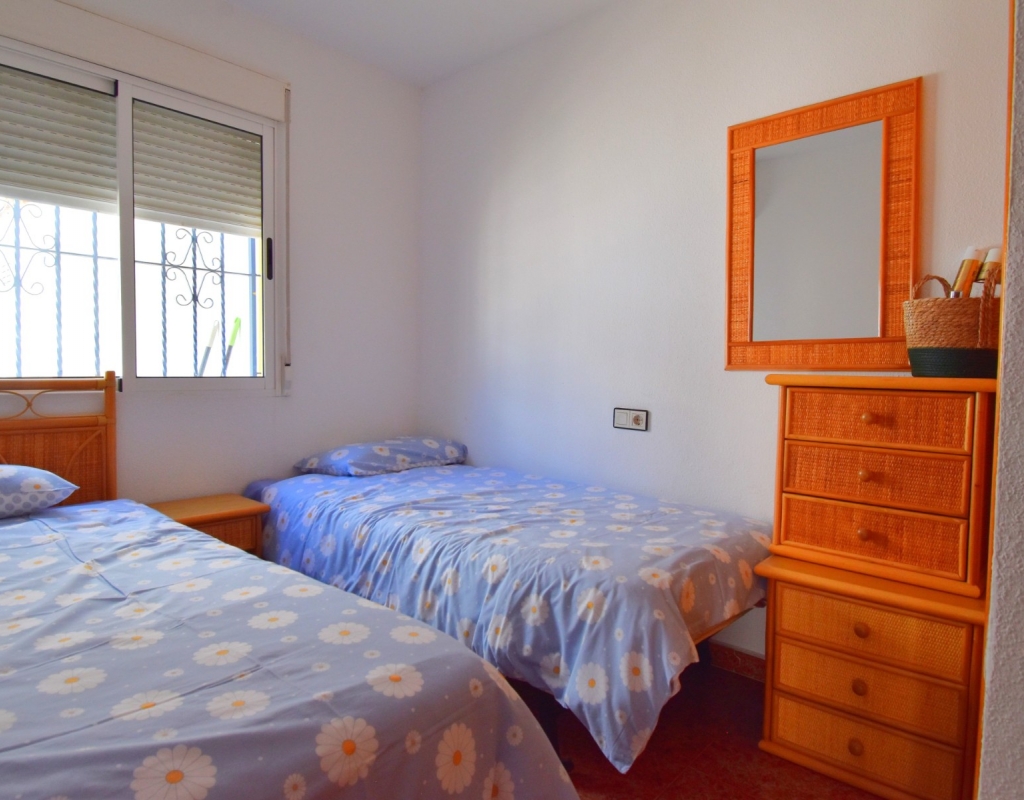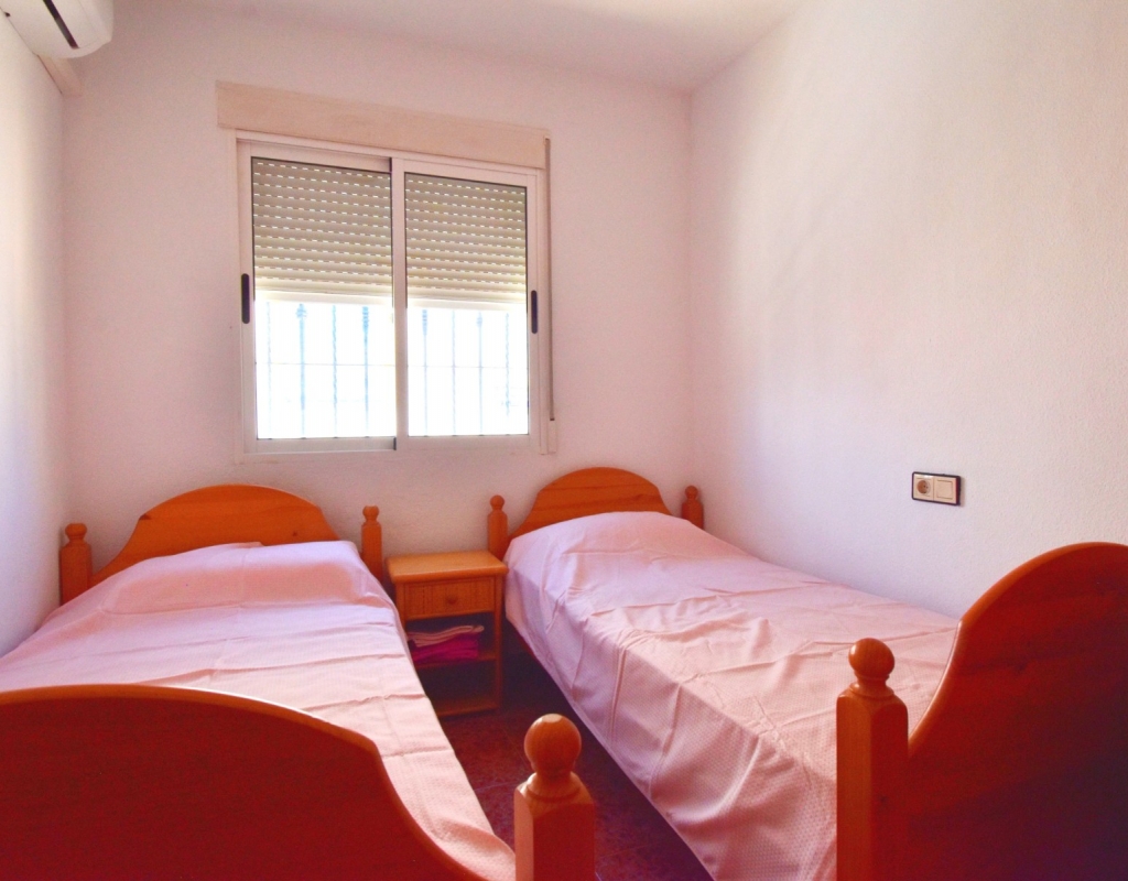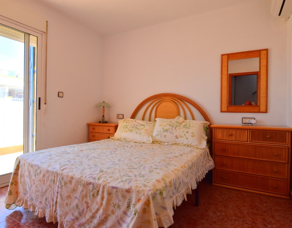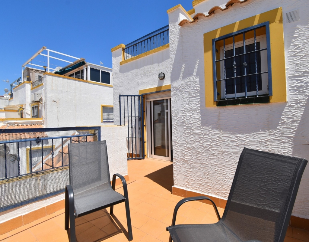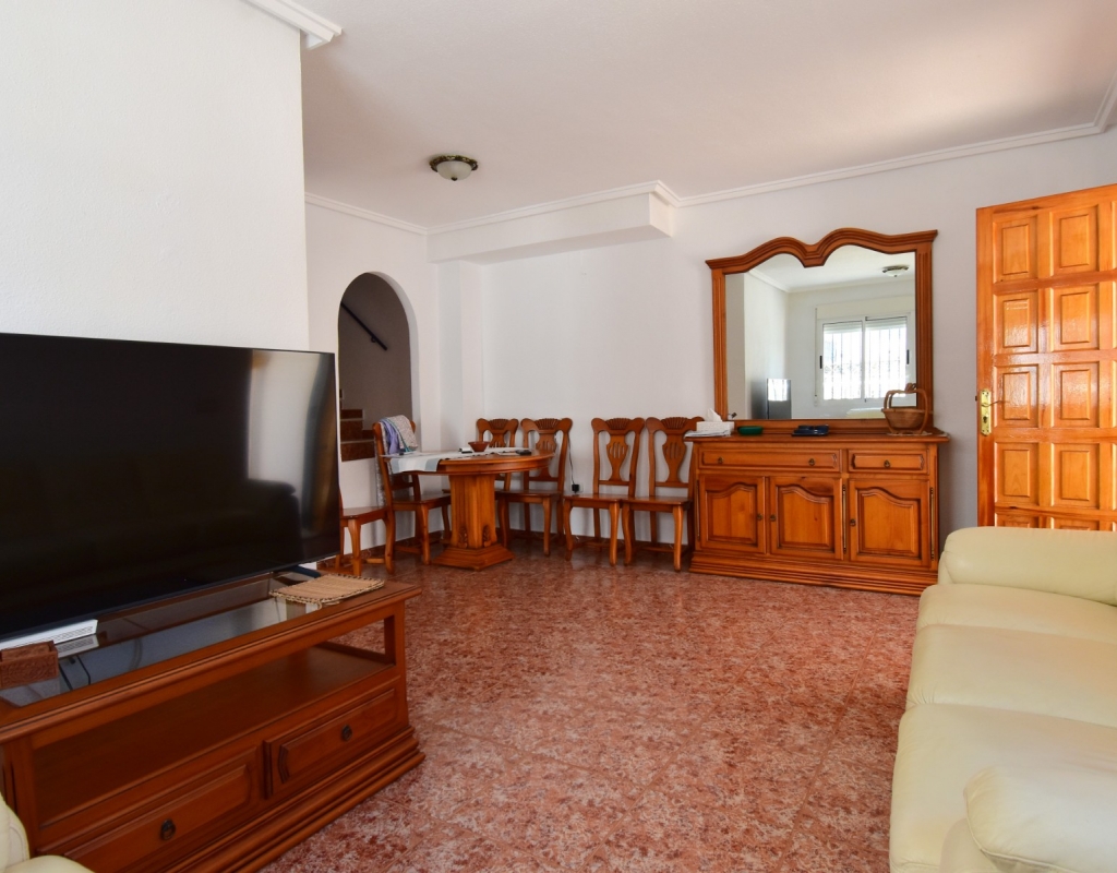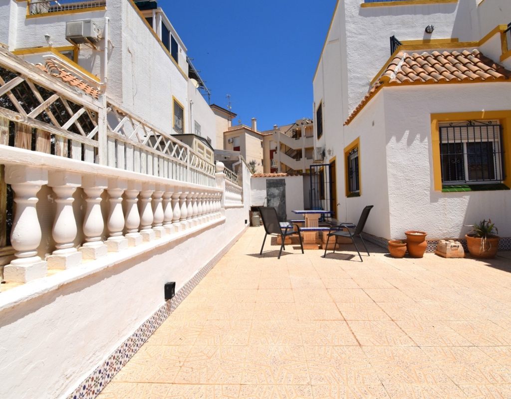 This South-West Facing, Three Bedroom, Semi Detached Villa in Playa Flamenca is located within just a five minute walk of a wide range of local facilities and amenities, and only a five minute drive from the stunning beaches of the Orihuela Costa. This spacious villa is in very good condition, featuring a separate fully fitted kitchen and security window and door grills throughout. All three bedrooms are doubles, with fitted wardrobes, and the master bedroom boasts access to a private terrace on the first floor. The property includes one bathroom and one shower room, with air conditioning throughout for year-round comfort. At the entrance, a small covered terrace provides a welcoming outdoor space, while internal stairs lead up to the private solarium, offering area views and distant sea views. Outside, the villa benefits from a tiled, low-maintenance garden with off-road parking, a useful storeroom, and access to a lovely communal swimming pool. Located in the heart of Costa Blanca South, this home offers an ideal blend of convenience, comfort, and coastal living.