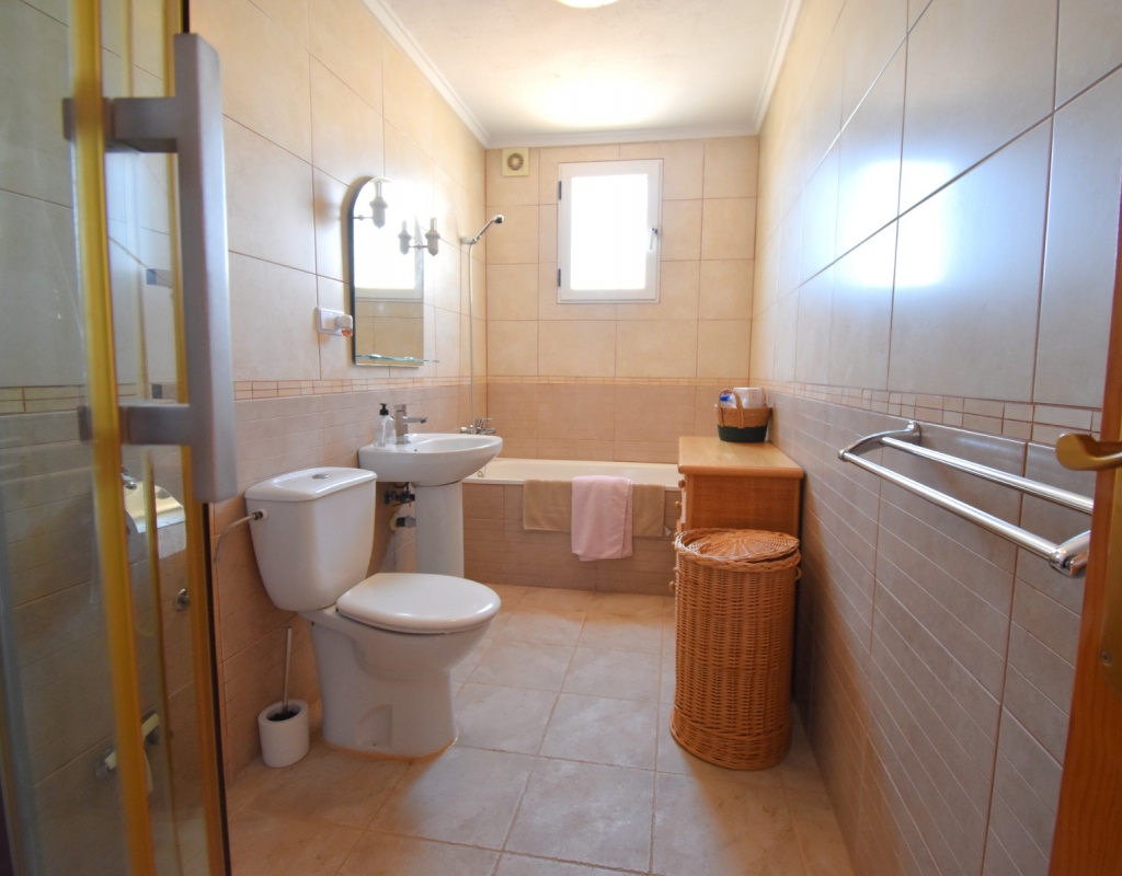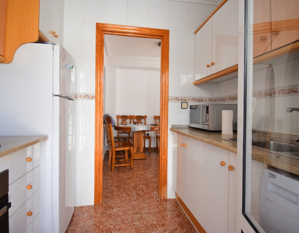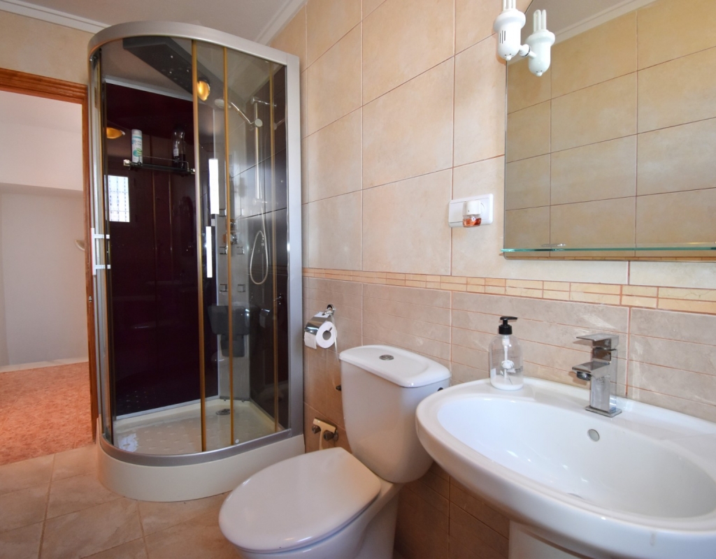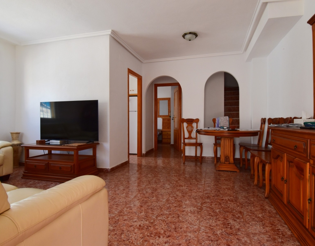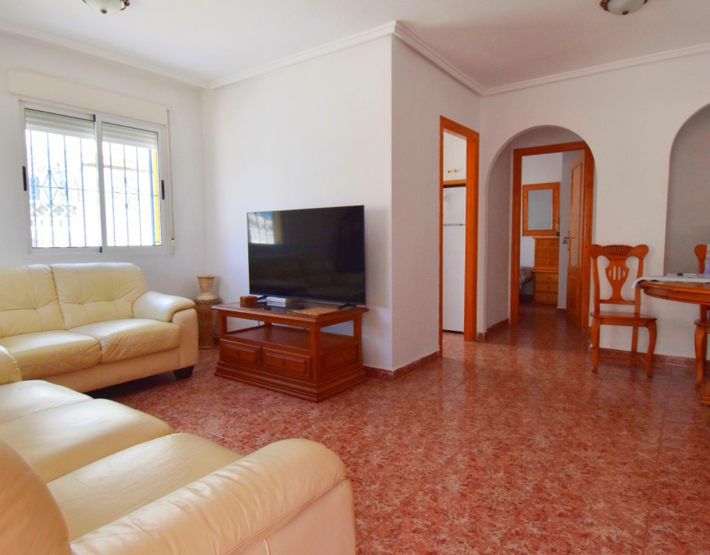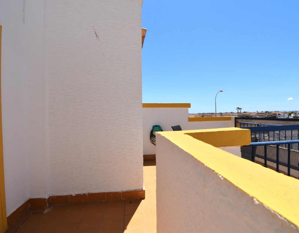 This South-West Facing, Three Bedroom, Semi Detached Villa in Playa Flamenca is located within just a five minute walk of a wide range of local facilities and amenities, and only a five minute drive from the stunning beaches of the Orihuela Costa. This spacious villa is in very good condition, featuring a separate fully fitted kitchen and security window and door grills throughout. All three bedrooms are doubles, with fitted wardrobes, and the master bedroom boasts access to a private terrace on the first floor. The property includes one bathroom and one shower room, with air conditioning throughout for year-round comfort. At the entrance, a small covered terrace provides a welcoming outdoor space, while internal stairs lead up to the private solarium, offering area views and distant sea views. Outside, the villa benefits from a tiled, low-maintenance garden with off-road parking, a useful storeroom, and access to a lovely communal swimming pool. Located in the heart of Costa Blanca South, this home offers an ideal blend of convenience, comfort, and coastal living.
