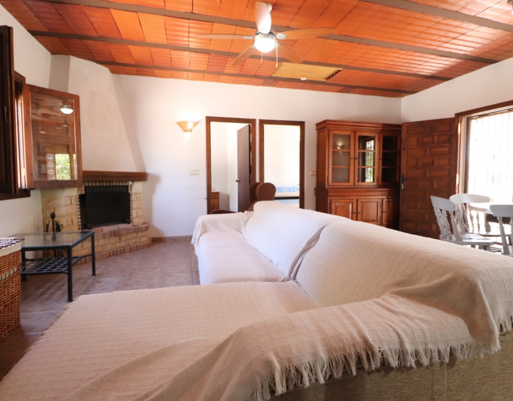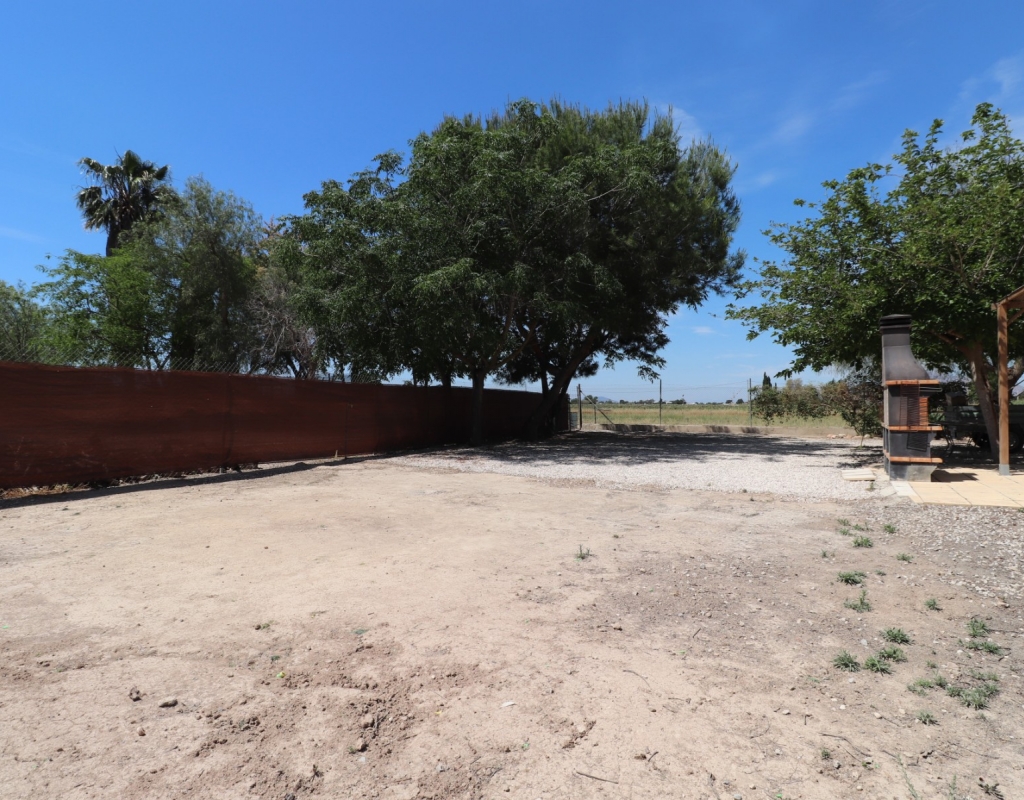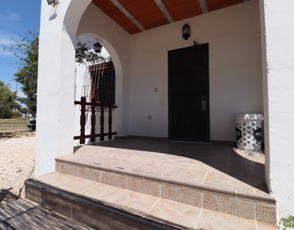 This South Facing, Two Bedroom, Detached Country Villa in Dolores, is located in a peaceful countryside setting, surrounded by citrus groves and nature, yet just a 15 minute walk from the charming town of Dolores, where you’ll find a range of amenities and services. The beautiful beaches of the Costa Blanca South are only a 20 minute drive away, offering the perfect blend of rural tranquility and coastal convenience. All on one level, this Spanish home comprises of a lounge/dining room with a corner feature fireplace and ceiling fan, an American-style fitted kitchen, two double bedrooms with free-standing wardrobes, and a family shower room with a walk-in shower. A covered entrance terrace provides a lovely shaded spot to relax and enjoy the views across the spacious 910m2 gravelled plot, which boasts ample off-road parking, a built-in BBQ area, mature trees, and palm trees, ideal for those who appreciate outdoor living and privacy. This charming country property is a fantastic opportunity for those seeking peace and space, while still being close to local amenities and just a short drive from the coast.
