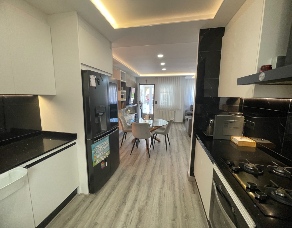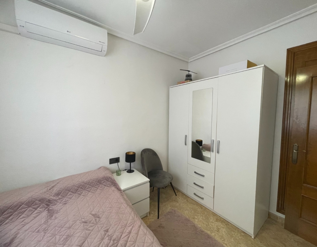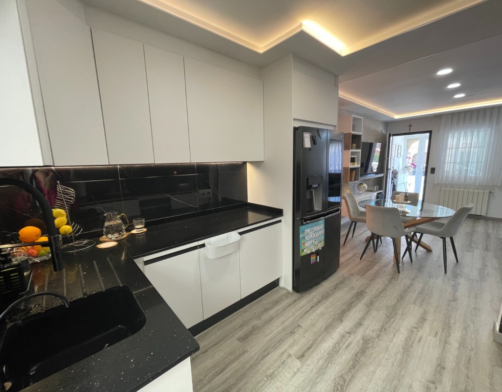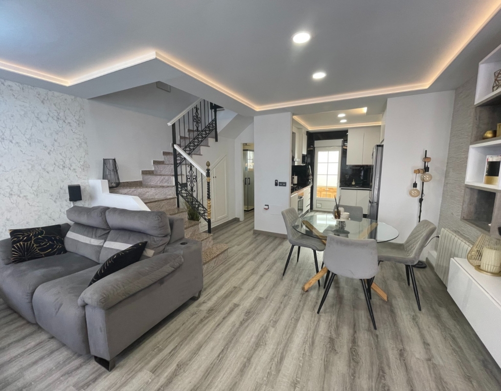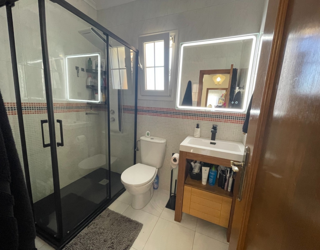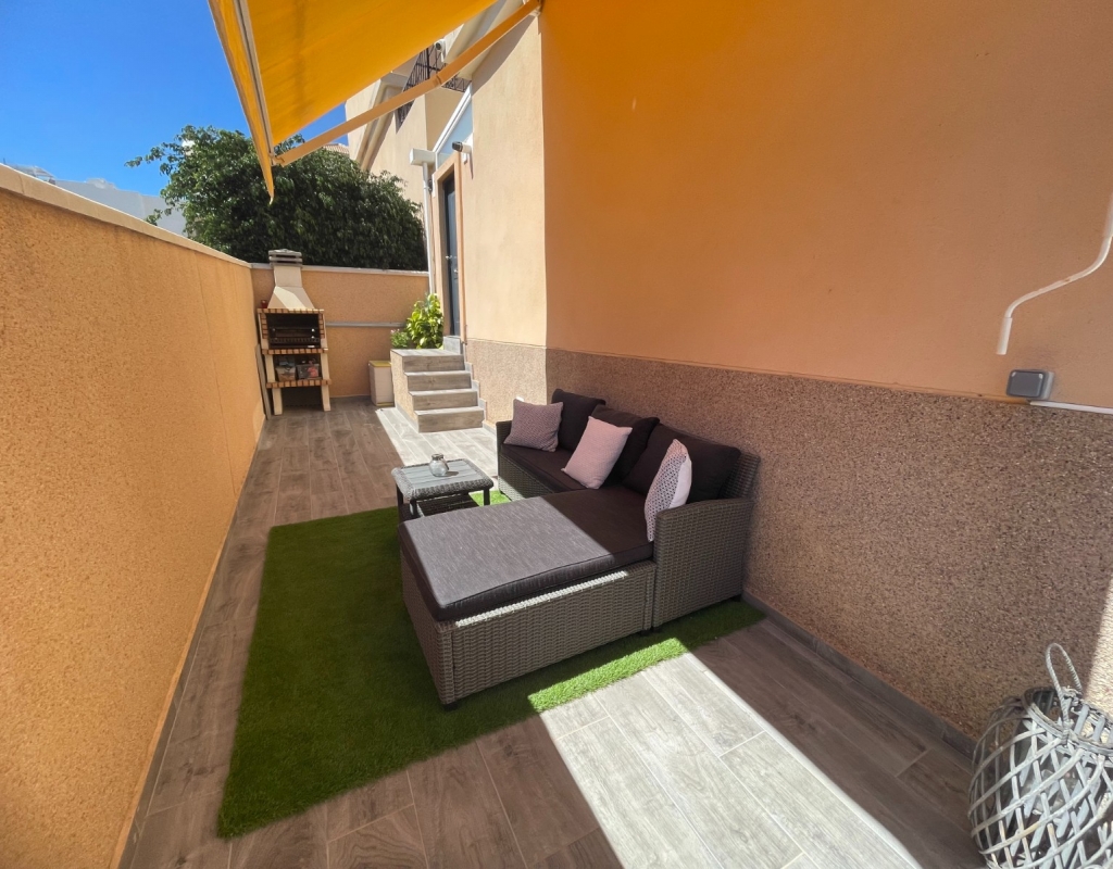 This South East Facing, Three Bedroom, Semi Detached Villa in Villamartin is located in a popular and well-established area of the Costa Blanca South. Just a 10-minute walk to a main chain supermarket, café bar, and the JYSK home store, with a further 15-minute stroll to a commercial centre offering a range of dining options. The renowned Villamartin golf course is only a 5-minute drive away, while the stunning beaches and the ever-popular La Zenia Boulevard shopping centre can be reached within 10 minutes. Situated on a desirable corner plot, this beautifully modernised villa boasts a stylish and light-filled interior. A glazed terrace leads into the open-plan living area, with stairs to the first floor just off the lounge. The stunning fitted kitchen features contemporary finishes and has direct access to a rear covered patio and utility area. A sleek ground-floor shower room adds extra convenience. Upstairs, you'll find three double bedrooms, two of which have built-in wardrobes. The master bedroom includes a ceiling fan, and the third bedroom opens onto a lovely private terrace. A modern shower room serves the upper floor. The exterior offers a low-maintenance, tiled garden with a clean, modern design, as well as off-road parking. The property also includes air con in the living room and two bedrooms, access to a communal pool and a handy store room. A private solarium completes this fantastic home, offering sunny spots to relax and dine. This is a fantastic opportunity to own a stylish home in the heart of Villamartin — ideal for holidays, rental investment, or permanent living on the Costa Blanca South.