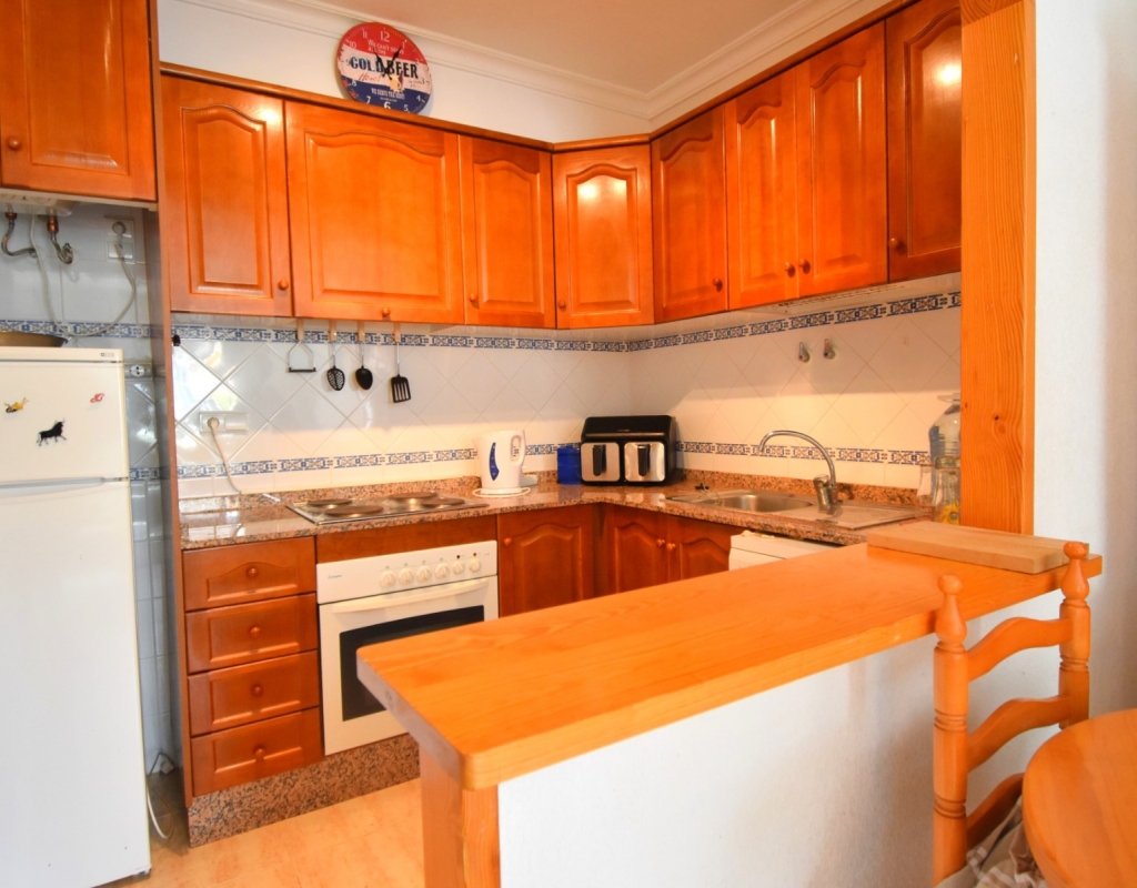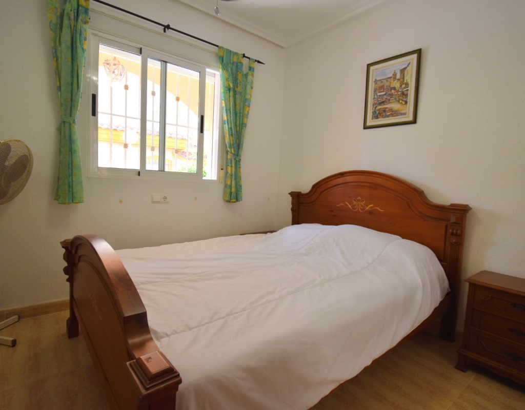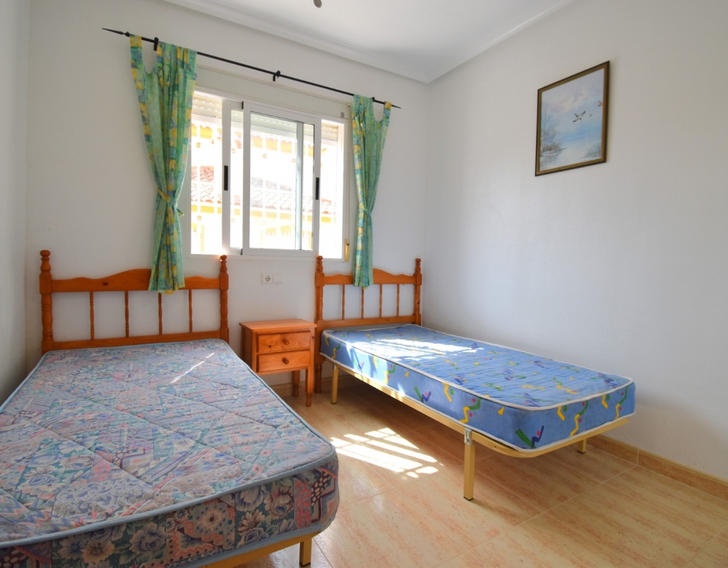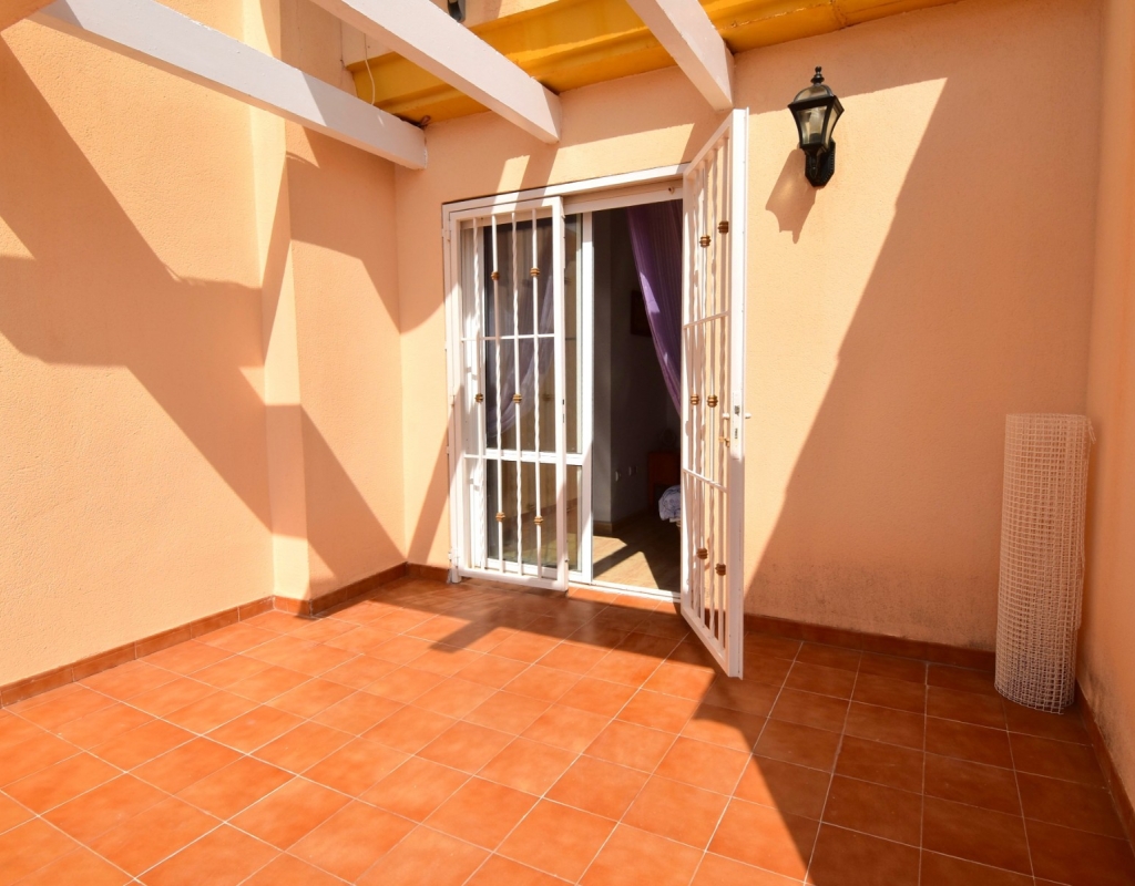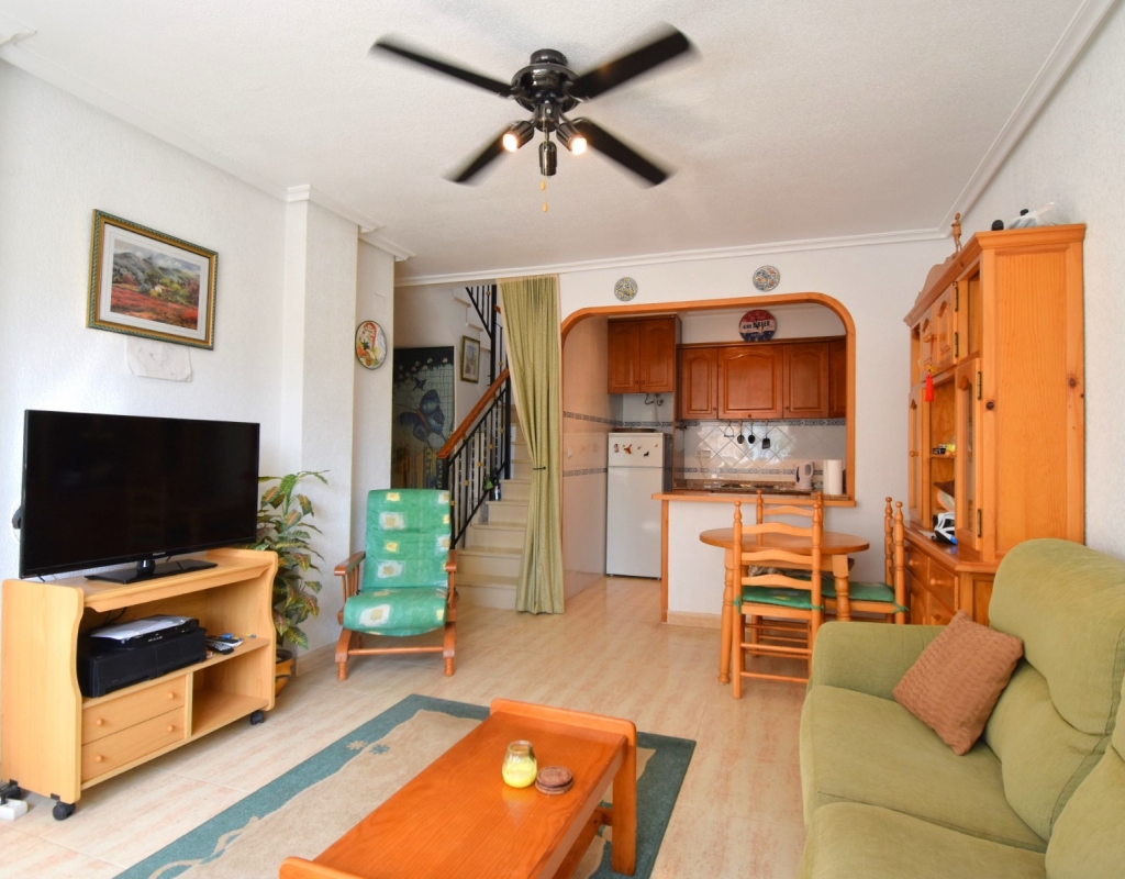 This South East Facing, Three Bedroom, Townhouse in Playa Flamenca is located in a popular and well-established area on the Costa Blanca South, just a 10-minute walk to a variety of café bars and restaurants. The La Zenia Boulevard shopping centre is a 15-minute walk away, with beautiful beaches just a 4-minute drive, and several top golf courses reachable within 5 to 10 minutes. The property is accessed via a covered entrance terrace, leading into a bright lounge/dining room with stairs to the first floor. The American-style fitted kitchen is well laid out, and the ground floor also offers a double bedroom and a family bathroom. Upstairs, you’ll find two further double bedrooms — the master with access to a private terrace — along with a second bathroom. All bedrooms include built-in wardrobes, and ceiling fans are installed throughout for added comfort. Outside, the front garden is mostly tiled for low maintenance and measures approximately 20m², offering a sunny space to relax. The property also benefits from off-road community parking and access to a well-maintained communal pool. This is a great opportunity for either full-time living, a holiday home, or investment in a sought-after area of Playa Flamenca on the Costa Blanca South.