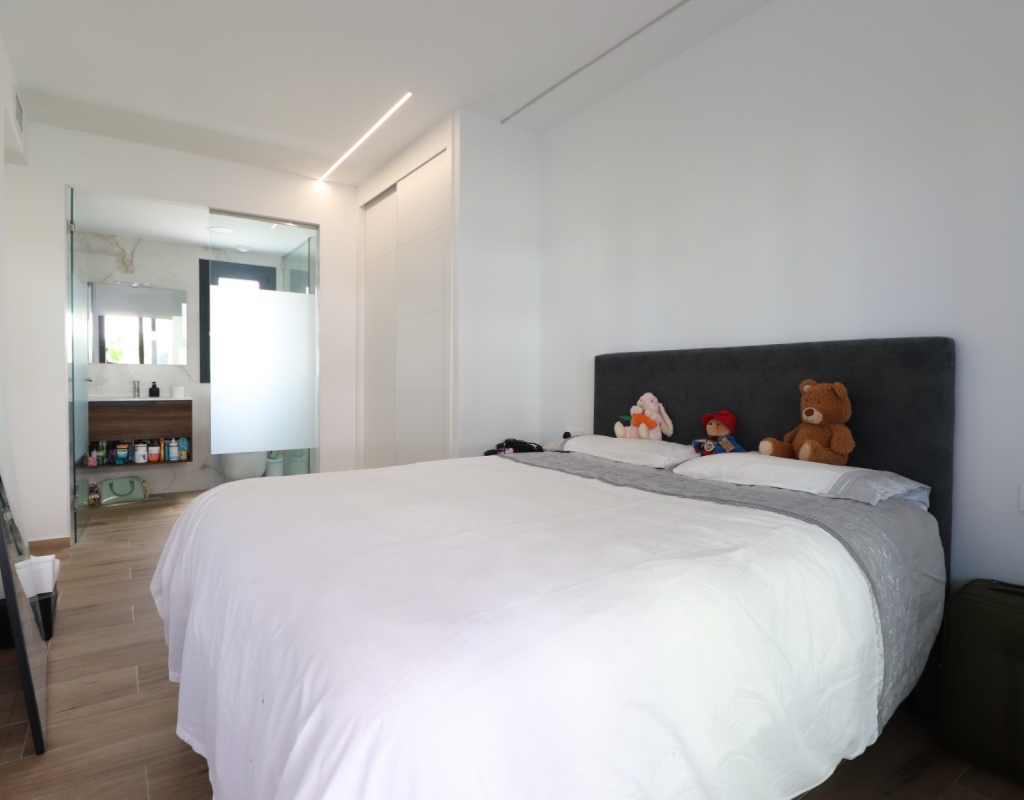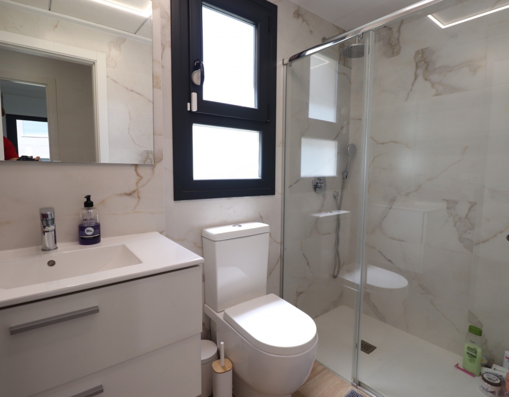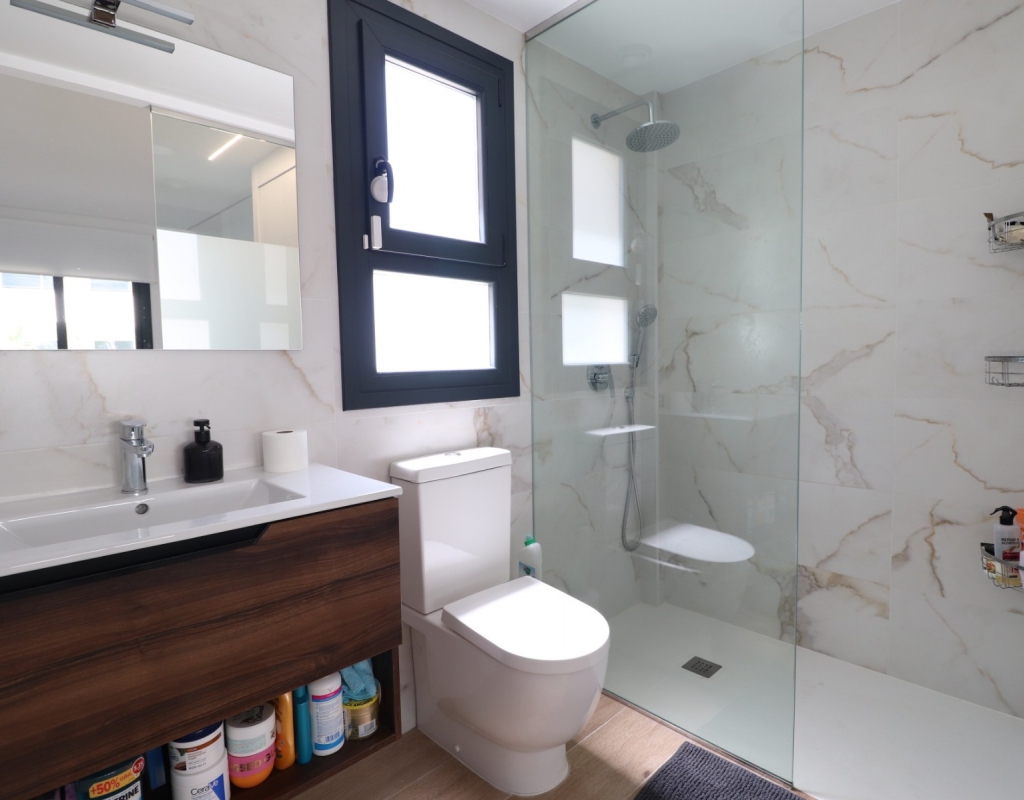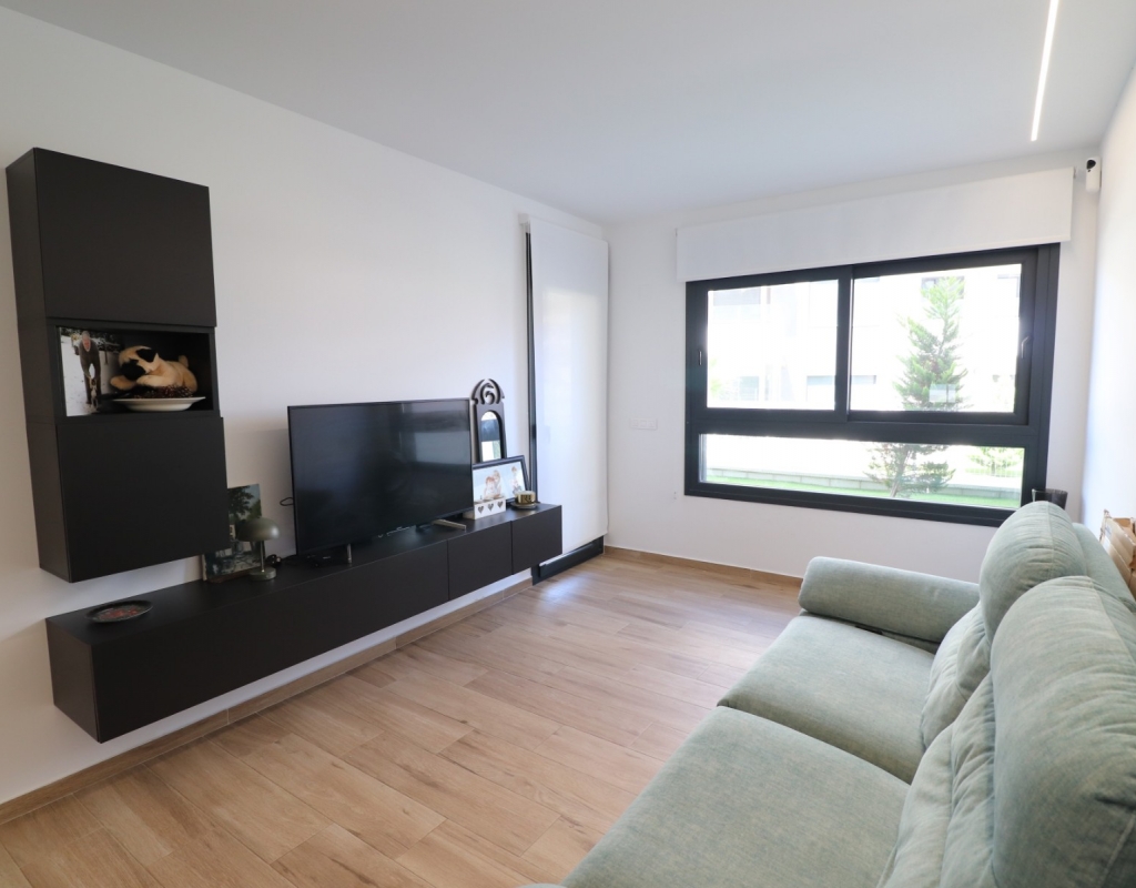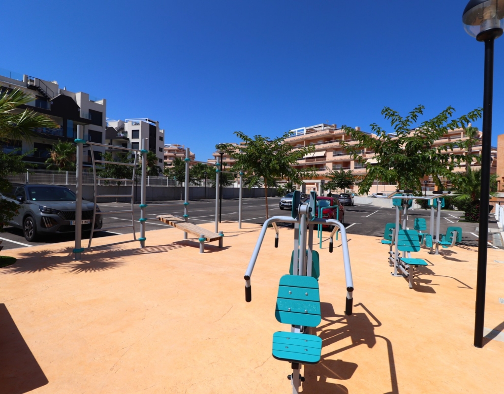 This Modern, Two Bedroom, Ground Floor Corner Apartment in Villamartin is located within a highly sought-after, beautifully maintained gated community, just a 10–15 minute walk to a variety of bars, restaurants, and Greenlands Mini Golf. Villamartin Golf Course is only a few minutes’ drive away, with the popular La Zenia Boulevard shopping centre reachable in 10 minutes and the stunning beaches of the Orihuela Costa in 10 minutes also. This stylish apartment features a bright, open-plan living space with a fitted, modern and classy kitchen, complemented by a separate utility area. Both double bedrooms have access to the terrace and built-in storage, with two sleek shower rooms, including one en suite to the master. The property also boasts a private garden area laid with low-maintenance astro turf, ideal for relaxing or entertaining. Additional features include ducted air conditioning throughout, an allocated parking space, and access to a lovely communal pool — all located in the heart of Costa Blanca South.