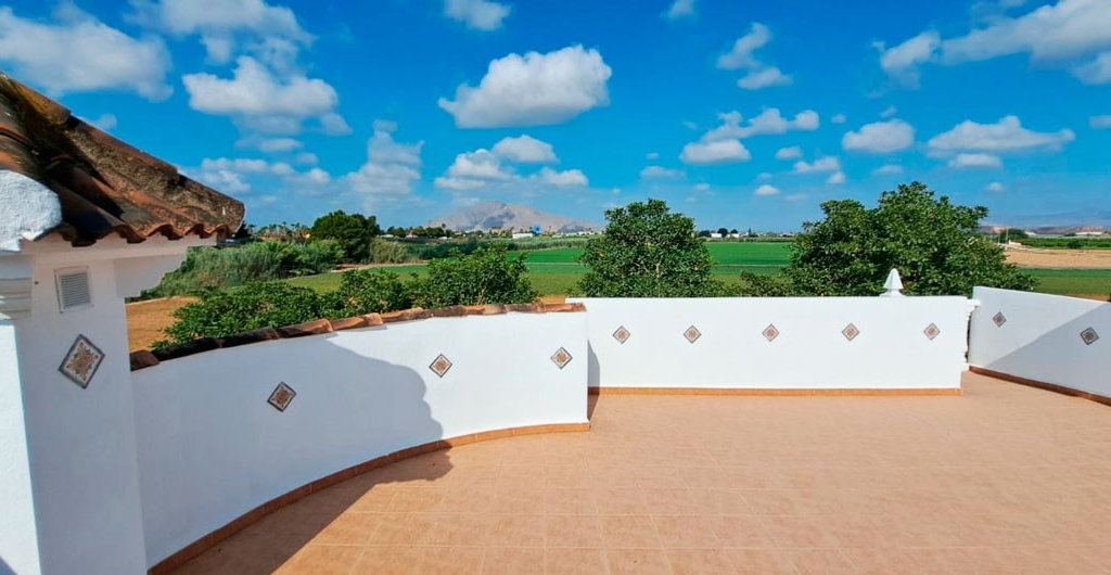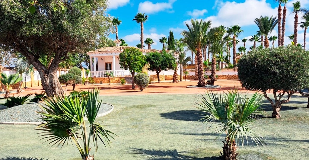 This South Facing, Three Bedroom, Key Ready, Detached Country Villa in Catral is located in a peaceful countryside setting, just a 5 minute drive from the amenities of Catral town. For golf lovers and beachgoers, both are reachable within approximately 20 minutes, offering the perfect balance of rural charm and coastal convenience. Set on a beautifully landscaped and fully walled 1,956m² plot, this 140m² one-level villa features a charming curved and covered entrance terrace leading into a spacious living area. The open-plan fitted kitchen includes a breakfast bar and has direct access to the garden. There are three double bedrooms, all with built-in wardrobes, including a master with en suite shower room, plus a family bathroom. An external staircase leads up to the private solarium, which offers incredible panoramic views over the surrounding countryside to the mountains. The grounds are dotted with established palm and other mature trees, and there's ample space for installing a private pool. Off-road parking is also available within the plot. A fantastic opportunity for those seeking space, privacy, and natural surroundings—yet with excellent access to the amenities of the Costa Blanca South.
