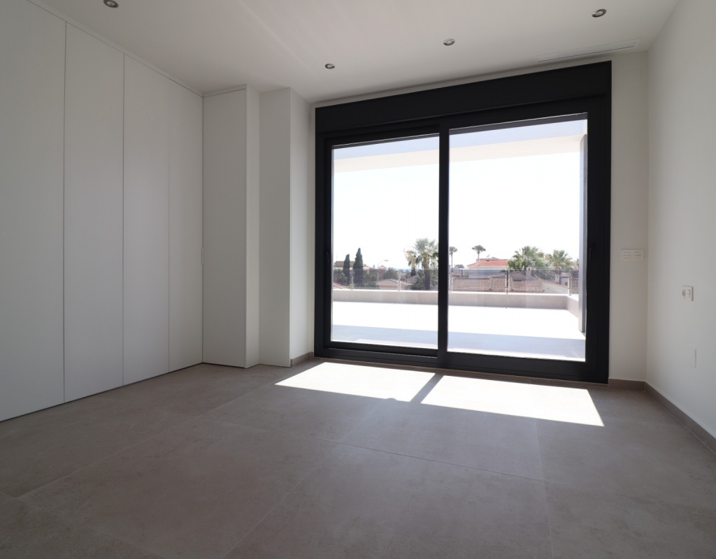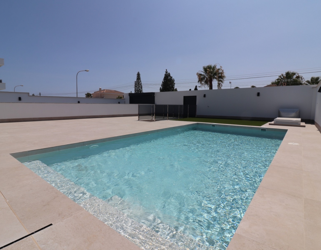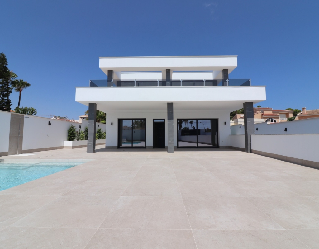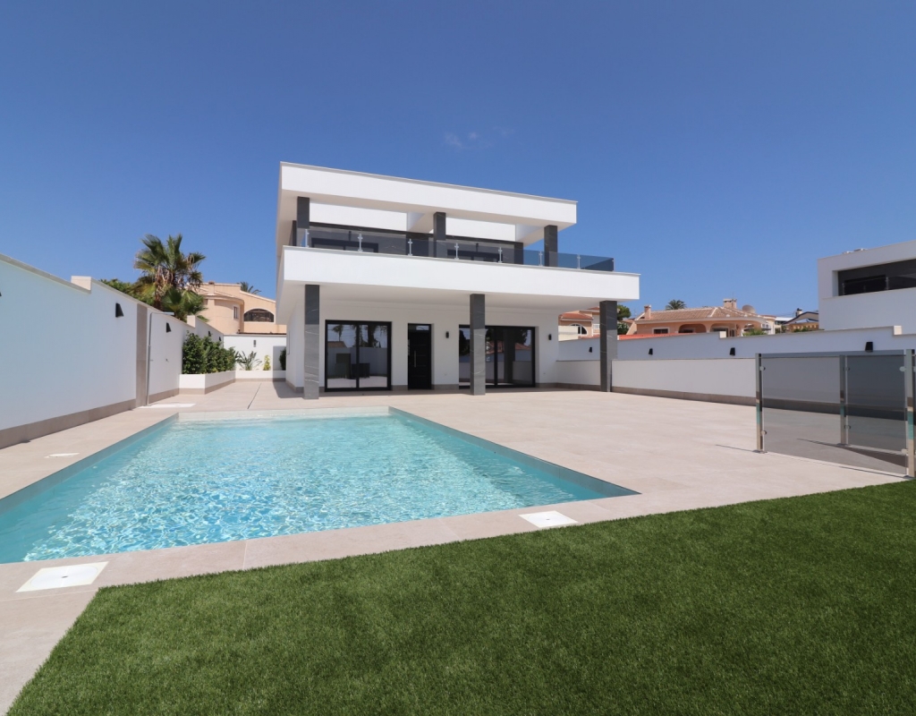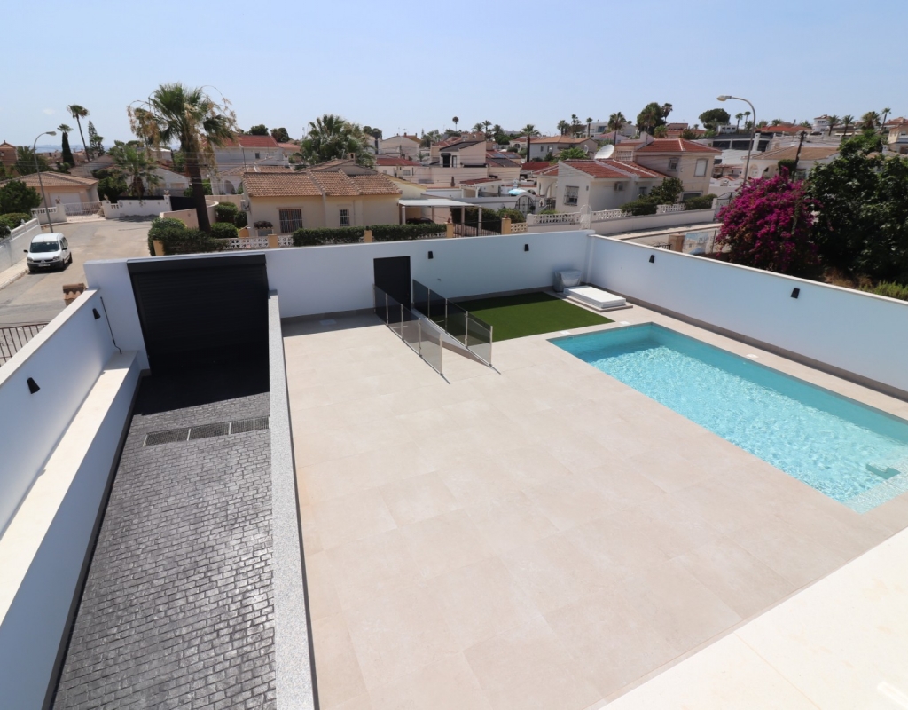 This Mesmeric, South West Facing, Key Ready, Three Bedroom, Detached Villa in Ciudad Quesada, is located in a highly sought-after area of the Costa Blanca South, within approximately a 7-minute walk to a selection of bars and restaurants, 20 minutes on foot to the bustling Quesada high street, and a short 5-minute drive to La Marquesa Golf Course. The stunning beaches of Guardamar can be reached in around 10 minutes, making this an exceptional location for both lifestyle and convenience. A true one-off opportunity, this exquisite luxury villa boasts an impressive build size of 311m² across three floors, set on a beautifully landscaped 550m² plot. Built to the highest specifications, the property offers underfloor heating throughout with individual room controls, integrated air conditioning, and pre-installations for solar panels (under build and roof) as well as a pre-installation for an electric car charging point. The ground floor welcomes you with a fantastic covered entrance terrace and a spacious open-plan living area, filled with natural light with double sliding glazed doors that open onto the front garden. A sleek, modern fitted kitchen and separate utility room provide both style and practicality. Also on this level is a generous double bedroom, with double glazed sliding doors to the garden and an en-suite shower room, along with a separate guest cloakroom. Upstairs, two further double bedrooms each benefit from their own en-suite shower rooms and direct access to an extensive sun-drenched terrace – perfect for relaxing or entertaining. The landscaped plot is surrounded by a secure wall for privacy and features a stunning 8 x 4 private pool, raised planted borders to one side and rear, raised area laid with artificial grass, and extensive tiling for ease of maintenance. A solid electric gate leads to a private driveway that descends to the vast under build – with space to park two or more vehicles or potential to be converted into additional living accommodation. The under build also benefits from internal access. This property represents unmatched quality, design, and value – a luxury home where attention to detail and modern living converge. Specifications, quality, and price will absolutely not be beaten.