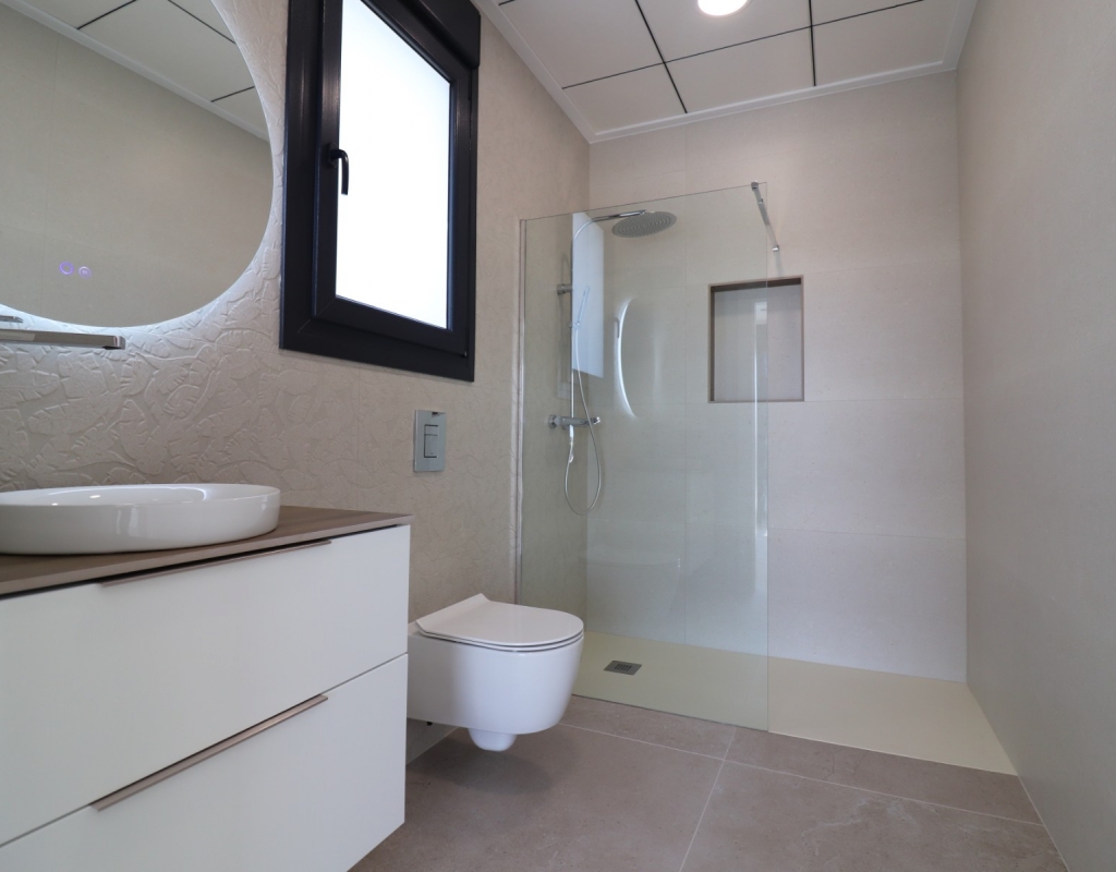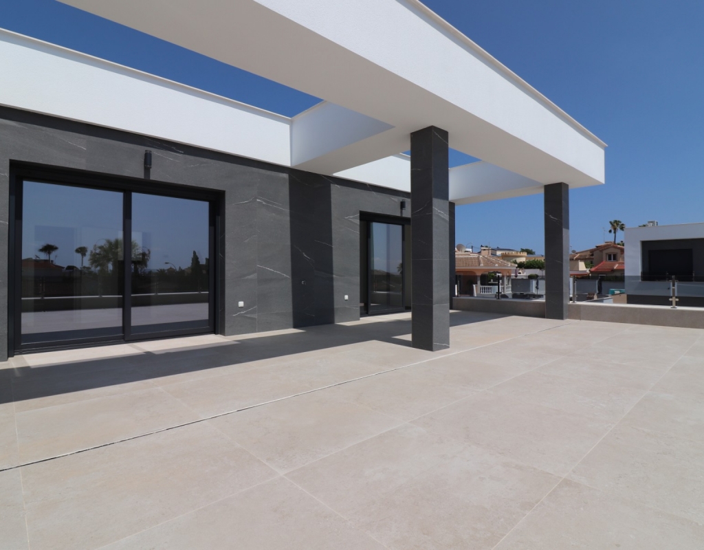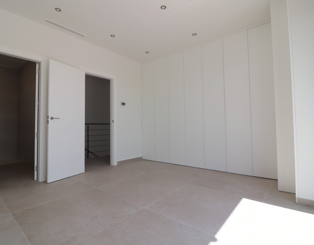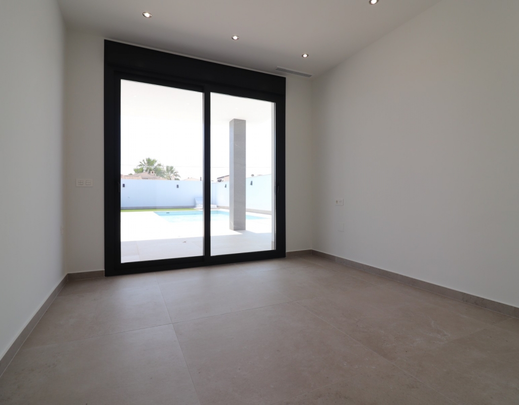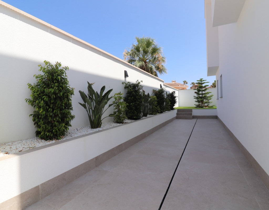 This Mesmeric, South West Facing, Key Ready, Three Bedroom, Detached Villa in Ciudad Quesada, is located in a highly sought-after area of the Costa Blanca South, within approximately a 7-minute walk to a selection of bars and restaurants, 20 minutes on foot to the bustling Quesada high street, and a short 5-minute drive to La Marquesa Golf Course. The stunning beaches of Guardamar can be reached in around 10 minutes, making this an exceptional location for both lifestyle and convenience. A true one-off opportunity, this exquisite luxury villa boasts an impressive build size of 311m² across three floors, set on a beautifully landscaped 550m² plot. Built to the highest specifications, the property offers underfloor heating throughout with individual room controls, integrated air conditioning, and pre-installations for solar panels (under build and roof) as well as a pre-installation for an electric car charging point. The ground floor welcomes you with a fantastic covered entrance terrace and a spacious open-plan living area, filled with natural light with double sliding glazed doors that open onto the front garden. A sleek, modern fitted kitchen and separate utility room provide both style and practicality. Also on this level is a generous double bedroom, with double glazed sliding doors to the garden and an en-suite shower room, along with a separate guest cloakroom. Upstairs, two further double bedrooms each benefit from their own en-suite shower rooms and direct access to an extensive sun-drenched terrace – perfect for relaxing or entertaining. The landscaped plot is surrounded by a secure wall for privacy and features a stunning 8 x 4 private pool, raised planted borders to one side and rear, raised area laid with artificial grass, and extensive tiling for ease of maintenance. A solid electric gate leads to a private driveway that descends to the vast under build – with space to park two or more vehicles or potential to be converted into additional living accommodation. The under build also benefits from internal access. This property represents unmatched quality, design, and value – a luxury home where attention to detail and modern living converge. Specifications, quality, and price will absolutely not be beaten.