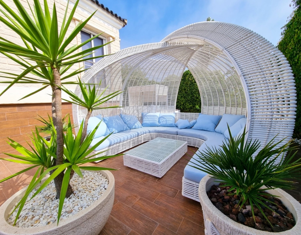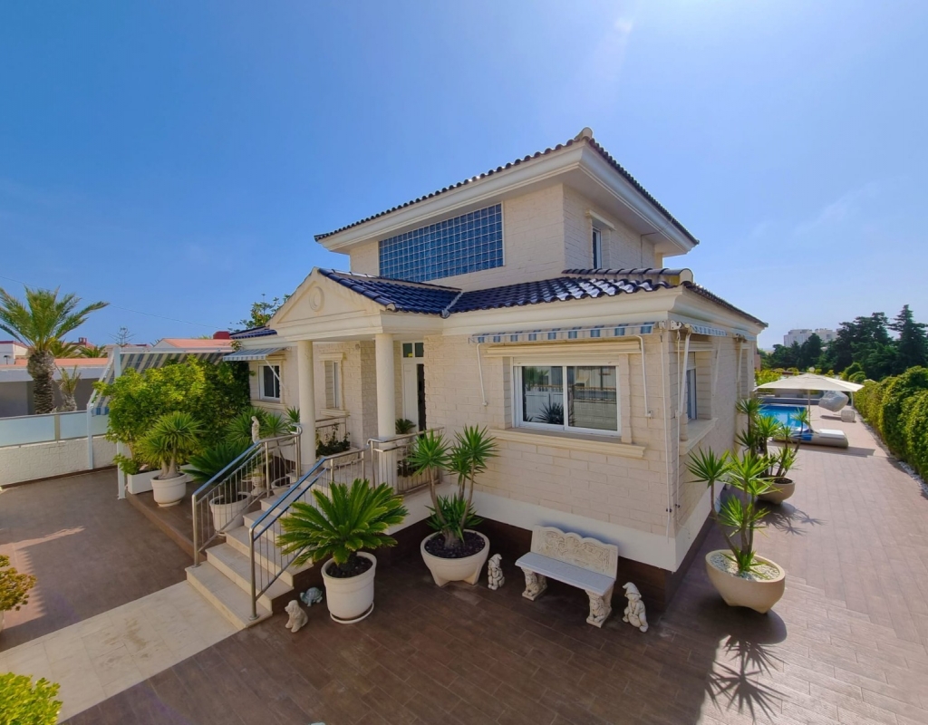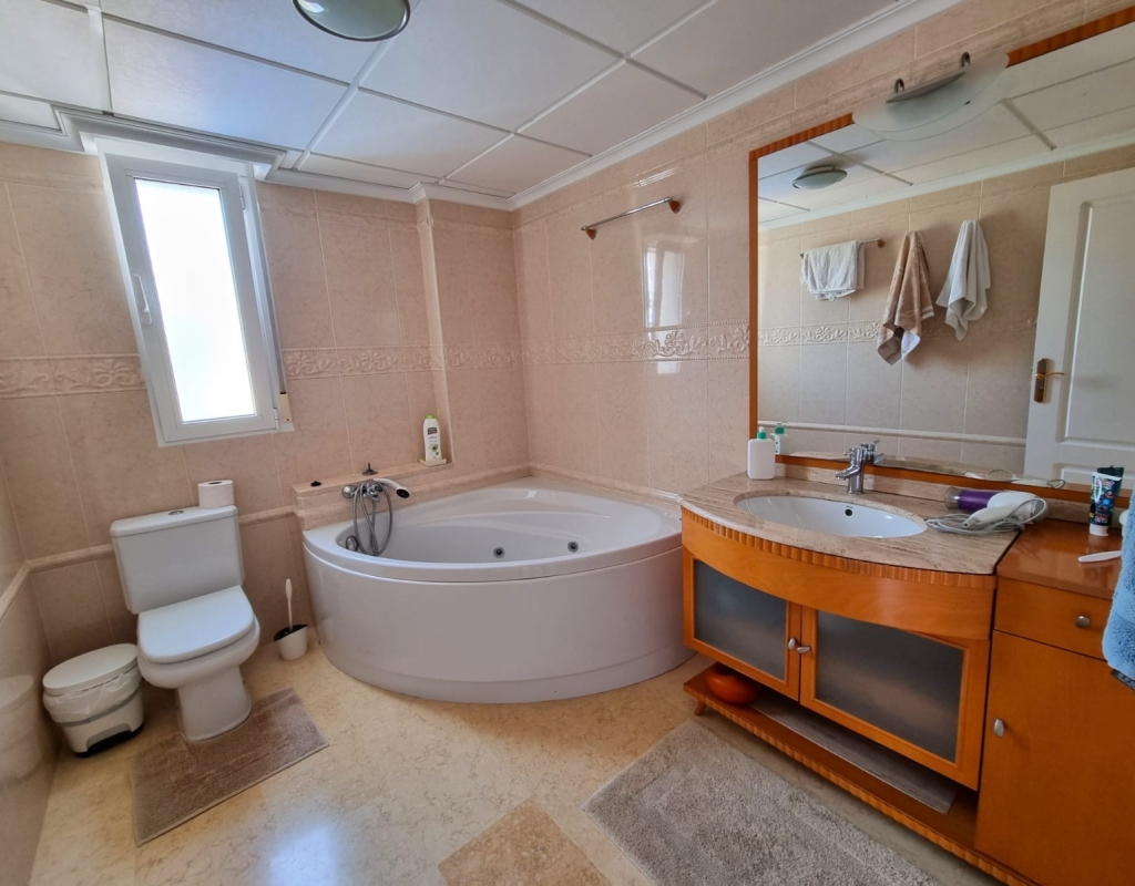 This exceptional villa presents a rare chance to own a spacious and elegant home in one of Torrevieja’s most desirable neighborhoods. Spanning three levels, the property features expansive living areas, panoramic views, and luxurious amenities crafted for comfort and leisure. Interior Layout Main Entrance Level: This floor includes three bedrooms, two bathrooms, a guest WC, and a shower room. A bright and airy living room and a fully equipped kitchen complete the space. Both the living area and one of the bedrooms open directly onto a large terrace—ideal for enjoying the outdoors. Upper Floor: Here you'll find two more bedrooms, an additional bathroom, and a charming balcony that showcases stunning views of the Mediterranean Sea and the surrounding area. Basement Level: The lower floor houses a spacious common room, a walk-in closet (which can be converted into an extra bedroom), a laundry area, and a luxurious private spa zone. This includes a Finnish sauna, Turkish steam room, and modern shower facilities. Outdoor Space Set on a generous plot, the villa offers a variety of outdoor spaces for entertainment and relaxation. Features include: A private swimming pool with a sun-drenched lounging area Ample parking for several vehicles Access to a shared garden and tennis court within the residential community Prime Location Located in a vibrant and well-connected area, the villa is surrounded by a wide selection of restaurants, bars, shops, and essential services. The famous La Mata Beach is just a short stroll away, offering golden sands and inviting beach bars where you can fully embrace the Mediterranean lifestyle. Lifestyle & Amenities Torrevieja is a lively coastal city that offers year-round entertainment and activities for all ages, including: Go-karting, bowling, cinemas, and shopping centers Several top-quality golf courses in the nearby region A rich culinary scene with a variety of excellent restaurants and bars A scenic harbor and a dynamic city center Your Dream Home Awaits Offering a blend of space, style, and a prime location, this villa is the perfect choice for a permanent residence or a luxurious holiday escape in the heart of Torrevieja.