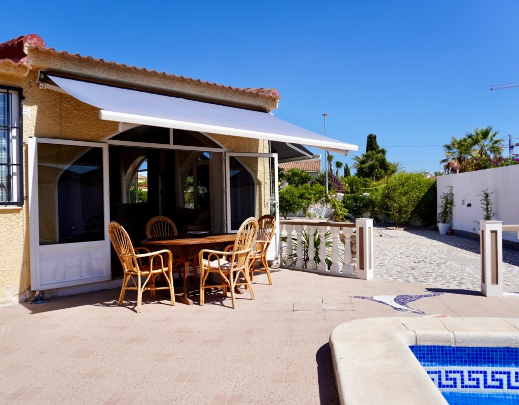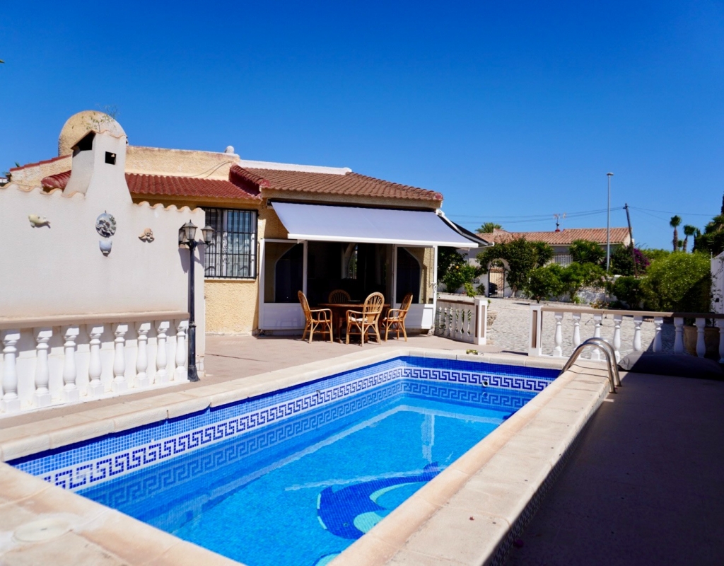 Renovated 5-Bedroom Villa with Private Pool and Garage in Quesada Town Centre Situated in a prime location right in the centre of Ciudad Quesada, this spacious 5-bedroom, 2-bathroom detached villa offers comfort, privacy, and convenience — all on a generous 800 m² south-east facing plot. The property is fully furnished and features a private swimming pool, a garage, multiple outdoor living areas, and has been recently renovated, making it an excellent move-in-ready home for permanent living or holidays. Property Features: 5 Bedrooms 2 Bathrooms Built Area: 210 m² Plot Size: 800 m² Private Pool Garage and additional off-street parking Solarium with open views Air Conditioning Units throughout Furnished Covered Terrace with awning for shade Barbecue Area Storage Room South-East Facing – ideal for morning and midday sun Located in a quiet yet central area, walking distance to shops, restaurants, and all local amenities This property combines space, location, and practicality — ideal for families or anyone looking for a larger home in one of the most desirable areas of Quesada. With a well-maintained plot and ample outdoor space, it’s perfect for enjoying the Mediterranean climate all year round. Viewings by Appointment Contact us today for more information or to arrange a viewing.