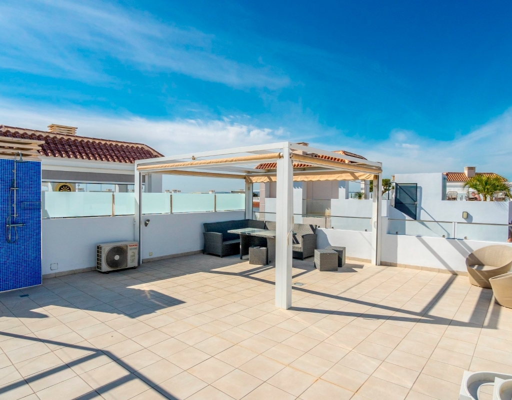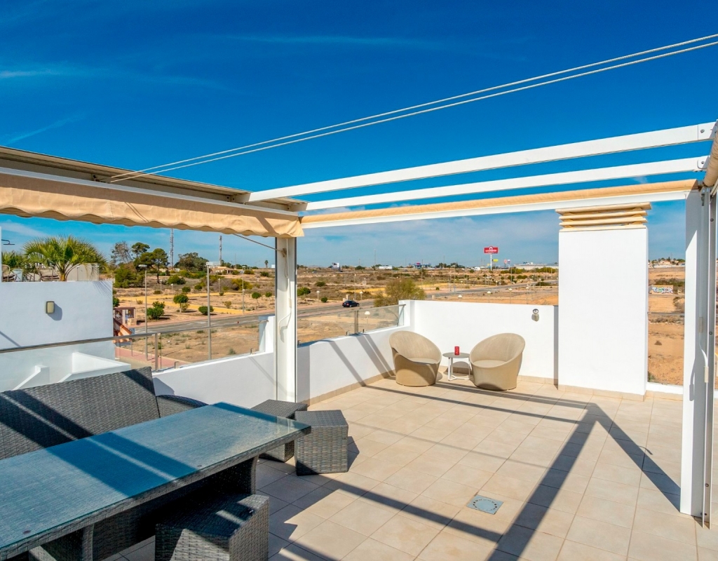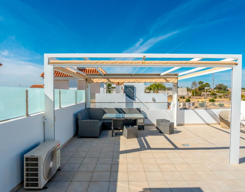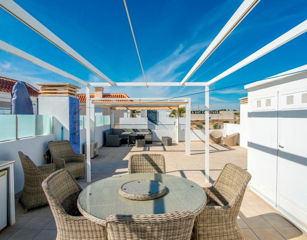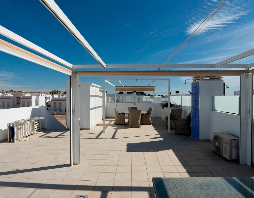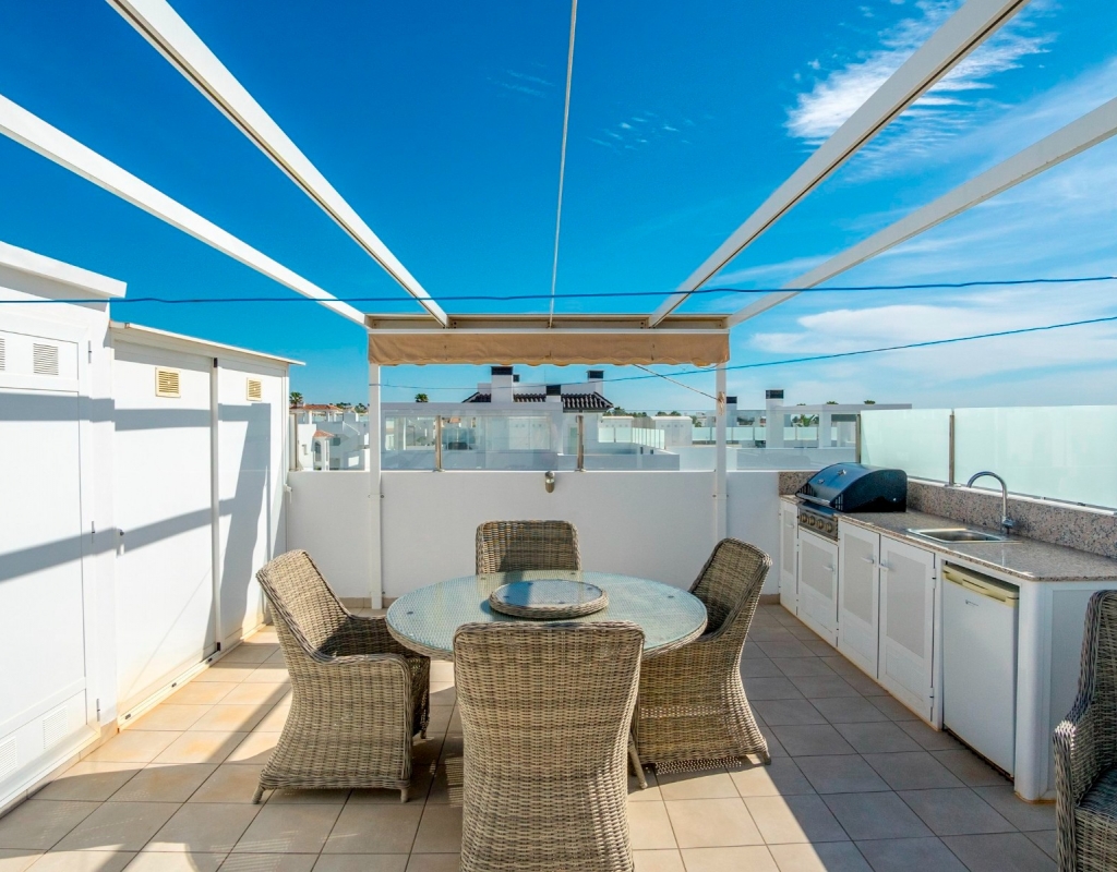 Discover the allure of penthouse living with this delightful two-bedroom, two-bathroom residence boasting 85 square meters of comfortable living space.Nestled near the heart of Ciudad Quesada, this property offers a cozy retreat with all the essentials for a relaxed lifestyle.Upon entering, you'll be greeted by an inviting open-plan layout seamlessly connecting the kitchen, living, and dining areas.The kitchen features modern appliances and overlooks the welcoming living space, ideal for casual gatherings or quiet evenings at home.Step outside onto the spacious terrace and soak in the picturesque views of the pool and surrounding area, including stunning sunsets that paint the sky in hues of orange and pink.This outdoor space is perfect for enjoying leisurely meals or simply unwinding with a good book in the fresh air.Ascend to the expansive private roof terrace, where you'll find multiple seating areas offering a serene setting for outdoor relaxation.A mounted pergola provides shade on sunny days, while an outdoor kitchen with a barbecue allows for casual outdoor dining with friends and family.Residents of this charming community have access to beautiful communal areas featuring palm trees, a refreshing swimming pool, and lush greenery, creating a peaceful environment for leisurely strolls or afternoon swims.There is private parking outside the apartment and the beautiful beaches of Guardamar del Segura are a quick 10 minute drive away.This penthouse is sold fully furnished, ready to move right into, whether you're looking for a permanent residence or a holiday getaway.Located just a short stroll from restaurants, amenities, and shops, this property offers convenience without sacrificing tranquility.Don't miss out on this opportunity to own a piece of paradise in Ciudad Quesada.Contact us today to schedule a viewing and experience the charm of penthouse living on the Costa Blanca