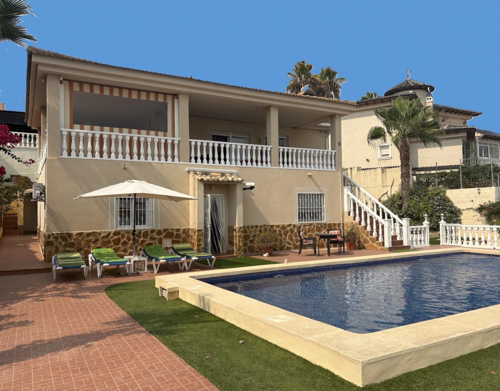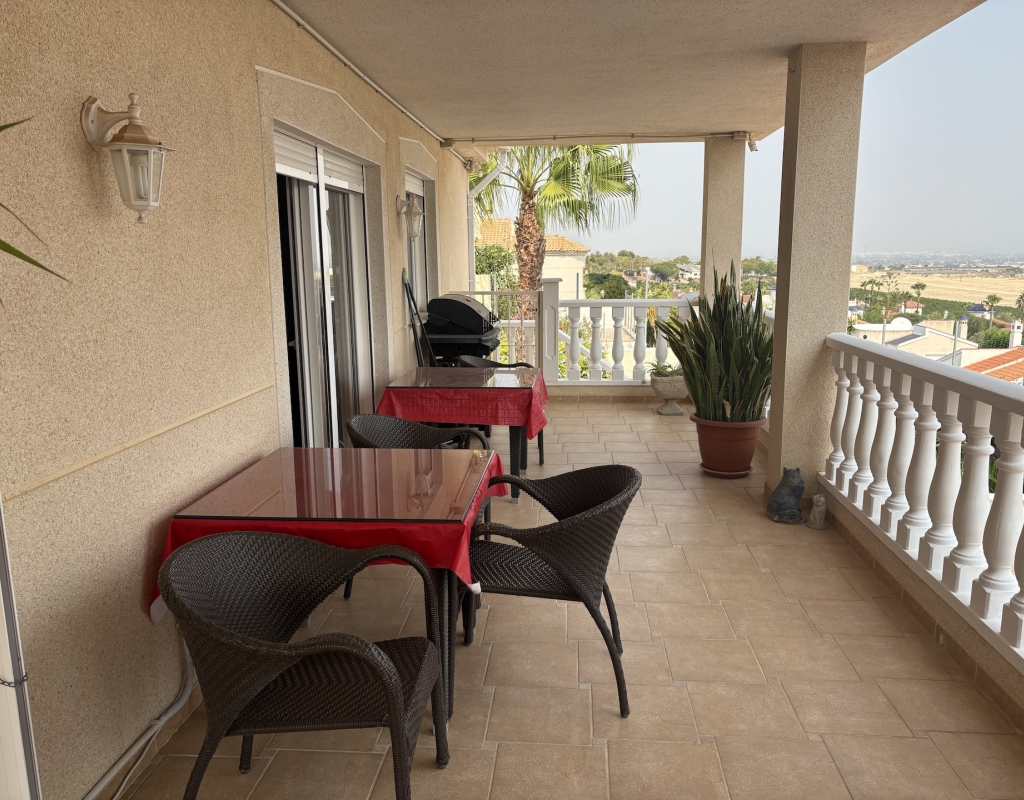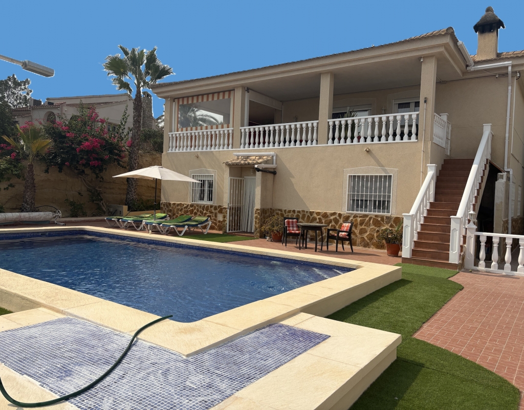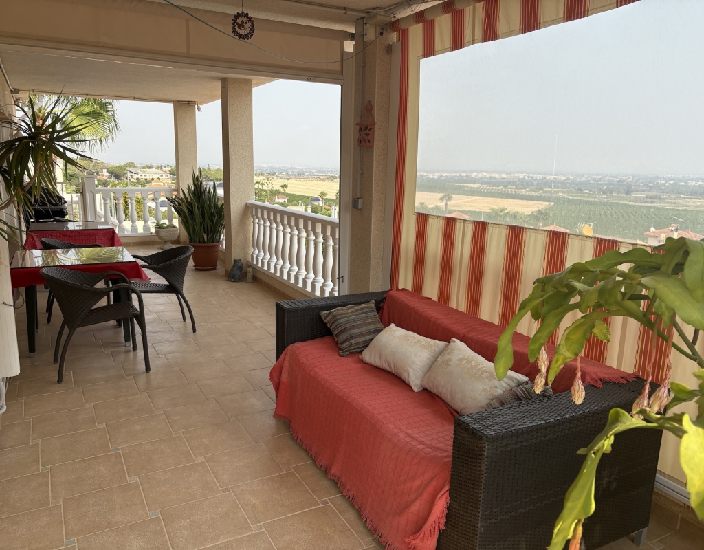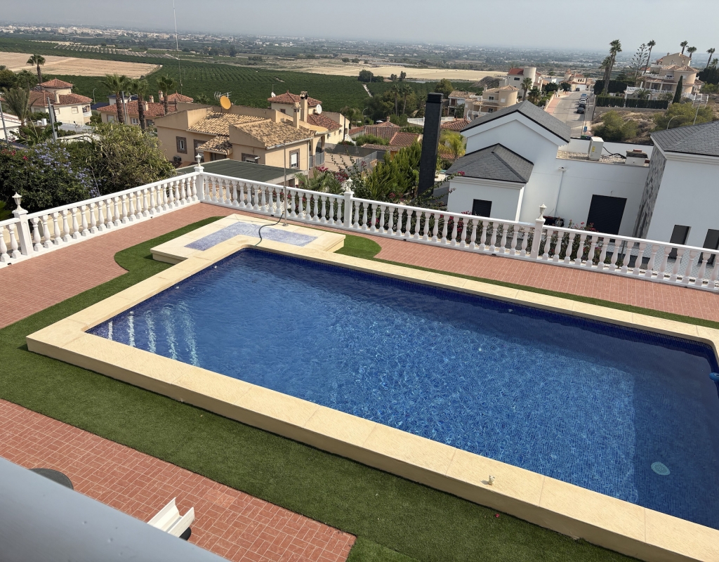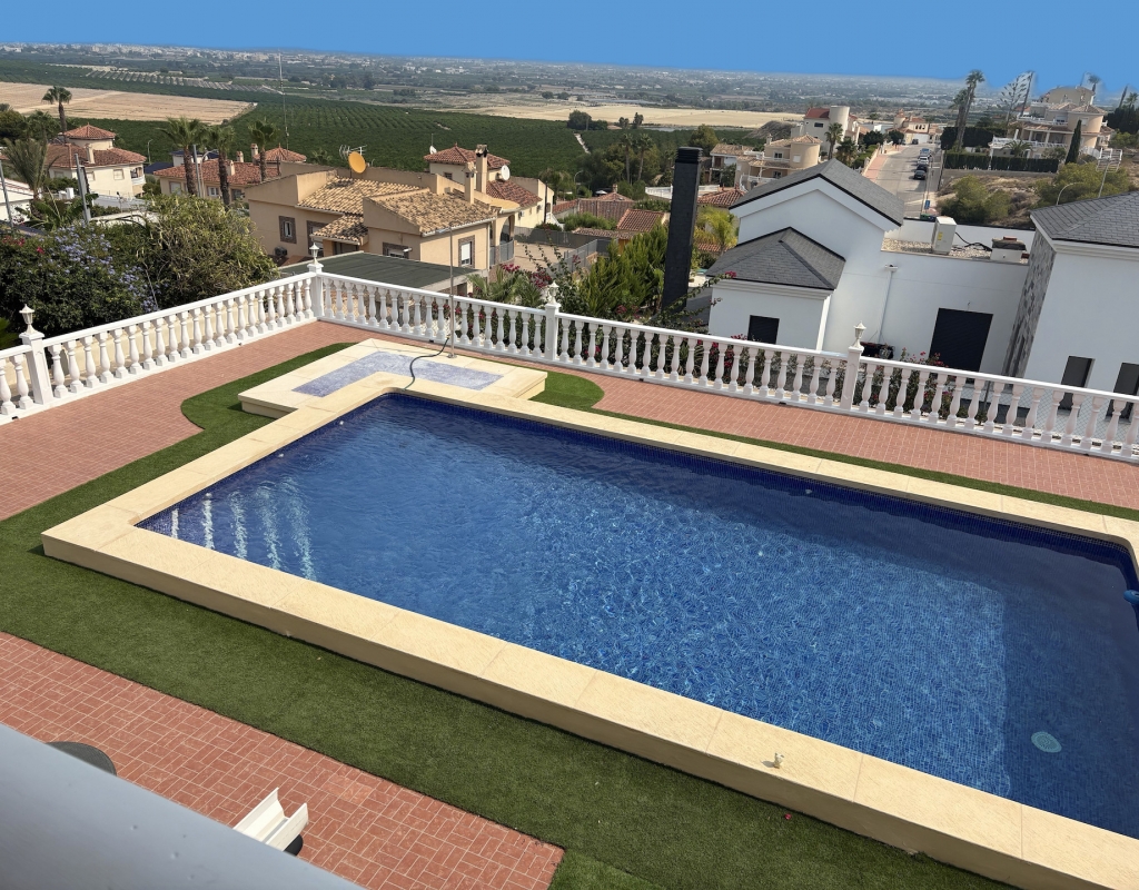 For sale: This attractive detached villa is a rare find in the desirable area of Lomas de Juliana on the outskirts of Algorfa. Offering a generous internal space of 200 m2, the home features three spacious bedrooms and two well equipped bathrooms, making it ideal for family living or those who love to entertain guests. The villa sits on a large plot, providing plenty of outdoor space for relaxation, gardening, alfresco dining. Enjoy a relaxing swim in the private pool, whilst taking in the stunning scenic views.. Its east-facing orientation ensures plenty of natural light throughout the day, creating a bright and welcoming atmosphere inside. The property is partially furnished, allowing you to move in with ease and add your own touches over time. Algorfa is well-known for its peaceful surroundings and friendly community. The area is popular for its golf courses, beautiful landscapes, and convenient access to local amenities such as shops, restaurants, and sports facilities. Despite its tranquil setting, Algorfa offers easy connections to nearby towns and beautiful beaches, perfect for both permanent living and holidays. This resale villa is a great opportunity for those looking for a comfortable home with generous outdoor space. For more information or to arrange a viewing, contact us today.