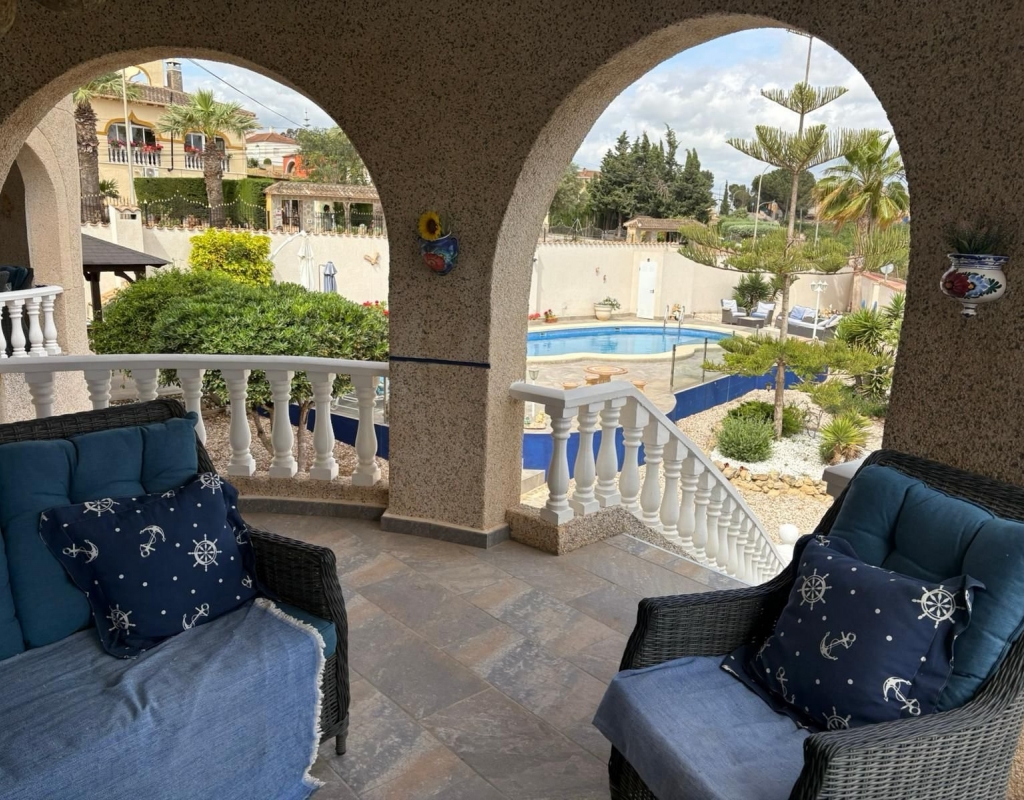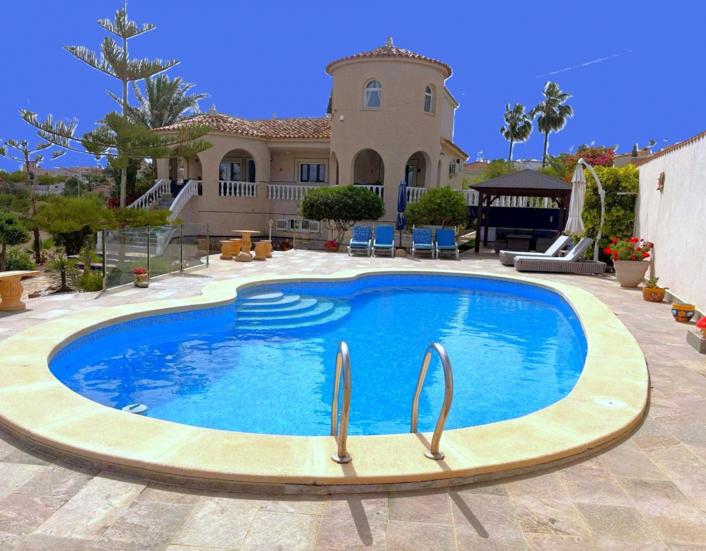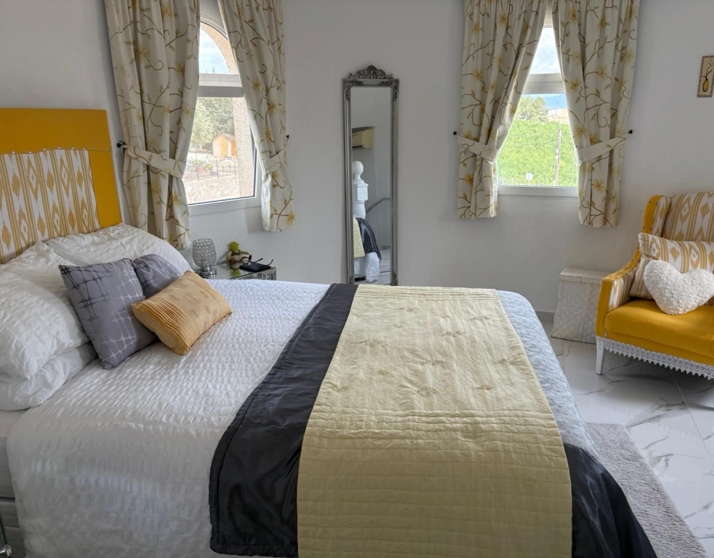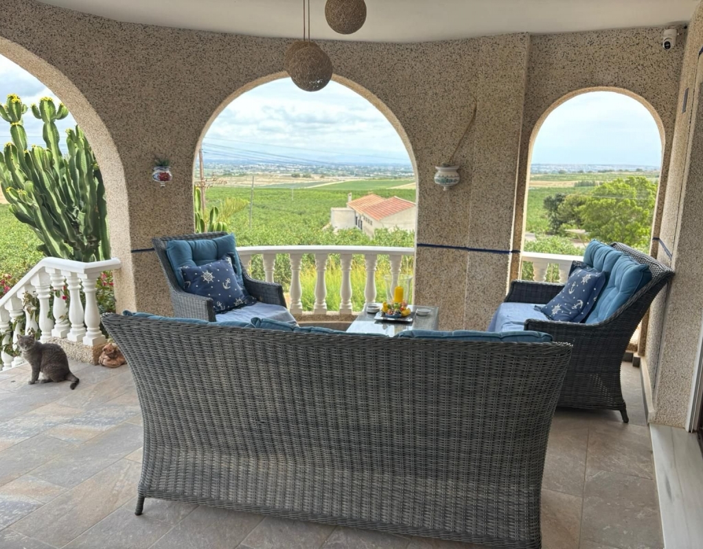 For sale is a stunning detached villa located in the tranquil area of Algorfa. This beautiful resale property boasts a generous internal space of 375 square meters, featuring five spacious bedrooms and four modern bathrooms, perfect for families or those who enjoy entertaining. This villa is situated on a large plot that offers privacy and room for outdoor activities. You will appreciate the fully furnished interior that combines comfort with style. Enjoy the warm climate from your private swimming pool, or take a moment to relax and admire the breathtaking mountain and country views that this location has to offer. Algorfa is known for its welcoming atmosphere and is conveniently close to a variety of amenities, including shops, restaurants, and recreational areas. The surrounding landscape provides a peaceful retreat from the hustle and bustle, making it a perfect place to unwind. Don't miss the chance to own this exceptional property that combines luxury living with natural beauty. For more information, contact us today.