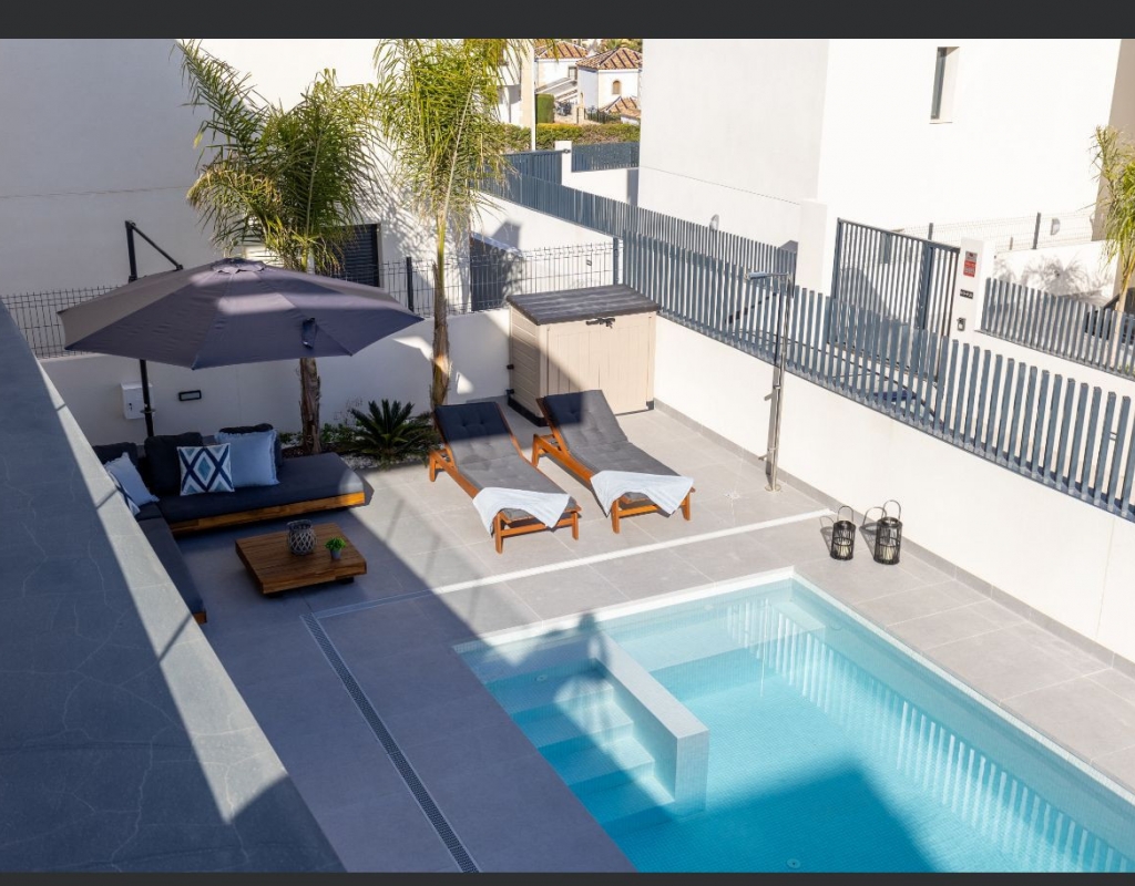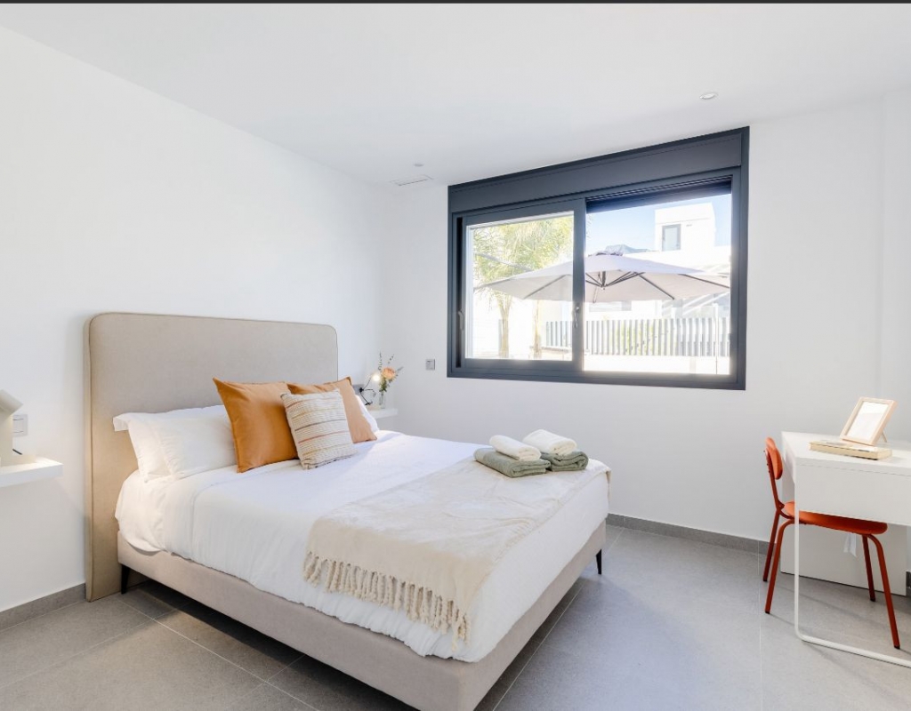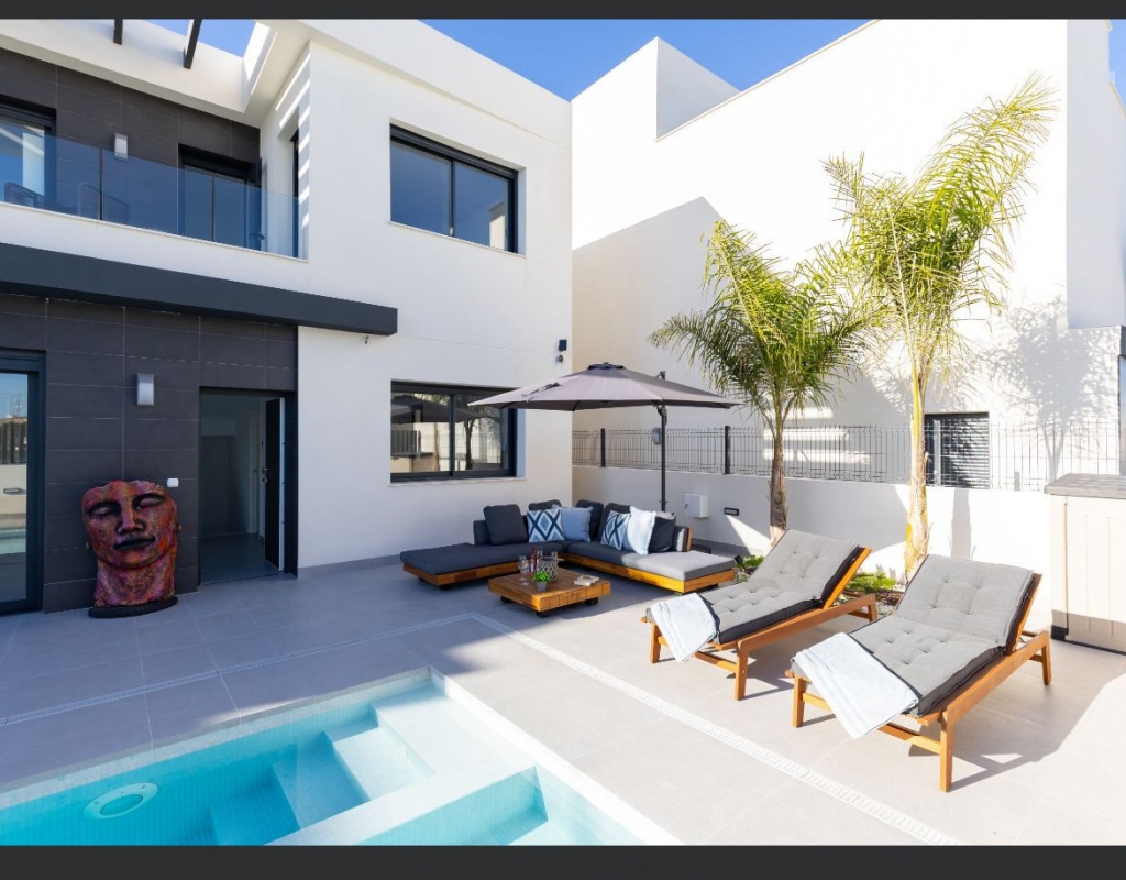 For sale: Very Modern style villa with a spacious internal area of 150m2, located in the sought-after La Finca Golf area of Algorfa. This property offers three comfortable bedrooms and two modern bathrooms, making it ideal for families or those seeking extra space. The villa is unfurnished, giving you the perfect opportunity to design your dream home. Enjoy year-round comfort with a central air conditioning system. Step outside to your own private swimming pool, perfect for relaxing or entertaining guests. The home is close to local amenities, including shops, restaurants, and services, providing everything you need just a short distance away. Extra's include: electric shutters, alarm, private pool, electric gate, garage Algorfa, particularly the La Finca Golf area, is well-known for its tranquil surroundings, beautiful landscapes, and high-quality golf course. The region is popular with residents who value peace and outdoor activities while still wishing to remain close to vibrant towns and beaches. This villa is proudly offered for sale by Orange Casas. Do not miss your chance to enjoy the fantastic lifestyle that La Finca Golf offers. Contact us today for more information or to arrange a viewing.
