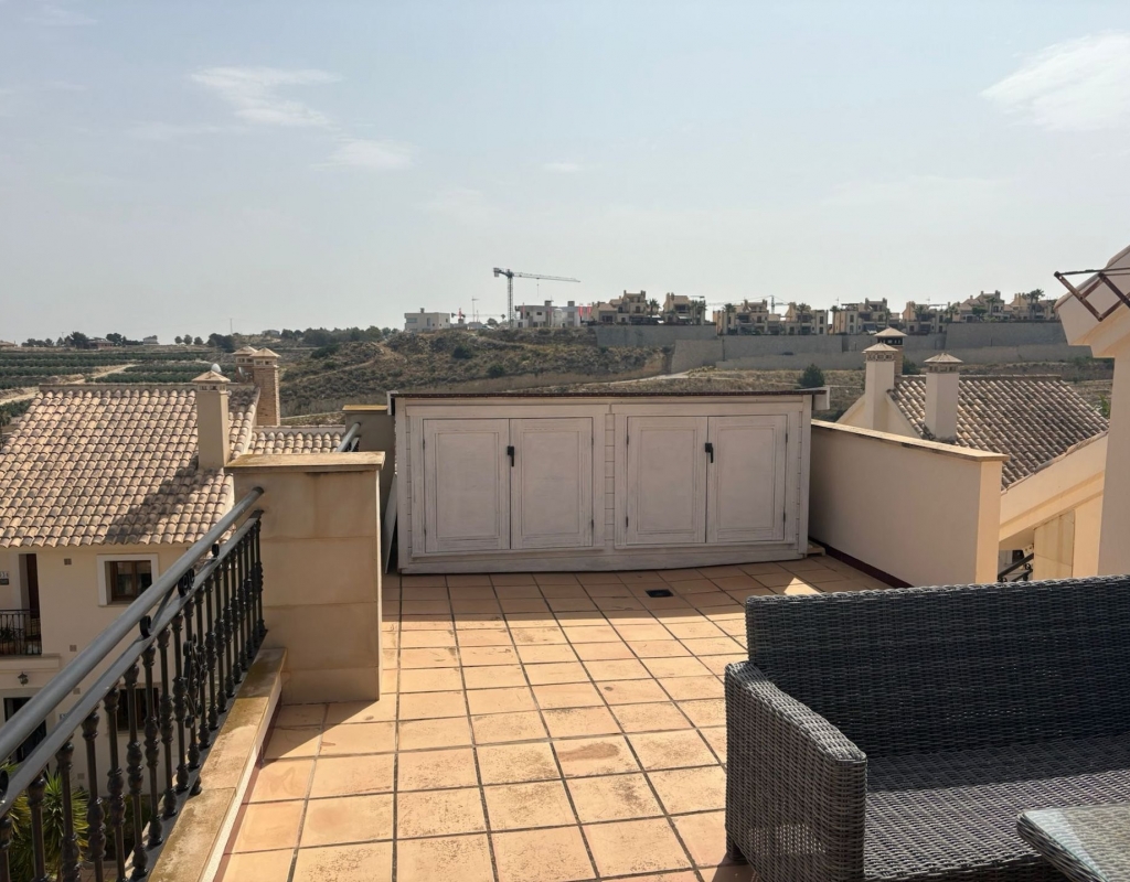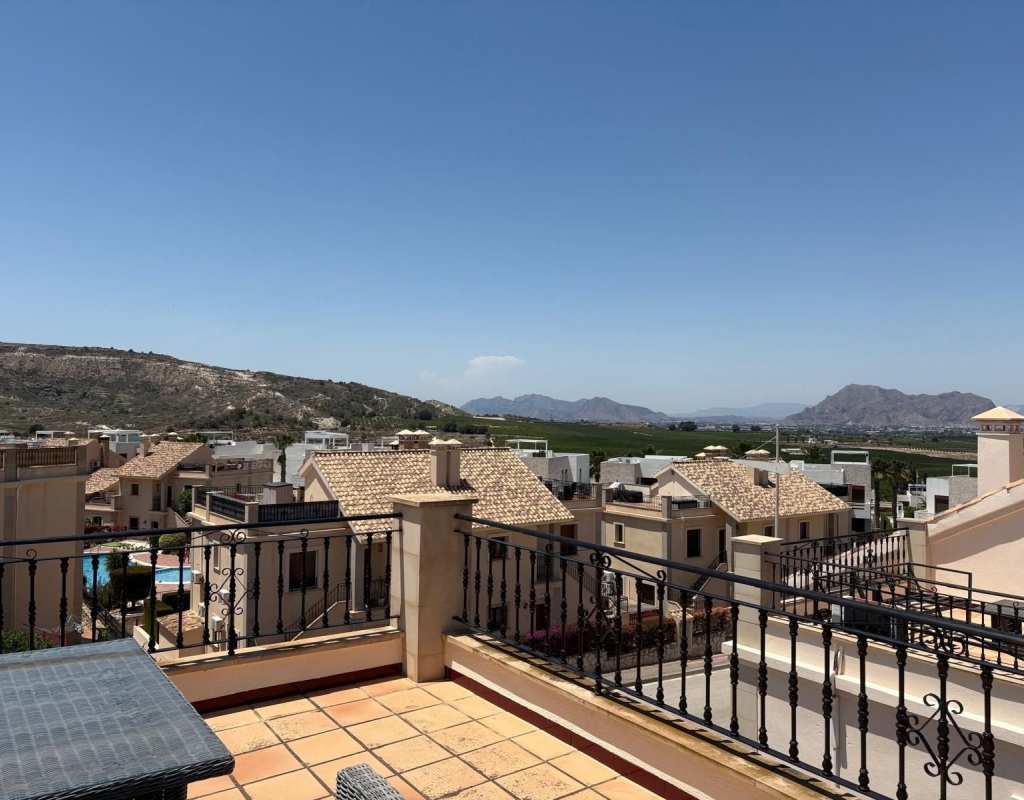 MORE PHOTOS COMING SOON! We are pleased to present this top floor apartment on the La Finca Golf Resort, Algorfa. The property is on the top floor and has an open plan layout with a lounge diner, and American style, fully equipped kitchen. The lounge has a feature fireplace and patio doors that give access to a terrace, perfect for enjoying your morning coffee. Stairs from the terrace lead up to a large private solarium with incredible views of the countryside and mountains. There are two double bedrooms with fitted wardrobes, a family bathroom and en-suite shower room. The apartment is sold fully furnished and ready to move in, making it a ideal full time residence or holiday home that you can enjoy from the day you receive the keys! There are many bars and restaurants, as well as convenience stores, hair dressers, spa hotel and much more. Contact us today to register your interest.