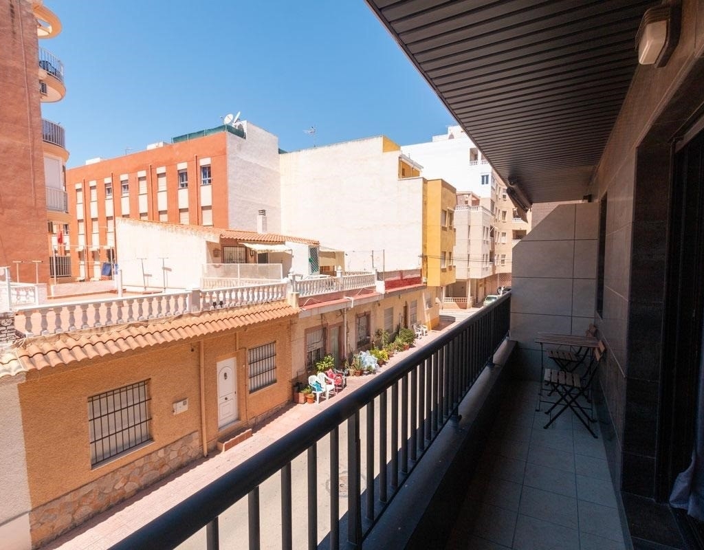 This West Facing, Two Bedroom, First Floor Refurbished Apartment in La Mata, is located between Guardamar del Segura and Torrevieja, just 200 metres from the beautiful long stretch of sandy beach. Perfectly positioned within walking distance to a wide choice of bars, restaurants, a pharmacy, and the lovely beachside popular square, ideal to relax watching the world go by or enjoying something to eat or drink at one of the surrounding eating places, this home offers true coastal convenience and lifestyle. A main chain supermarket is just a 10 minute drive away, with easy access to the N332 coast road, the nearby natural park and lake, and several golf courses within a 20 minute radius. Refurbished and set within a well-maintained building, this apartment comprises a bright lounge/dining room with double sliding glazed doors leading out to a long balcony. The fitted kitchen is accessed directly from the lounge area and has a door to a useful patio area. There are two double bedrooms, both with built-in wardrobes, and a family bathroom. Residents have access to a communal solarium which enjoys a view towards the sea, perfect space for soaking up the sun. Additional features include pre-installed air conditioning and a lift within the block. A great opportunity to own a lovely lock up and leave or even a home to reside in just steps from the beach on the Costa Blanca South.