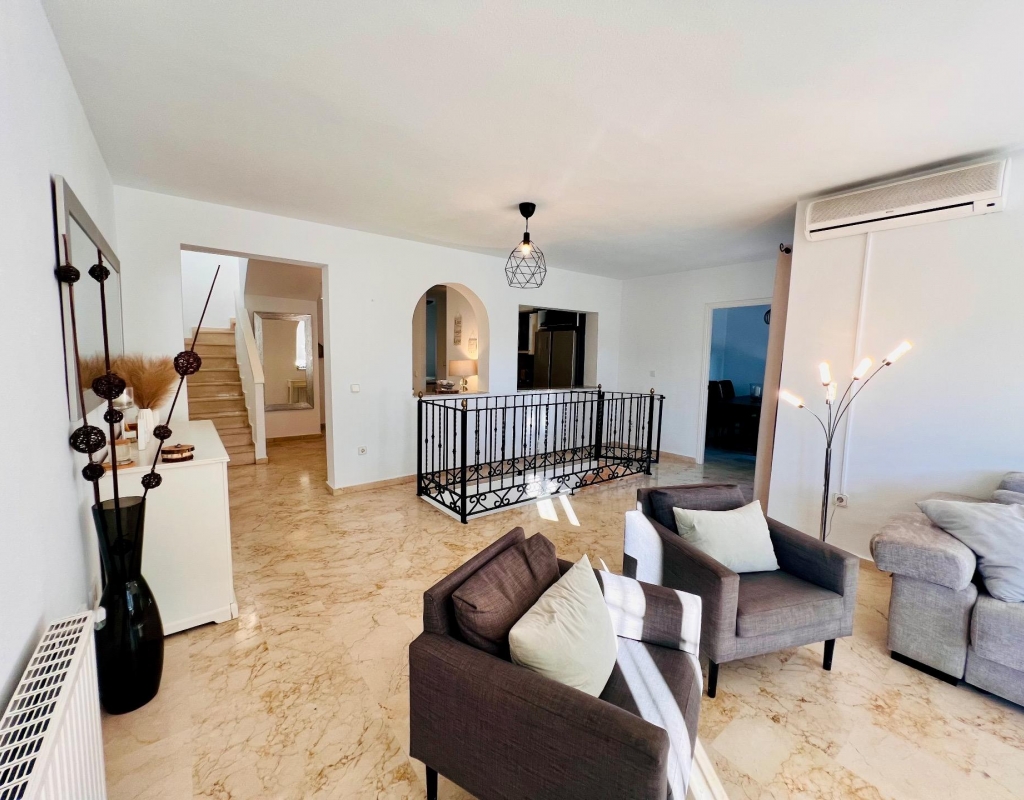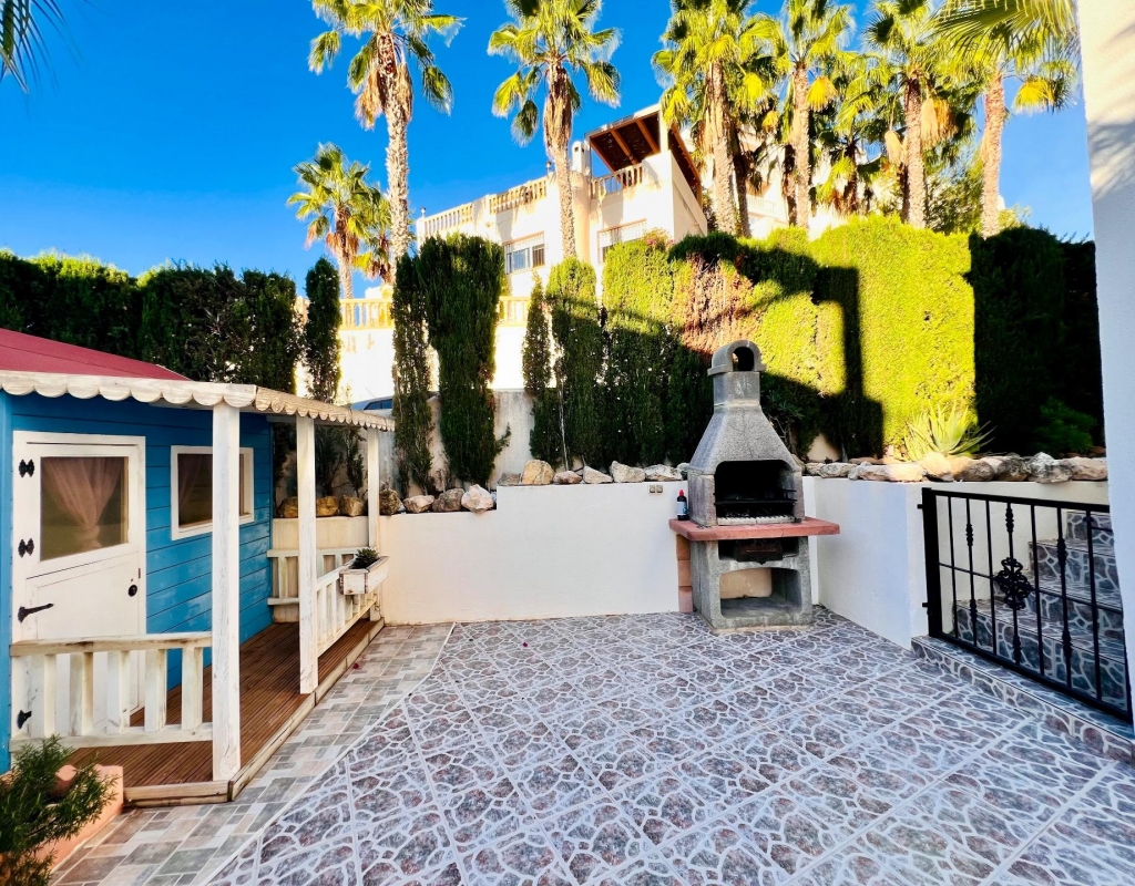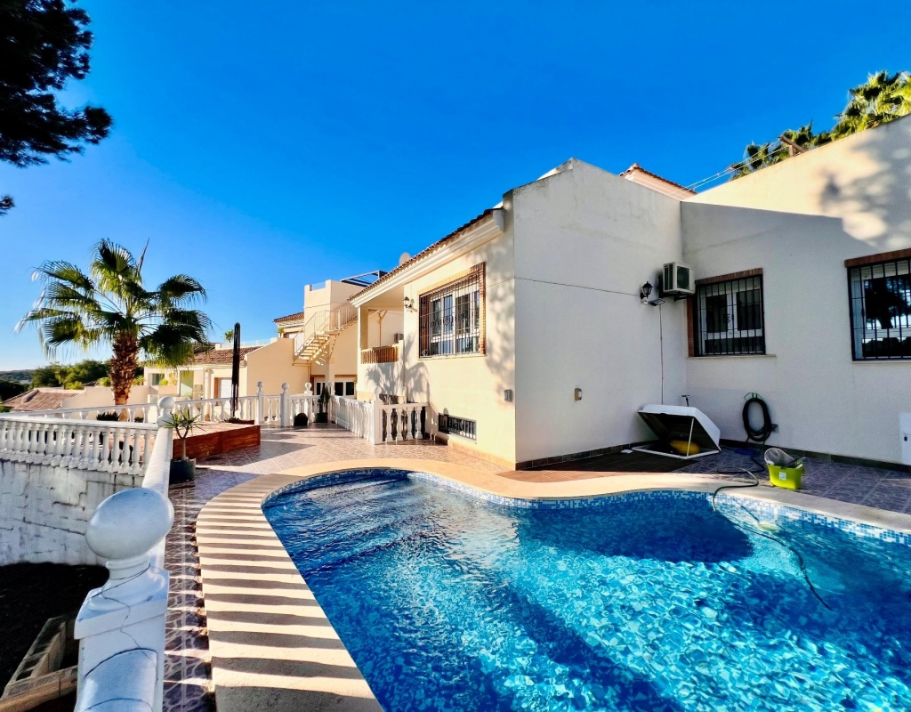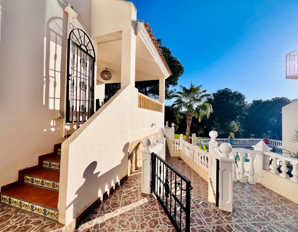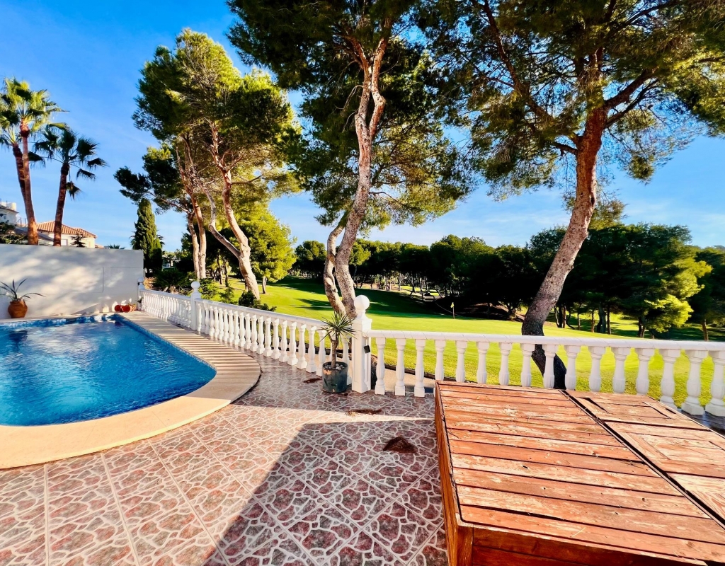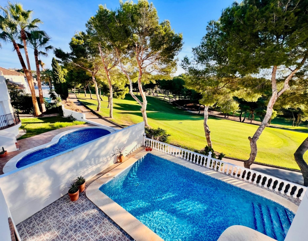 Villa with Private Pool and Spectacular Golf Views – Las Ramblas de Campoamor~~Magnificent detached villa for sale in the prestigious Las Ramblas area, just minutes from Las Ramblas Golf Course and Villamartín. This property stands out for its large private plot, beautiful outdoor areas, and breathtaking panoramic views of the golf course.~~The home is distributed over several levels:~~Main floor: bright living room, dining area, kitchen, two bedrooms, and one full bathroom.~Upper floor: spacious master bedroom with en-suite bathroom and access to a large terrace with open views.~Lower floor (basement): features an additional bedroom, dressing room, bathroom, and a cozy sitting area.~~Outside, the property offers a private swimming pool, barbecue area, and plenty of space to enjoy the Mediterranean climate.~~An ideal property both as a permanent residence or a holiday home, located in a quiet natural setting, yet close to golf courses, amenities, and all essential services.