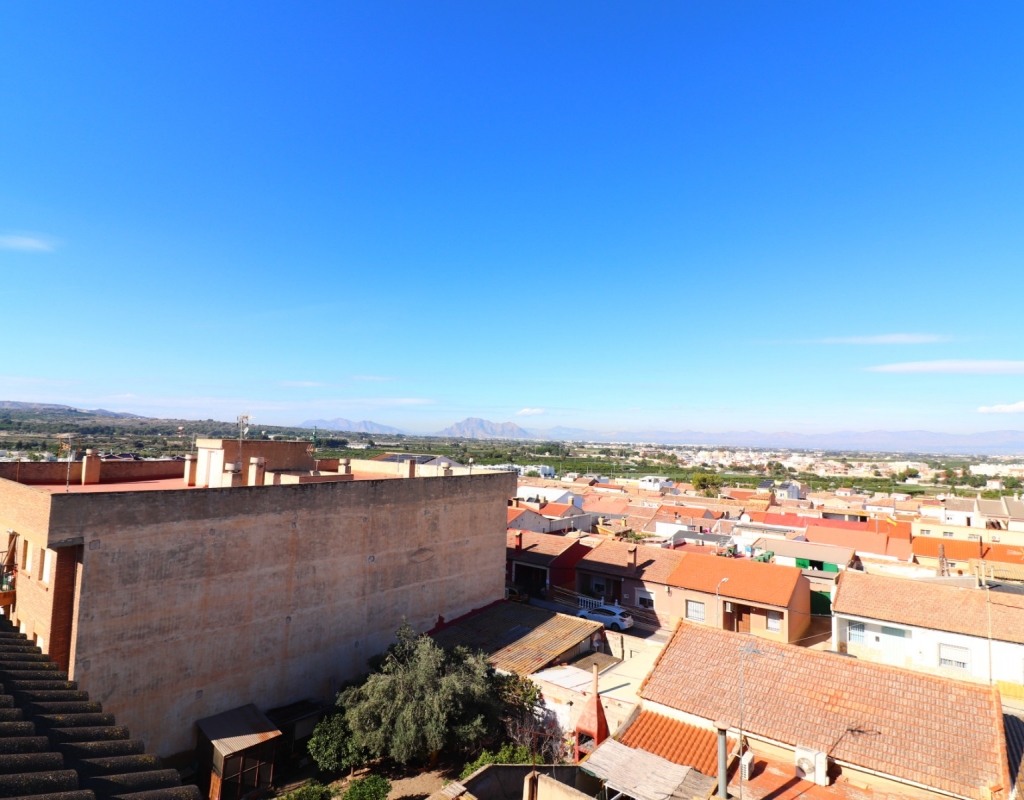 This Well Located, Two Bedroom, Penthouse Apartment in Benijofar, is located central to all amenities on offer, including café bars, fantastic array of restaurants, a new commercial centre, shops, school, medical centre, sports ground and pool, plus a lovely park with lake. Quesada is just a 5 minute drive away, La Marquesa golf course 5–10 minutes, and the beach can be reached in approximately 12 minutes. Situated on the second floor (top floor) of a small block with no lift, the property comprises a roomy, well fitted kitchen, a bright living area, and two double bedrooms, with the master bedroom offering built-in wardrobes. There is also a family bathroom. A standout feature is the private solarium, offering wonderful views across to the mountains — the perfect spot to enjoy the sunset. An ideal lock-up-and-leave holiday home in a fantastic, central location on the Costa Blanca South.