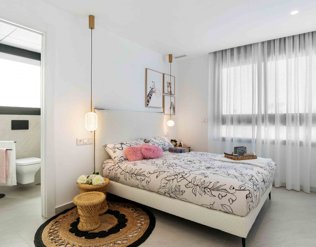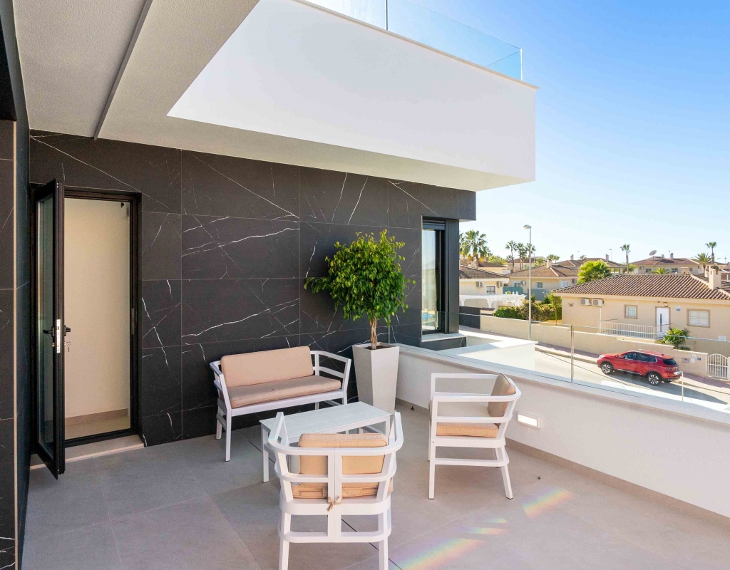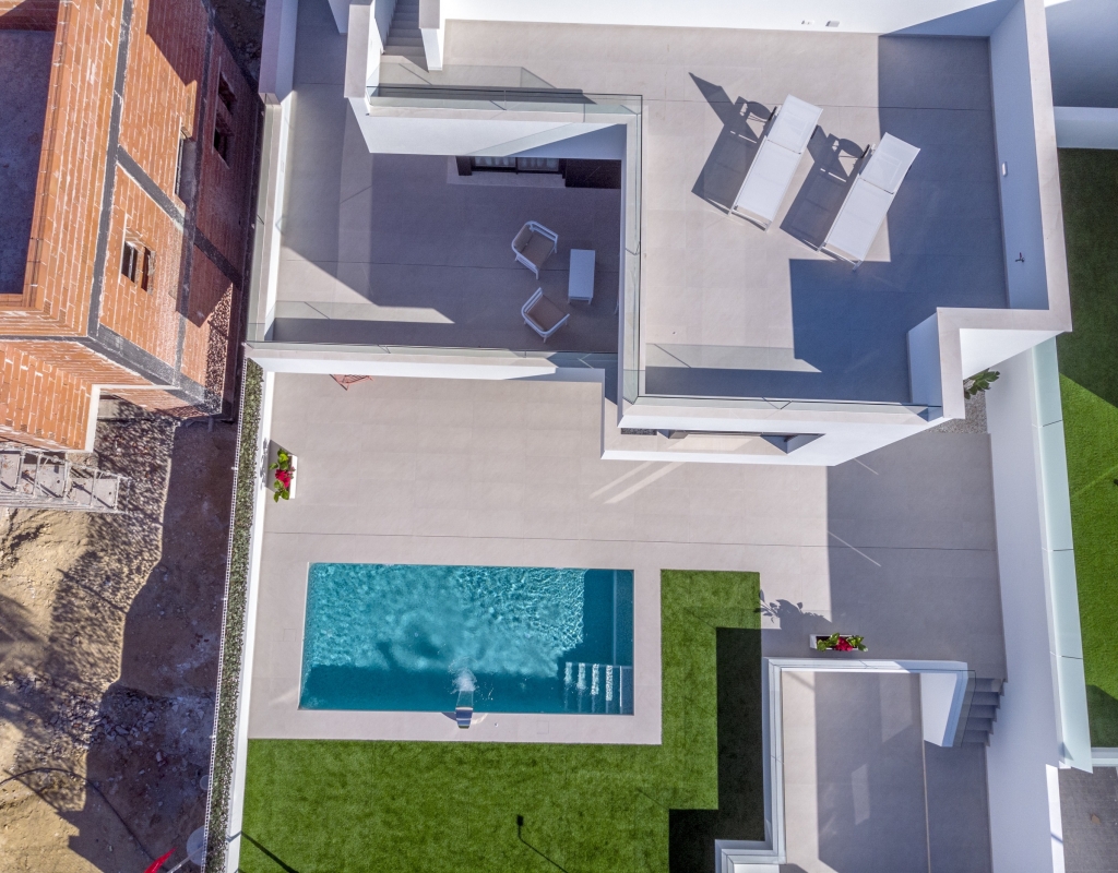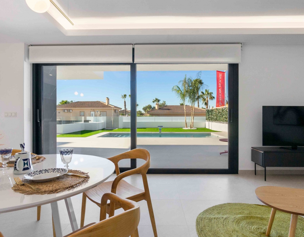 The interior of these detached villas in Rojales is designed to offer maximum comfort and functionality. With three bedrooms and three bathrooms, each home is equipped to meet the needs of any family. The kitchen is fully furnished and equipped with modern appliances, facilitating daily life. Ceramic flooring adds a touch of elegance and is easy to maintain. The properties feature air conditioning and underfloor heating, ensuring a pleasant temperature year-round. Built-in wardrobes offer efficient storage, while electric shutters and a video intercom add an extra level of comfort and security. Additionally, each property is prepared for the installation of an electric car charger, highlighting the commitment to sustainability.