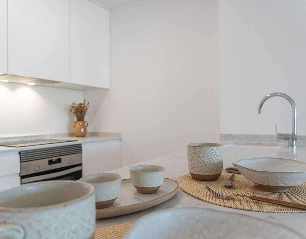The interior of the homes is designed to offer maximum comfort and functionality. The apartments, ground-floor units, and penthouses are equipped with ceramic and porcelain floors, providing durability and an elegant finish. The pre-installation of air conditioning ensures a pleasant environment throughout the year. Included appliances and built-in wardrobes make daily life easier, while the video intercom adds an extra level of security and convenience. With options of 2, 3, and 4 bedrooms, and 2 bathrooms, each home adapts to different family needs.