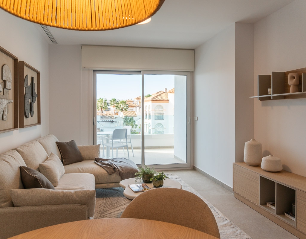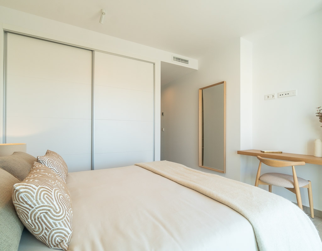 The exteriors of this residential in Playa Flamenca are designed to complement the Mediterranean lifestyle. The homes feature terraces that allow enjoyment of the sunny weather and views of the natural surroundings. Solariums, available in some types, offer additional space for relaxation and outdoor entertainment. The presence of communal gardens adds a touch of greenery and freshness, creating a tranquil and welcoming environment for all residents.